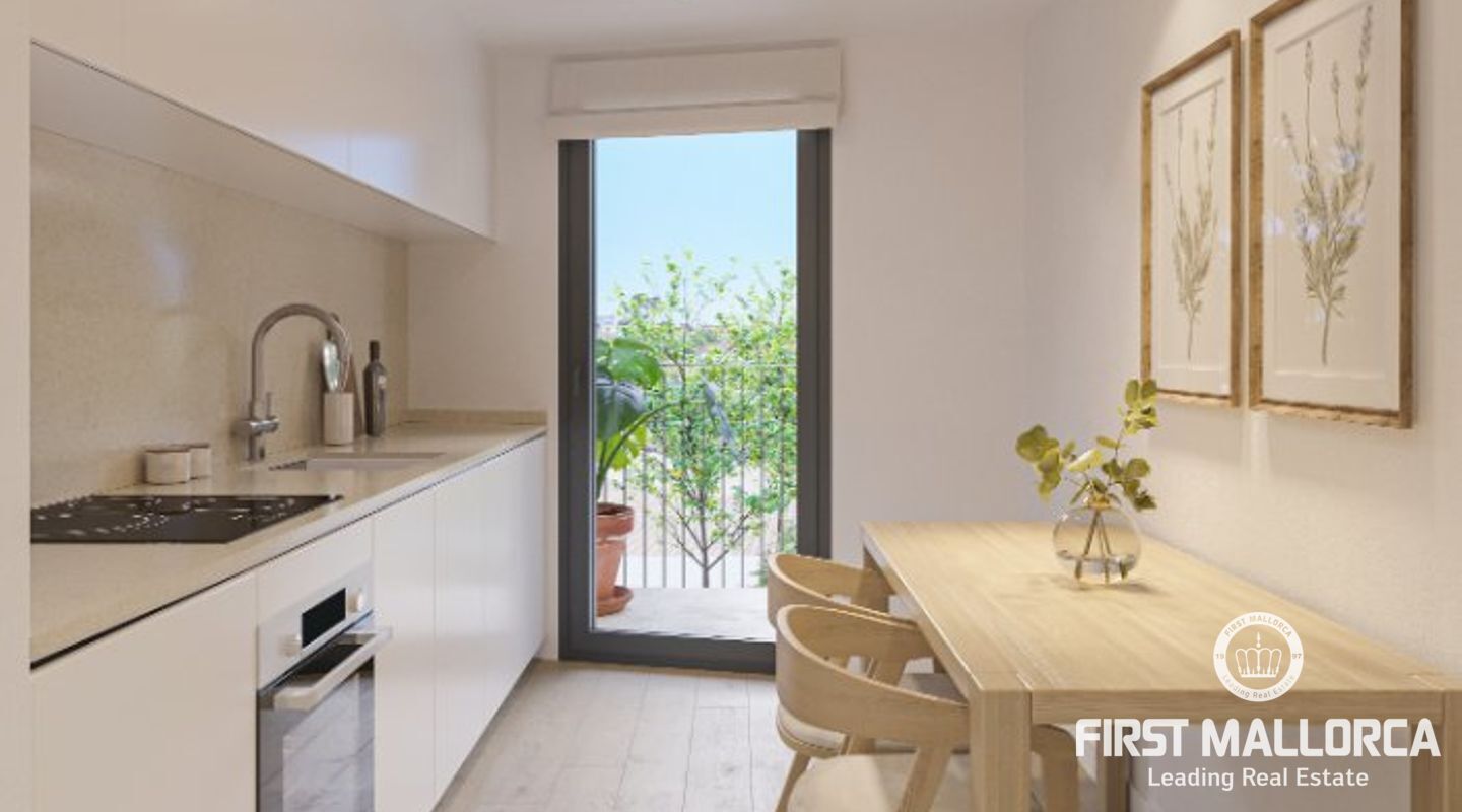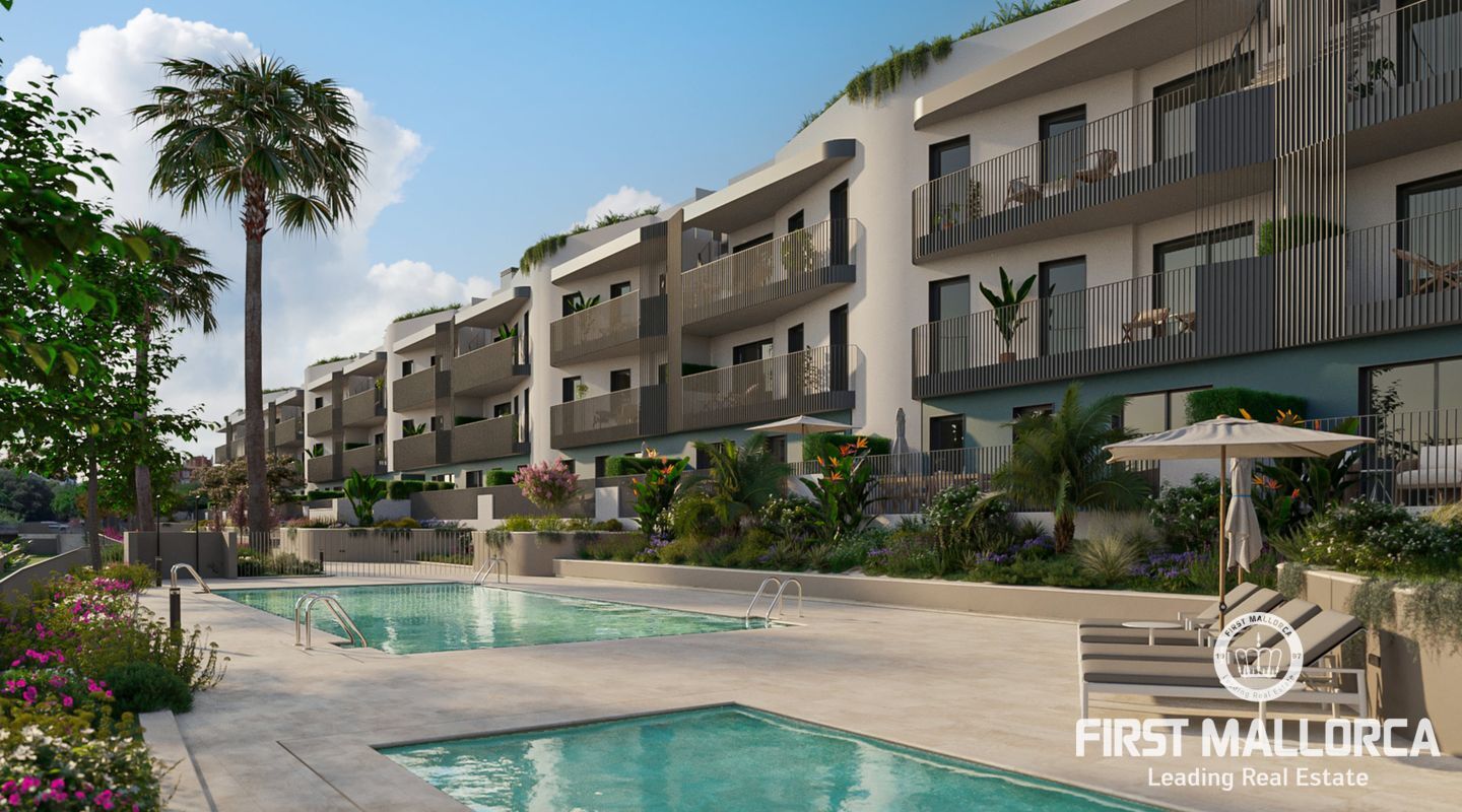 Este nuevo complejo en palabras de sus arquitecto, se configura como una ola marcada por el ritmo de las viviendas, disfrutando todas ellas de orientación exterior, abundante luz y ventilación natural. Hacia el interior, un atrio descubierto y ajardinado da acceso a las viviendas y potencia el encuentro social. Las amplias terrazas difuminan el límite interior-exterior y subrayan la conexión entre las casas y la naturaleza”. Ubicación, comunicaciones y servicios: esas son las tres claves para que tu casa esté bien situada. Este nuevo complejo cumple con todas ellas. La piscina comunitaria quedará completamente integrada en las zonas exteriores ajardinadas configurando un espacio único y diferente que se convertirá en uno de los lugares más especiales del conjunto. Disfruta de un relajante baño o invita a tus seres queridos a refrescarse en las tardes de verano para compartir momentos inolvidables. No dude en ponerse en contacto con el equipo de First Mallorca para organizar una visita!