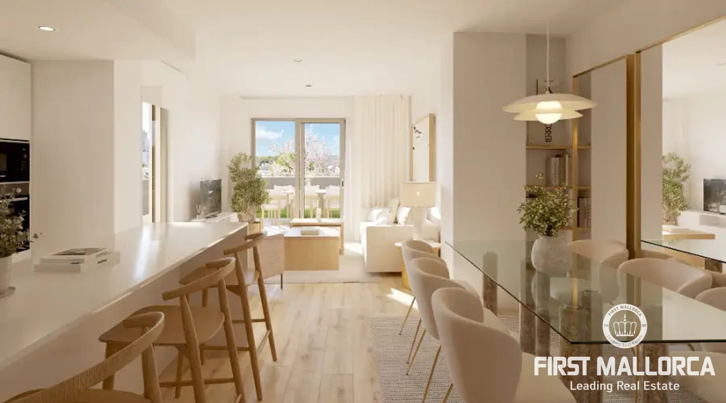 Este nuevo complejo se sitúa en Palmanova, un núcleo residencial de Calviá situado junto a la playa. Solo necesitarás unos minutos para poder disfrutar de un relajante baño en la costa o de un agradable paseo por la orilla mediterránea. Además, tu nueva casa se engloba en un barrio que también ofrece la comodidad de vivir a tan solo 15 minutos del centro de Palma y a 30 minutos del aeropuerto. Relájate dando largas caminatas por la playa, dándote un chapuzón en el mar o disfrutando de la variedad de servicios de todo tipo sin renunciar a unas comunicaciones estupendas. En las proximidades del complejo encontrarás todos los servicios que necesitas y, por eso, es la ubicación perfecta si buscas una vida tranquila sin renunciar a las comodidades de la ciudad. El proyecto lo firma uno de los estudios de arquitectura más prestigiosos de España y está galardonado con un amplísimo abanico de premios nacionales e internacionales. Las viviendas se abren al exterior a través de grandes ventanales, proporcionando gran luminosidad y un ambiente único. Además, para que puedas disfrutar del excelente clima de la isla, el salón de tu casa se funde con el exterior a través de una amplia terraza que sin duda será uno de los lugares favoritos de tu nueva vivienda. Cualquier momento del día, una fiesta de cumpleaños, una celebración de aniversario o una simple tarde de domingo pueden convertirse en el mejor plan disfrutando de él al aire libre. No dude en ponerse en contacto con el equipo de First Mallorca para organizar una visita!