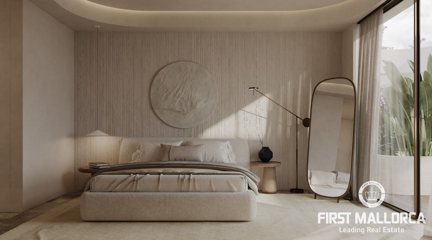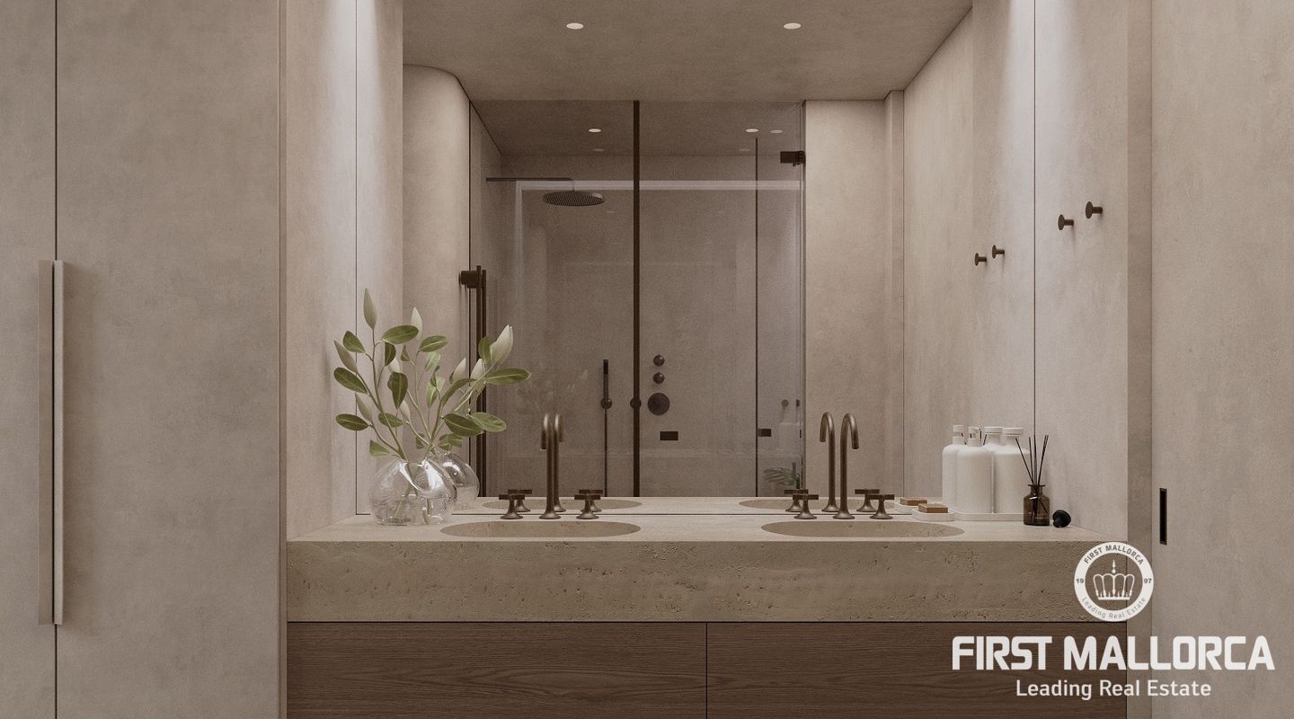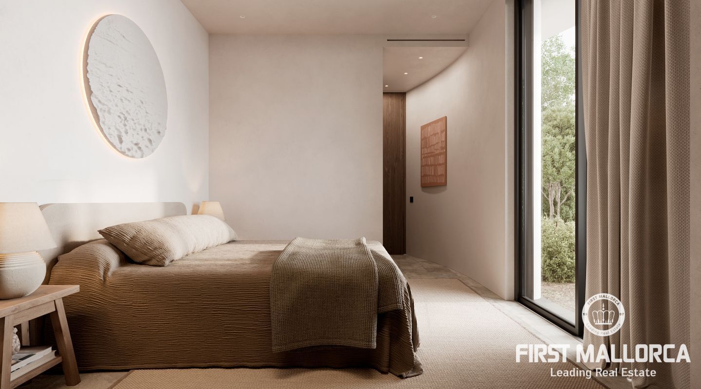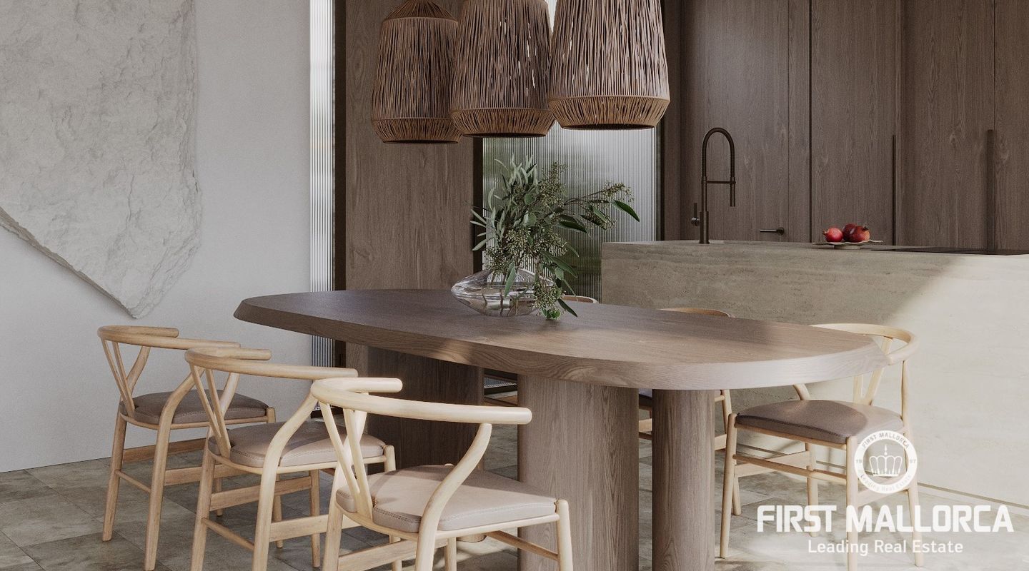 Grandes ventanales inundan los interiores de luz natural, complementando un diseño sofisticado que combina la calidez mediterránea con la elegancia moderna a través de materiales naturales como la piedra y la madera.