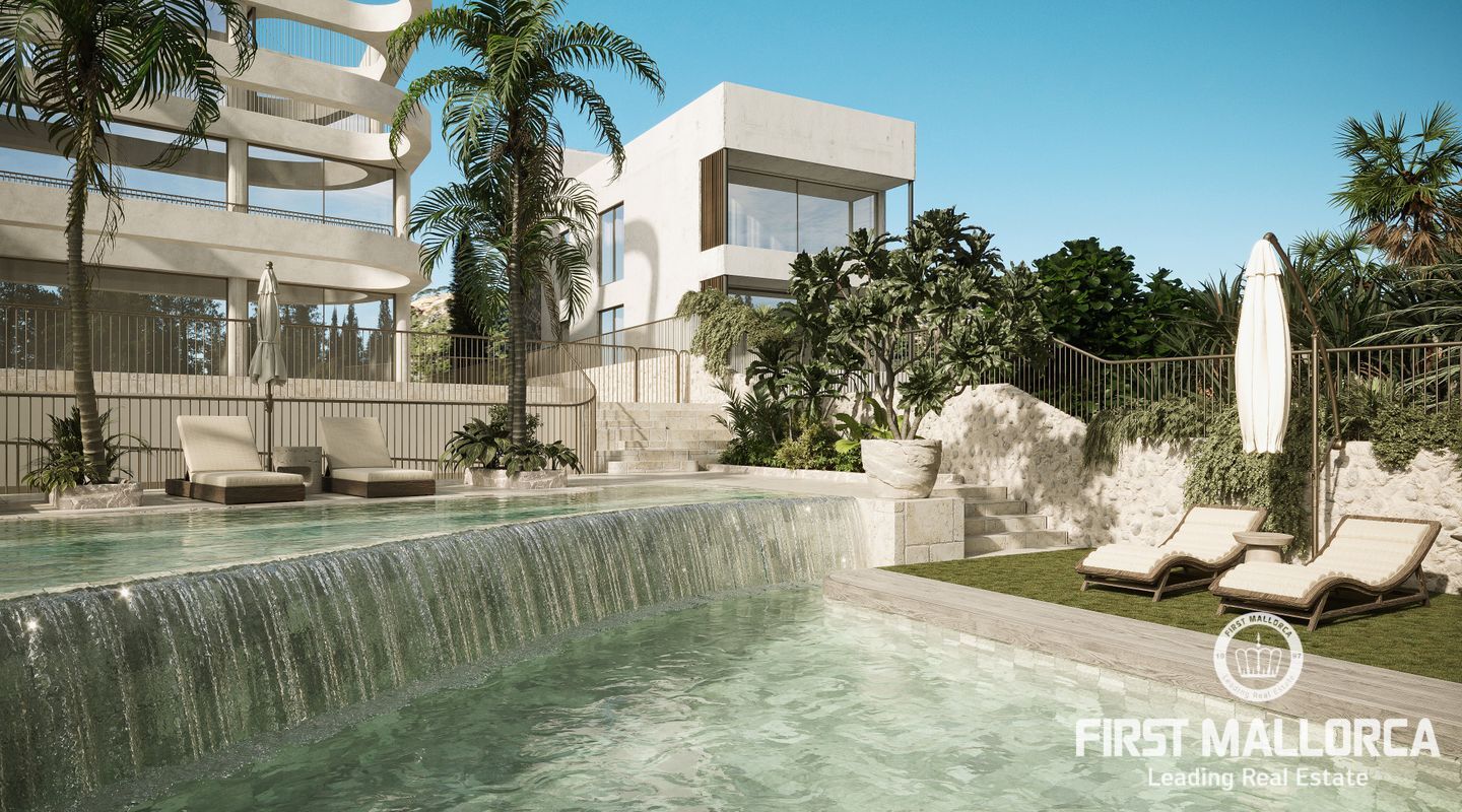 Tres impresionantes áticos ofrecen amplias terrazas en la azotea con vistas impresionantes al mar Mediterráneo, mientras que los dos apartamentos con jardín disponen de exuberantes jardines privados y una perfecta conexión entre el interior y el exterior.