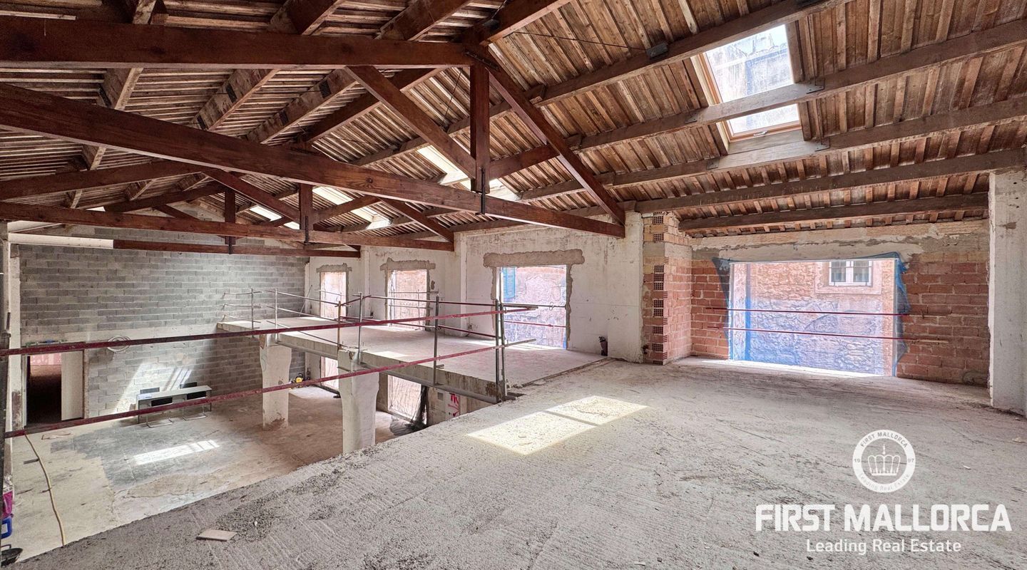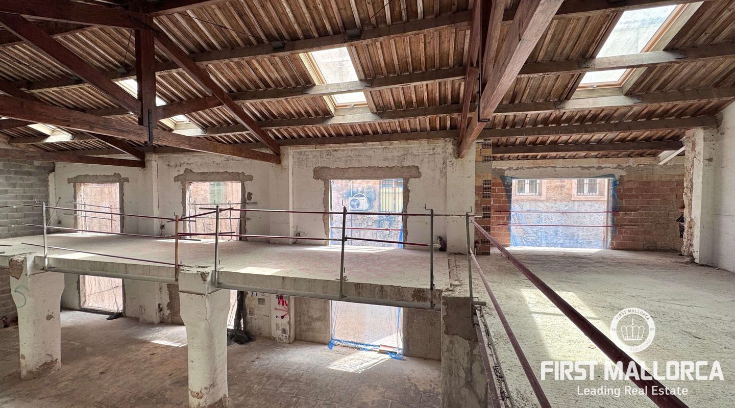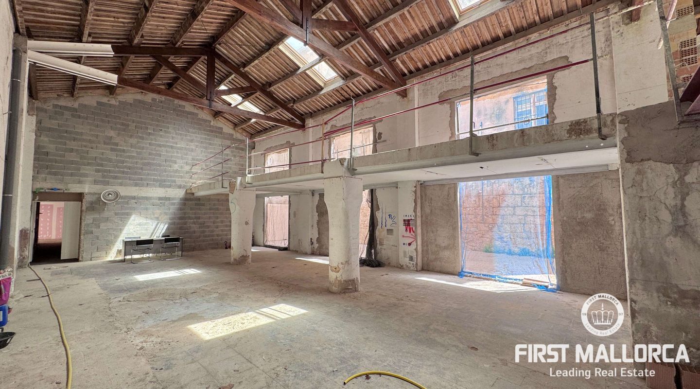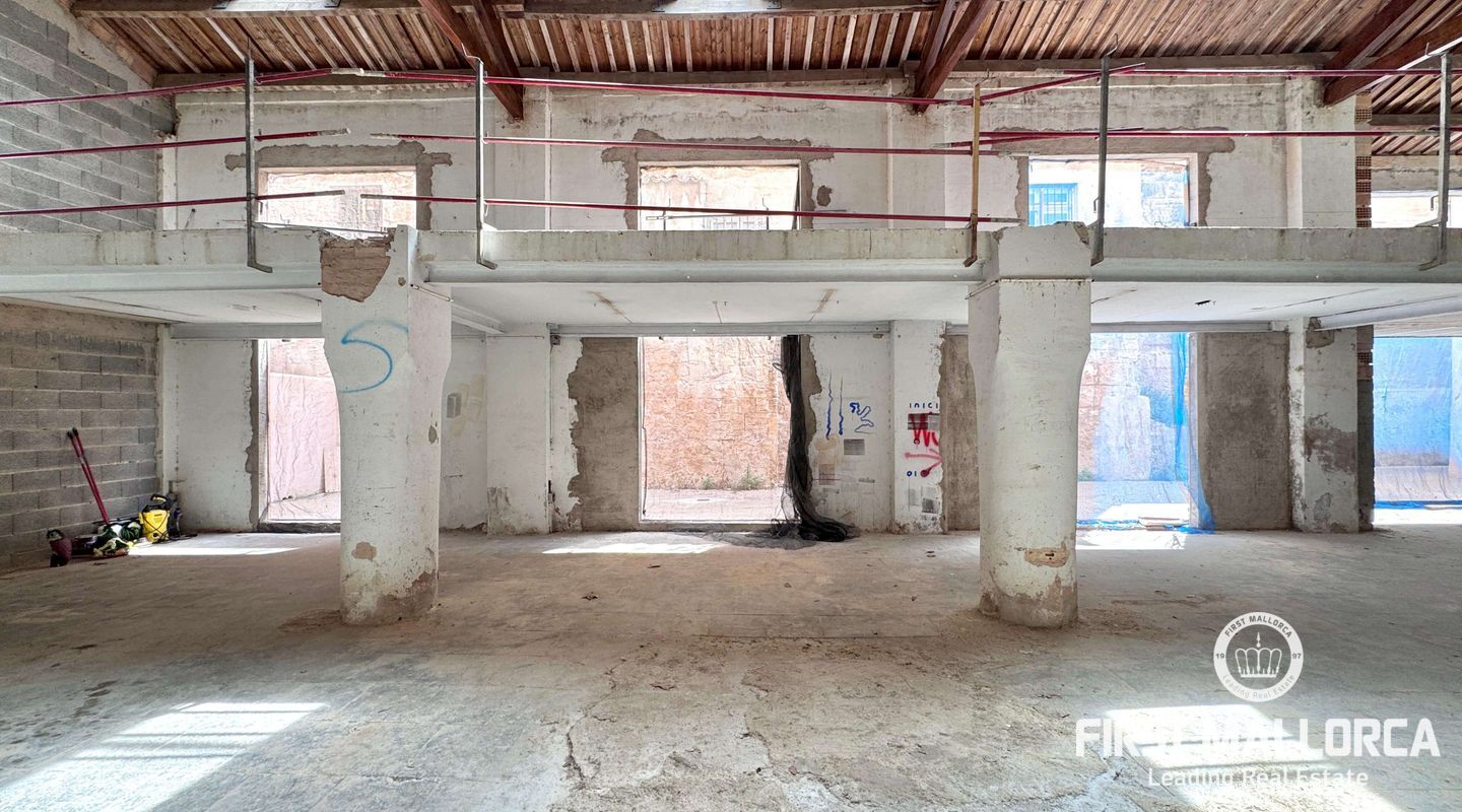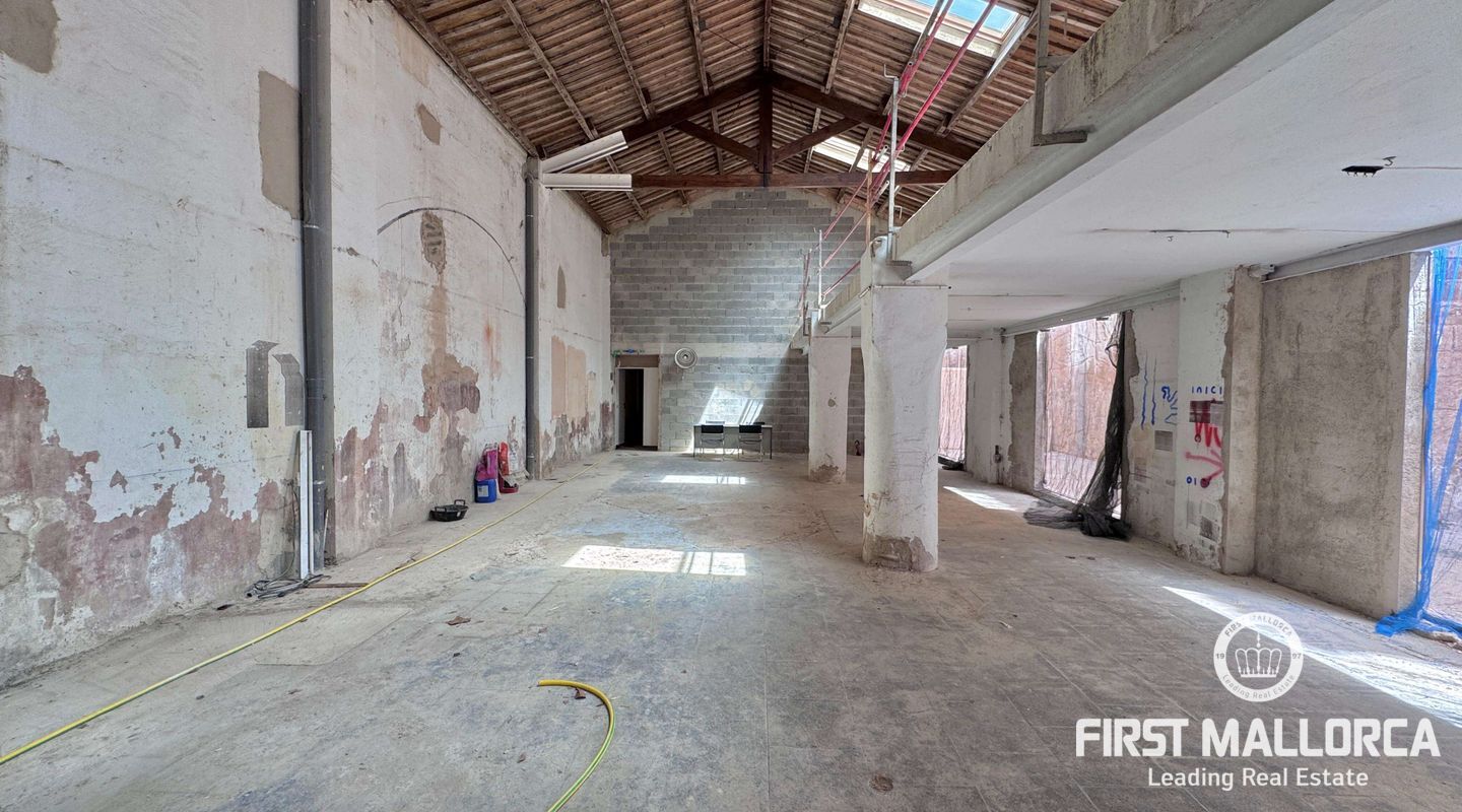 Ubicado a pocos pasos de la calle Olmos, una de las vías peatonales más transitadas de Palma, esta antigua imprenta ofrece 568 m² de superficie total (aprox. 468 m² interiores + 100 m² de patio privado). Su entrada discreta da paso a un espacio interior sorprendentemente amplio, con techos de 8 metros de altura, ventanales de gran tamaño y un volumen diáfano ideal para reconversión.