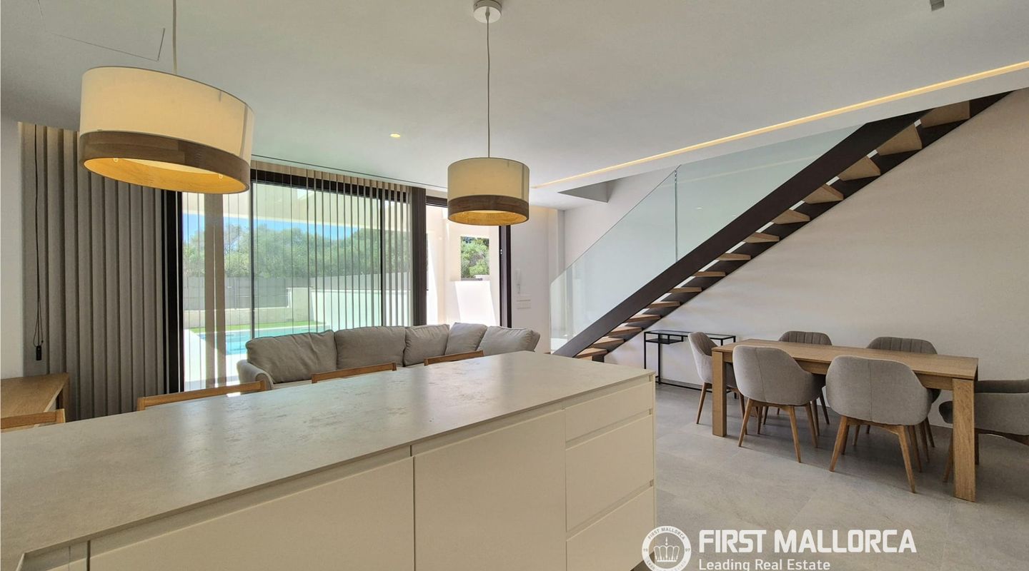 Características principales: Construida en 2025 Totalmente amueblada con mobiliario nuevo incluido Piscina privada de cloro Terraza en la azotea con vistas al mar, al paisaje y a la isla de Cabrera Armarios y escalera de madera de roble Aire acondicionado centralizado Daikin Sistema aerotérmico de alta eficiencia energética Electrodomésticos Bosch integrados en la cocina Lavadero con amplio espacio de almacenamiento Ducha exterior y patio acondicionado Iluminación LED en toda la vivienda Ubicación tranquila y apacible Junto a la plaza del pueblo y al parque infantil Muy cerca de la playa Lista para entrar a vivir