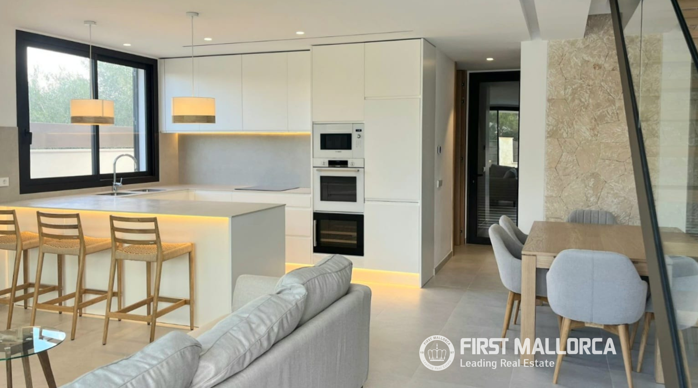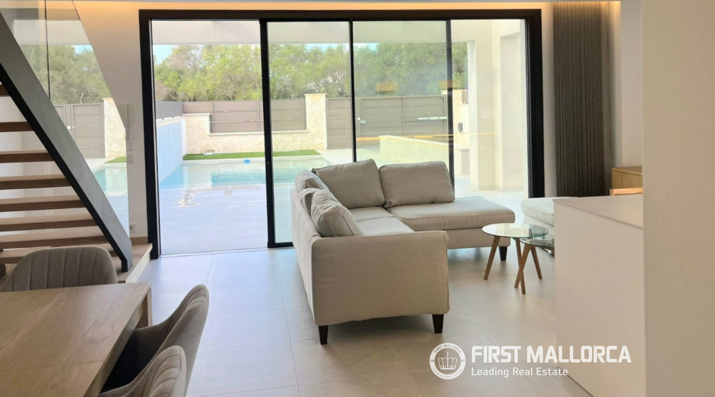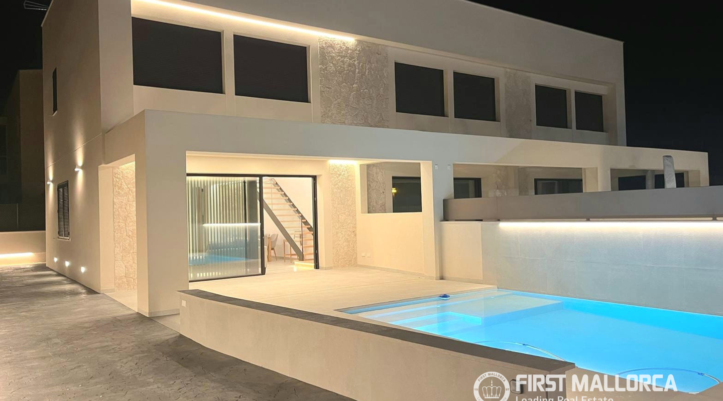 Características principales: Construida en 2025 Totalmente amueblada con muebles nuevos Piscina privada clorada Armarios y escalera de roble Aire acondicionado central Daikin Sistema aerotérmico de alta eficiencia Electrodomésticos Bosch integrados en la cocina Lavadero con amplio espacio de almacenamiento Ducha exterior y patio acondicionado Iluminación LED en toda la casa Ubicación tranquila y apacible Cerca de la plaza del pueblo y del parque infantil Muy cerca de la playa Lista para entrar a vivir Elegante vivienda llave en mano en uno de los pueblos costeros con encanto de Mallorca: ideal para residencia permanente, vacaciones o inversión.