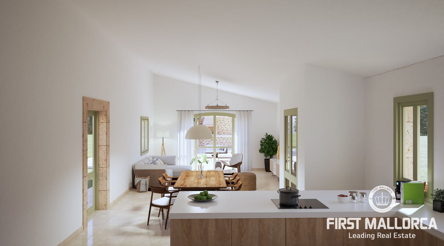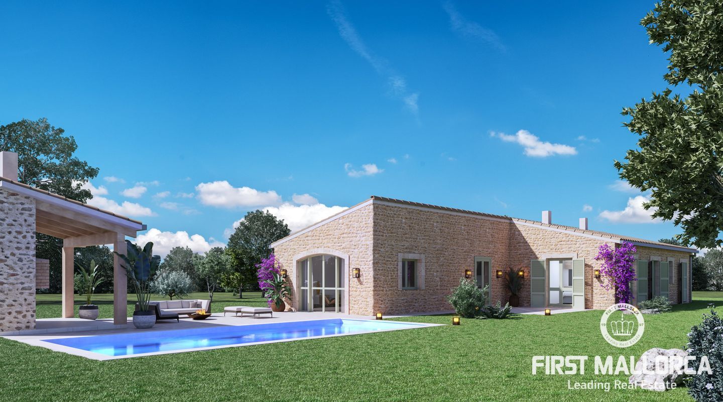 La finca terminada se caracterizará por su cómoda planta única y accesibilidad. En el proyecto se planean cuatro dormitorios con baños en suite, una sala de estar y comedor abiertos, así como varias terrazas grandes alrededor del área de la piscina. La propiedad está conectada a la red eléctrica y en el proyecto está prevista una gran cisterna para las necesidades de agua.