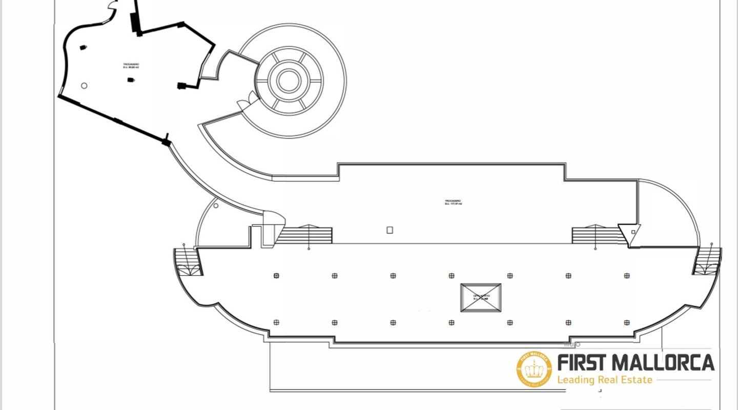 Amplia Superficie La propiedad cuenta con aproximadamente 720 m² escriturados, que incluyen un local cerrado de unos 90 m², amplias terrazas frontales y zonas de acceso. Adicionalmente, dispone de una terraza trasera privada de 135 m² de uso exclusivo (no incluida en la superficie escriturada), lo que da una superficie total utilizable de 855 m².