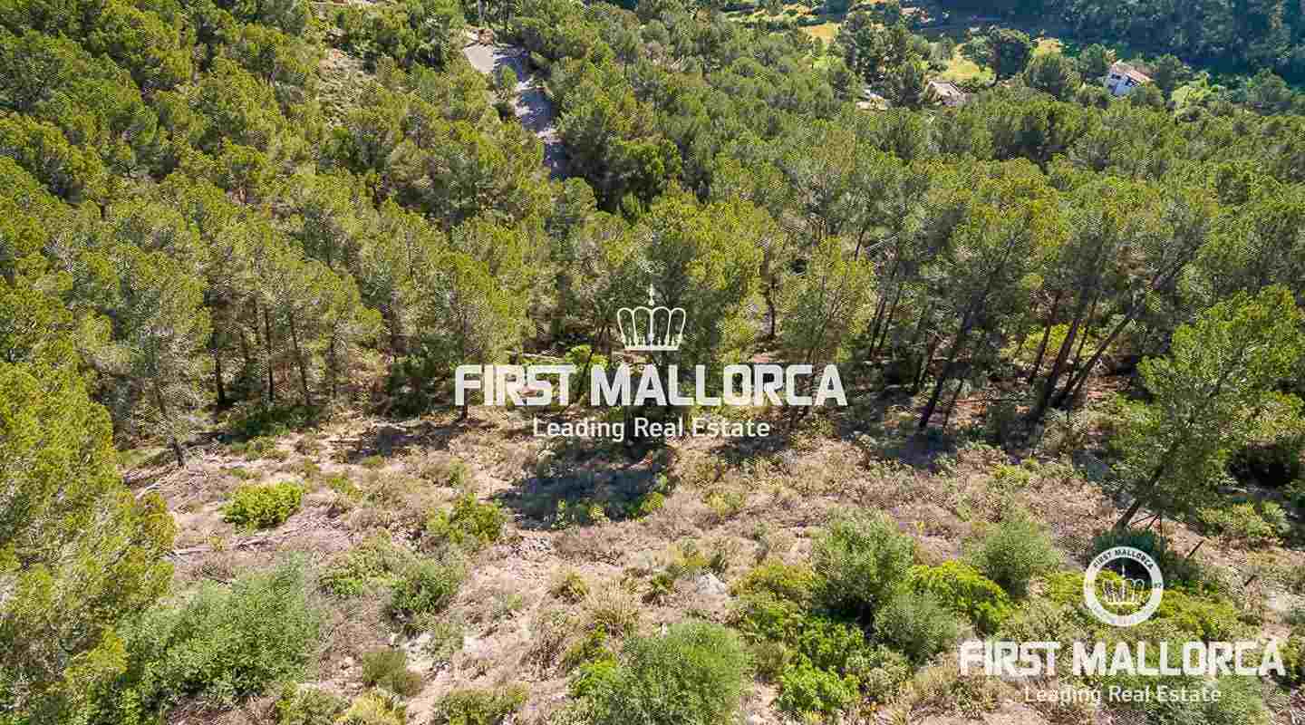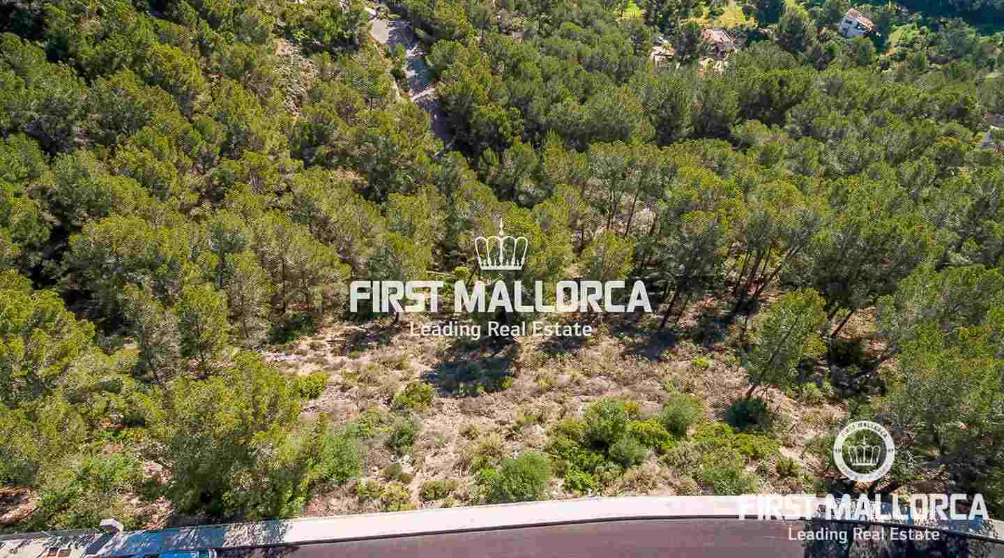 Este soleado terreno de 1.416 m² en Puerto de Andratx disfruta de hermosas vistas panorámicas sobre el paisaje hasta el mar y la Serra de Tramuntana.