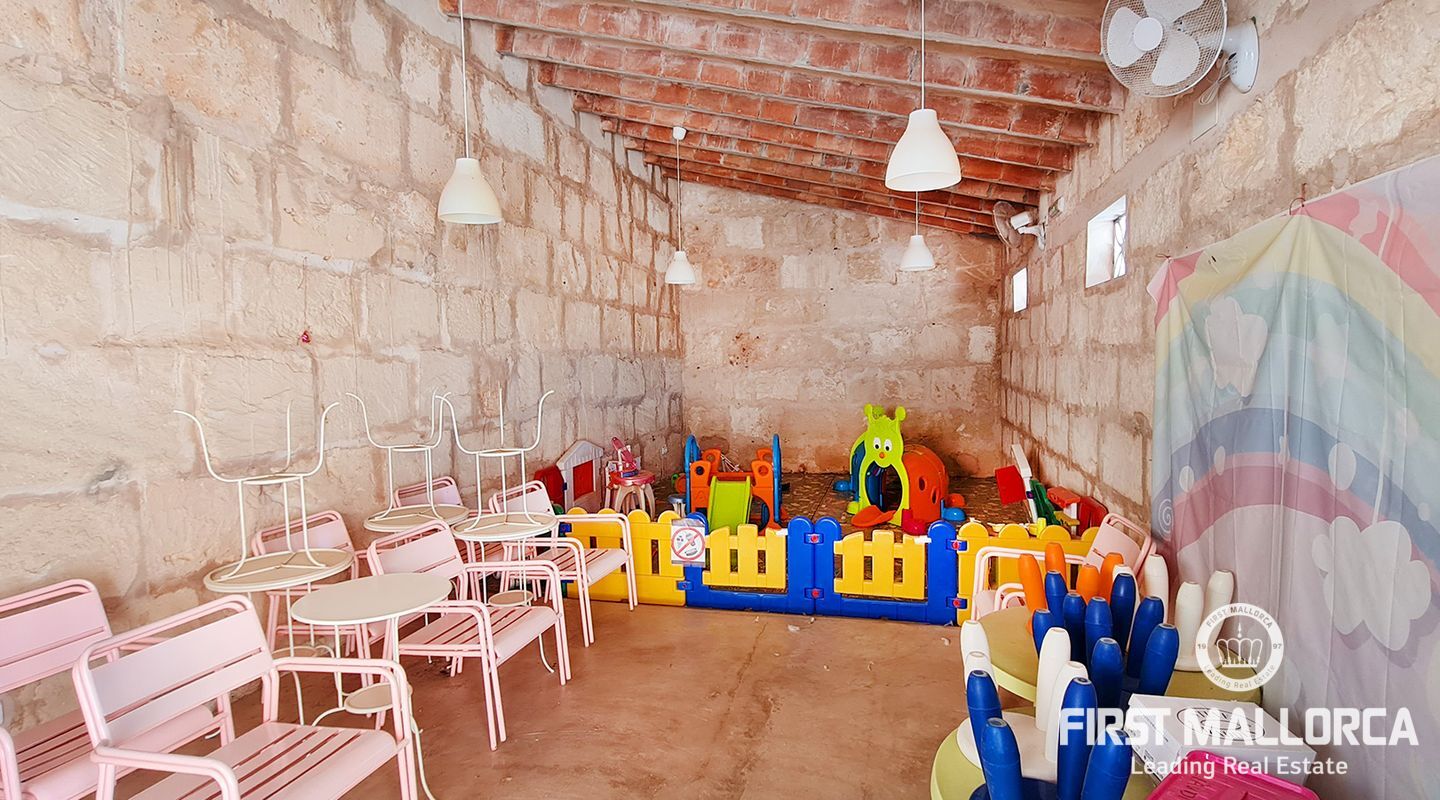 El terreno soleado se encuentra en el corazón de S'Alqueria Blanca, muy cerca de la iglesia histórica. El terreno tiene actualmente varias construcciones, que se usaron por última vez como un bar y una heladería. Además del uso como bar/cafetería, es posible construir una casa unifamiliar grande con jardín en la propiedad. Los pisos superiores ofrecen vistas al mar. El inmueble está ubicado en una zona céntrica. Tanto los puntos de interés dentro de S'Alqueria Blanca como la ciudad vecina de Santanyi están a solo unos minutos.