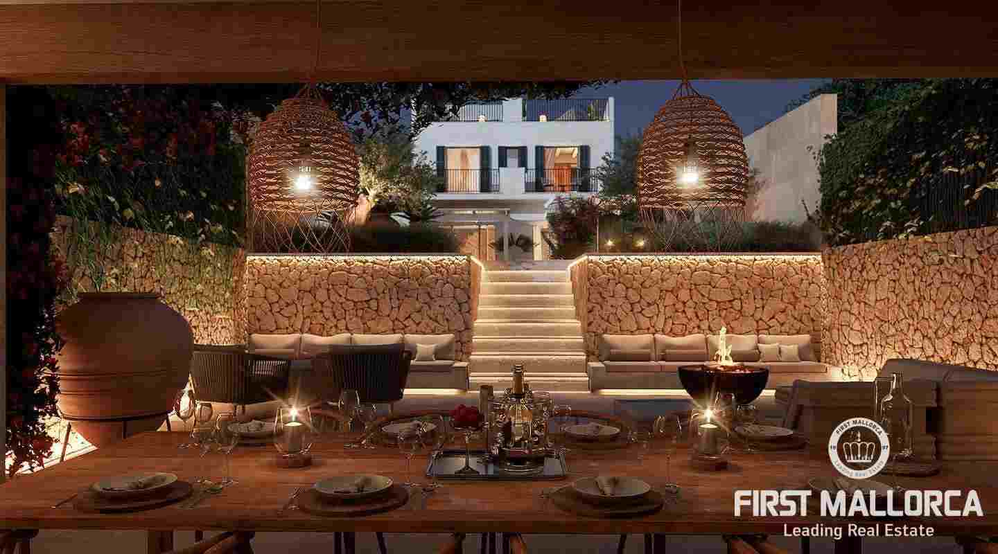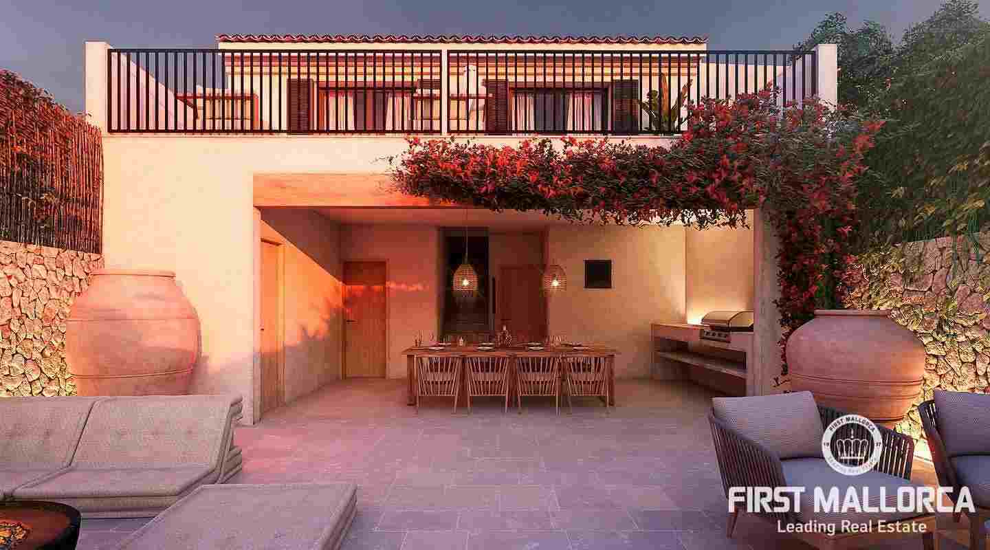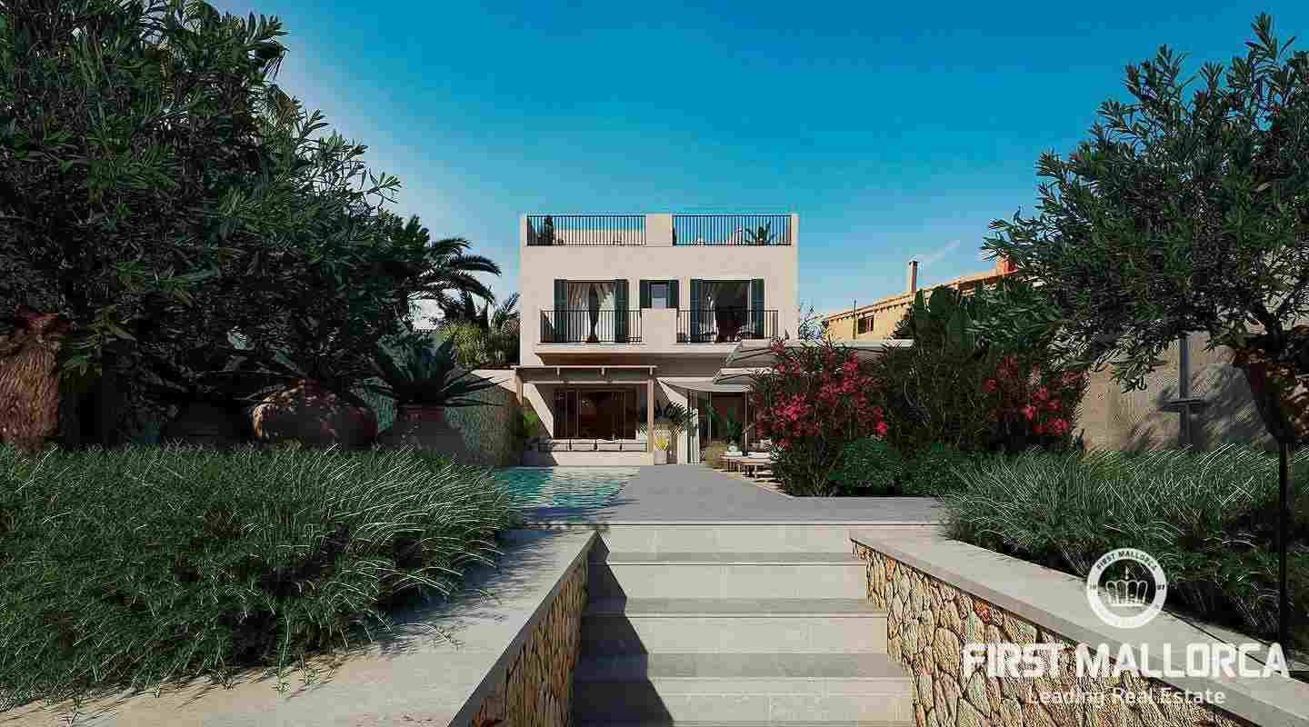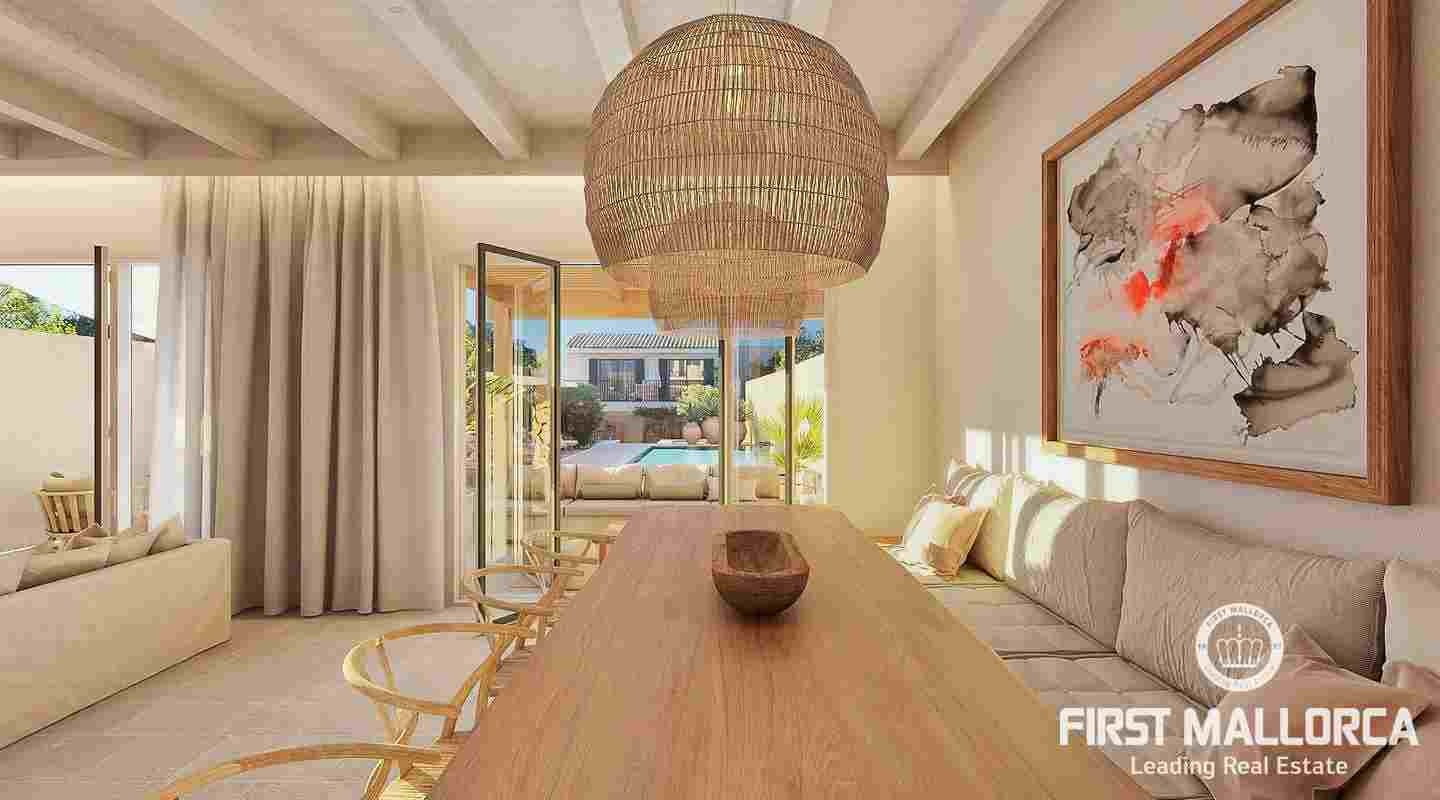 Extraordinaria propiedad, sin igual, en Ses Salines. Esta preciosa y muy amplia casa de pueblo te ofrece dos casas, conectadas con un hermoso jardín, terraza y zona de piscina. La casa principal con 215m2 ofrece 3 dormitorios con baño en suite, así como una sala de estar y comedor abierto y luminoso. Al otro lado del amplio y luminoso patio con piscina, se encuentra la casa de invitados con 2 dormitorios, baños en suite y terrazas. Una cocina exterior con salón, además de espacio suficiente para un gimnasio acaba de redondear la amplitud de esta construcción. Las grandes ventanas y el diseño abierto crean una sensación de vida increíblemente luminosa. No pierdas esta oportunidad única y contáctanos. Finalización de este nuevo proyecto de construcción alrededor del verano de 2023.