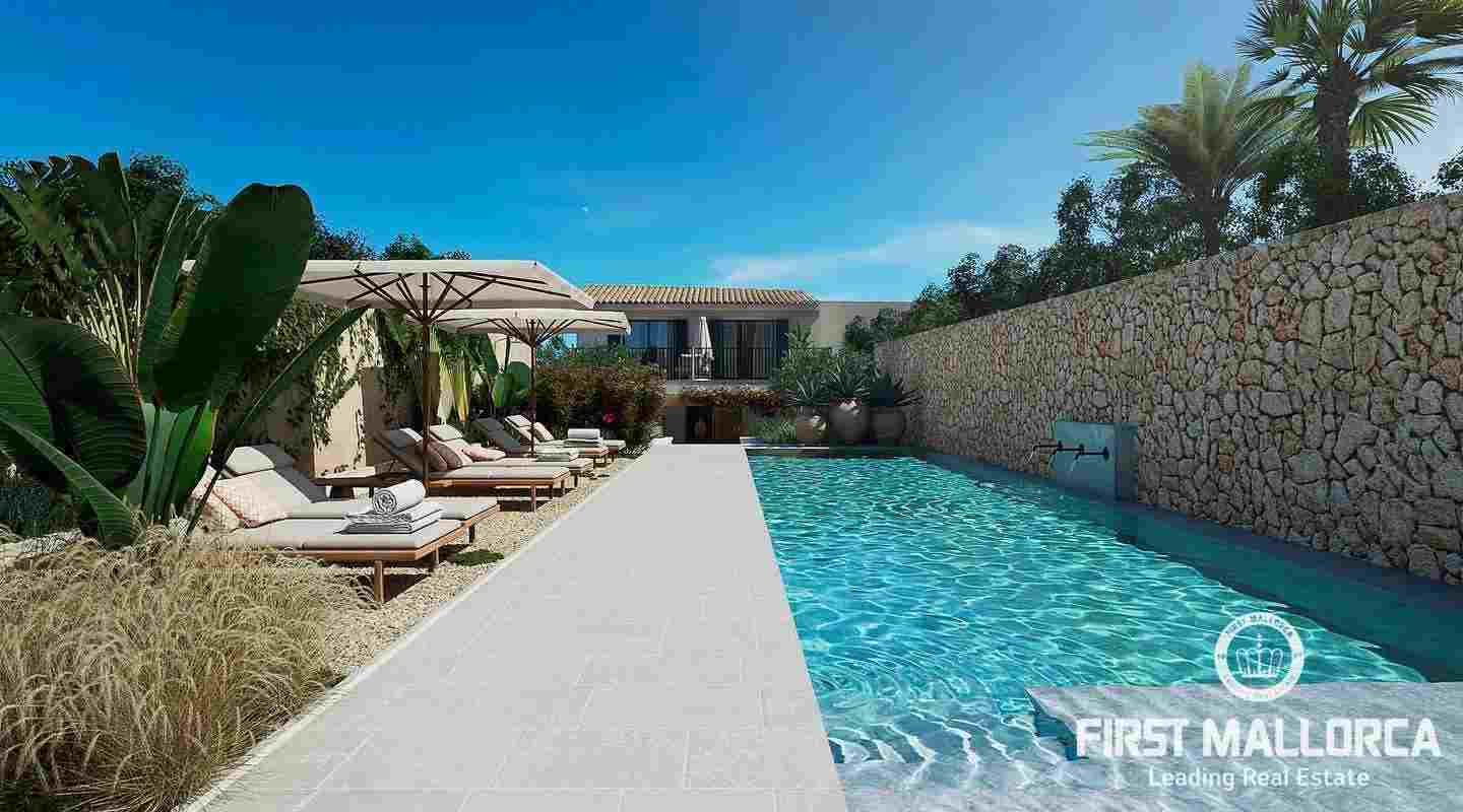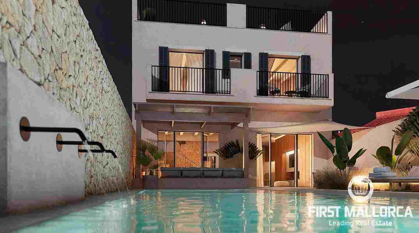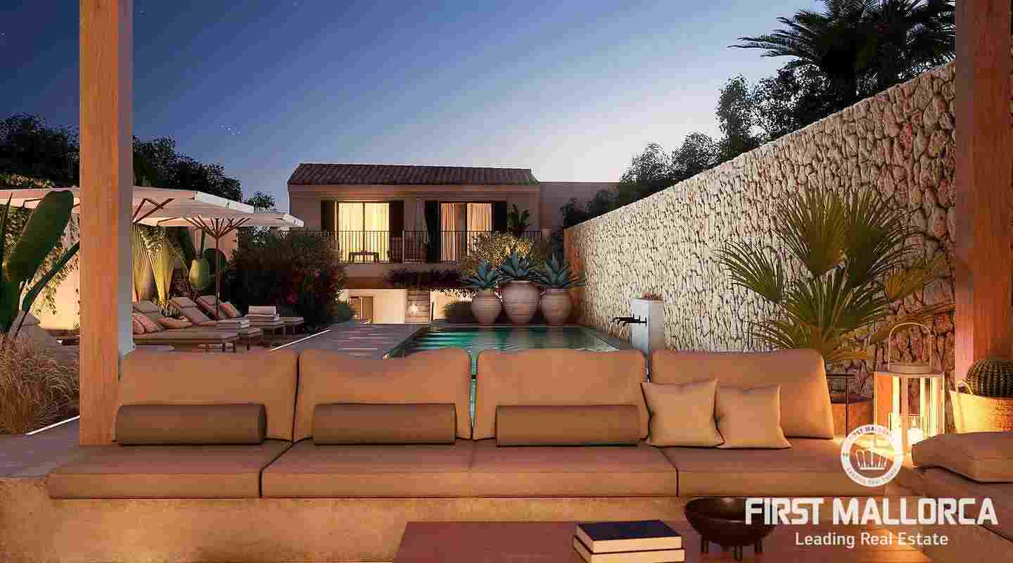 Extraordinaria propiedad, sin igual, en Ses Salines. Esta preciosa y muy amplia casa de pueblo te ofrece dos casas, conectadas con un hermoso jardín, terraza y zona de piscina. La casa principal con 215m2 ofrece 3 dormitorios con baño en suite, así como una sala de estar y comedor abierto y luminoso. Al otro lado del amplio y luminoso patio con piscina, se encuentra la casa de invitados con 2 dormitorios, baños en suite y terrazas. Una cocina exterior con salón, además de espacio suficiente para un gimnasio acaba de redondear la amplitud de esta construcción. Las grandes ventanas y el diseño abierto crean una sensación de vida increíblemente luminosa. No pierdas esta oportunidad única y contáctanos. Finalización de este nuevo proyecto de construcción alrededor del verano de 2023.
