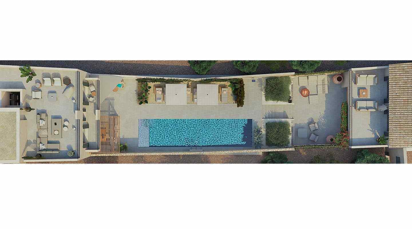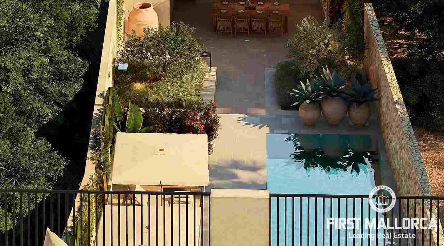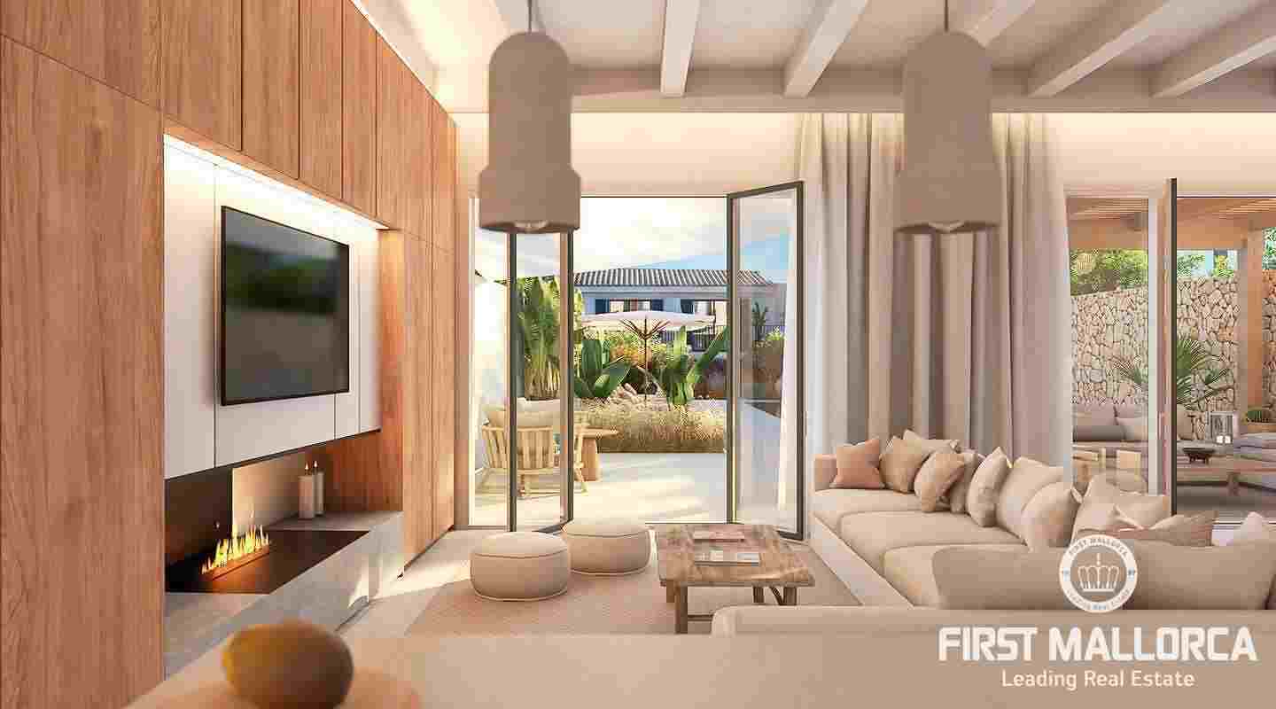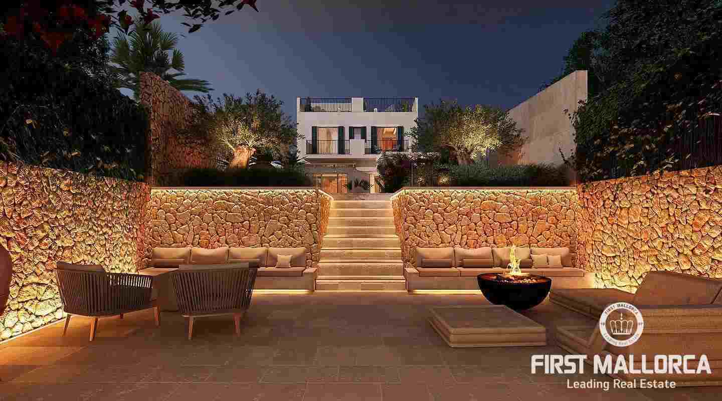 Extraordinaria propiedad, sin igual, en Ses Salines. Esta preciosa y muy amplia casa de pueblo te ofrece dos casas, conectadas con un hermoso jardín, terraza y zona de piscina. La casa principal con 215m2 ofrece 3 dormitorios con baño en suite, así como una sala de estar y comedor abierto y luminoso. Al otro lado del amplio y luminoso patio con piscina, se encuentra la casa de invitados con 2 dormitorios, baños en suite y terrazas. Una cocina exterior con salón, además de espacio suficiente para un gimnasio acaba de redondear la amplitud de esta construcción. Las grandes ventanas y el diseño abierto crean una sensación de vida increíblemente luminosa. No pierdas esta oportunidad única y contáctanos. Finalización de este nuevo proyecto de construcción alrededor del verano de 2023.