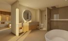 Los baños cuentan con sanitarios Laufen, cisternas empotradas Geberit, grifería Iconico, y una elegante bañera exenta Hydrobox Space.