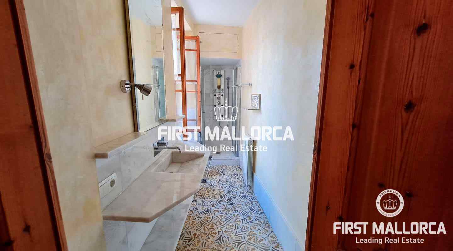 Se accede al primer piso por una espectacular escalera que conserva sus materiales originales. En la primera planta está el dormitorio principal con baño en suite y una gran sala de estar. La planta superior ofrece espacio para una completa zona de invitados con dos dormitorios, un baño y una sala de estar con acceso a la soleada terraza.
