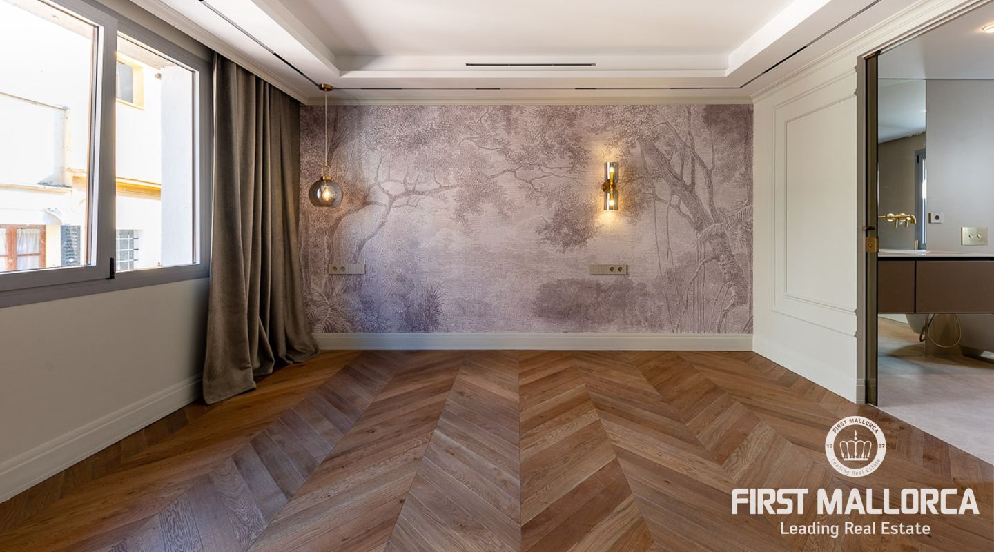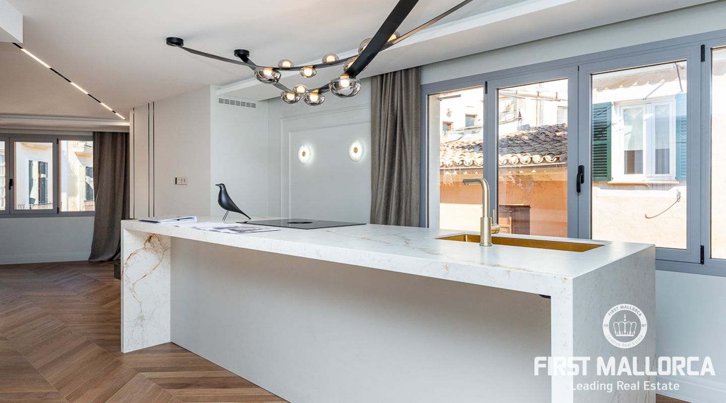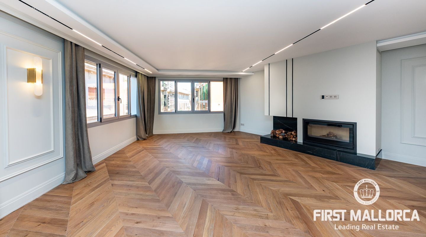 Lujoso ático en el casco antiguo. Este ático de 132m2 reformado en su totalidad con materiales de altísima calidad y con un diseño de interior por parte de profesionales cuenta con 3 habitaciones más un office, distribuidas todas hacia un lado de la propiedad diferenciando la zona de estar con la de descanso. Su amplio salón cuenta con una refinada cocina totalmente equipada con los mejores electrodomésticos, teniendo a escasos pasos la luminosa zona de estar con chimenea. La propiedad dispone de mucha luz en cualquier zona.