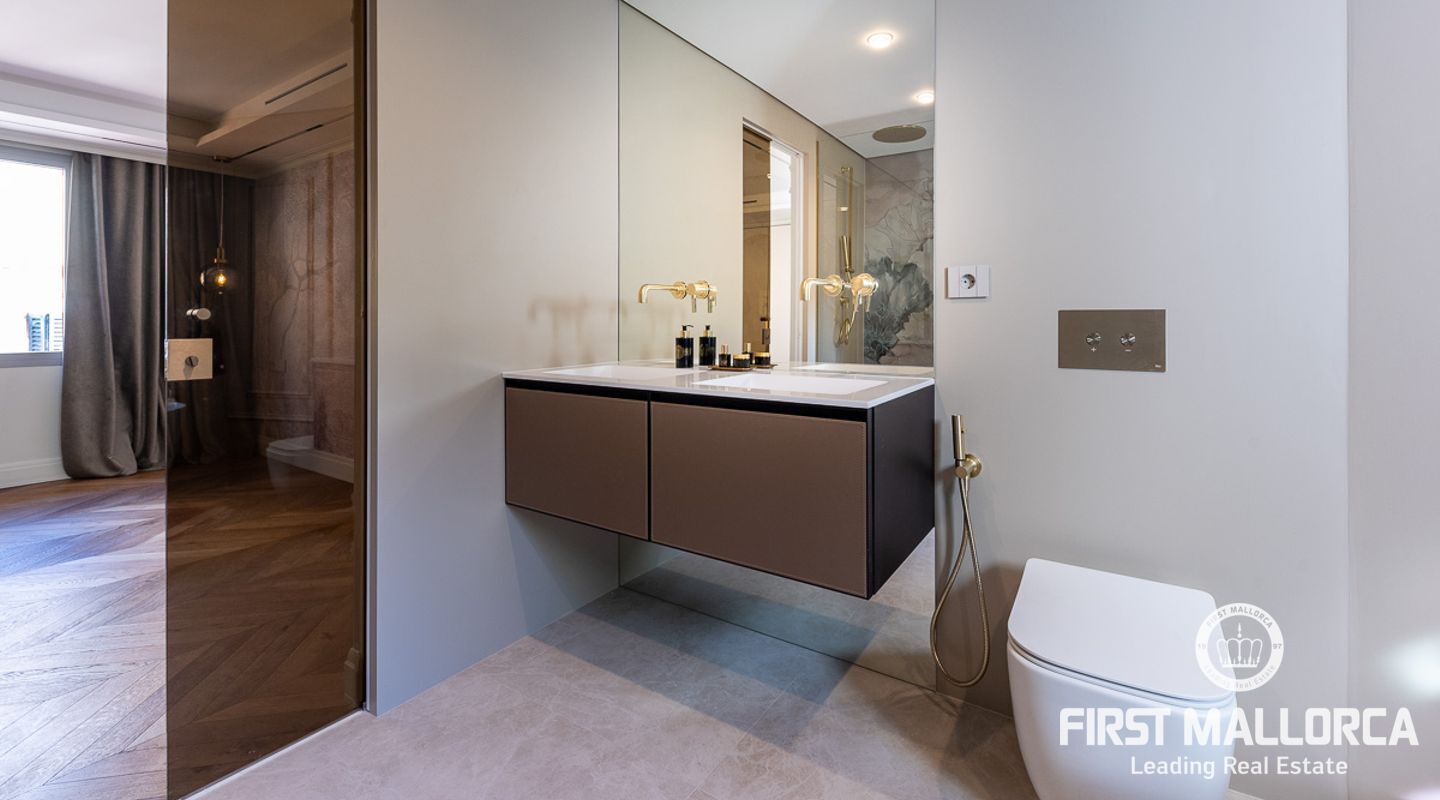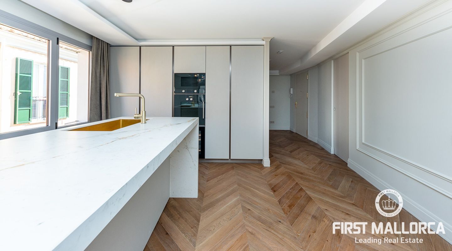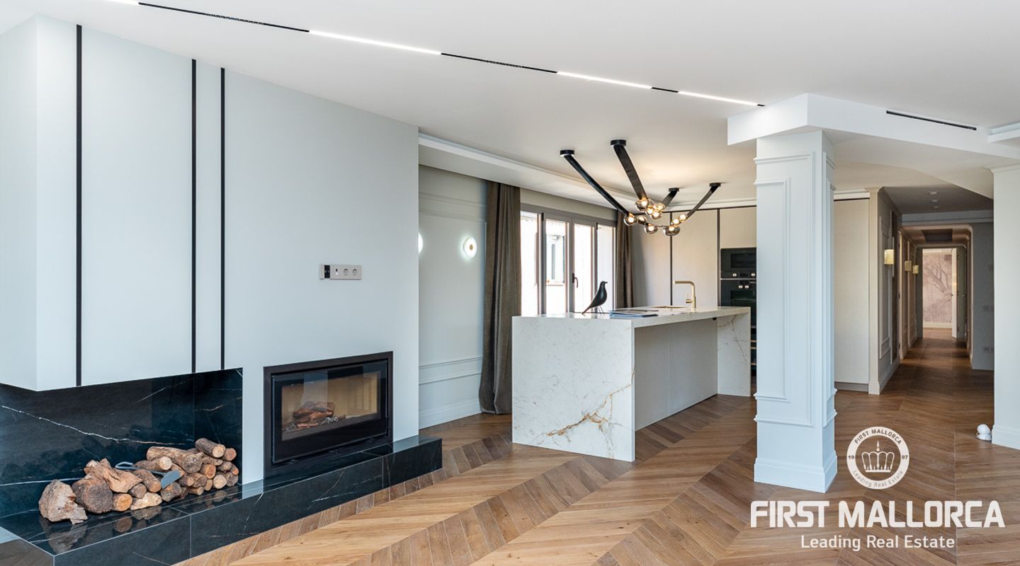 Lujoso ático en el casco antiguo. Este ático de 132m2 reformado en su totalidad con materiales de altísima calidad y con un diseño de interior por parte de profesionales cuenta con 3 habitaciones más un office, distribuidas todas hacia un lado de la propiedad diferenciando la zona de estar con la de descanso. Su amplio salón cuenta con una refinada cocina totalmente equipada con los mejores electrodomésticos, teniendo a escasos pasos la luminosa zona de estar con chimenea. La propiedad dispone de mucha luz en cualquier zona.