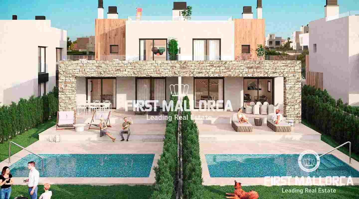 En la planta baja hay un salón-comedor abierto con cocina. Las ventanas del piso al techo permiten el acceso directo al jardín, que es el lugar perfecto para relajarse y refrescarse gracias a la piscina. En esta planta también hay un dormitorio, un baño y un lavadero. Arriba hay 2 dormitorios más, cada uno con baño en suite y acceso a una terraza privada donde se puede disfrutar del sol mallorquín. Cada propiedad también tiene un garaje.