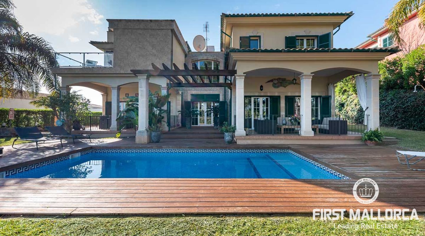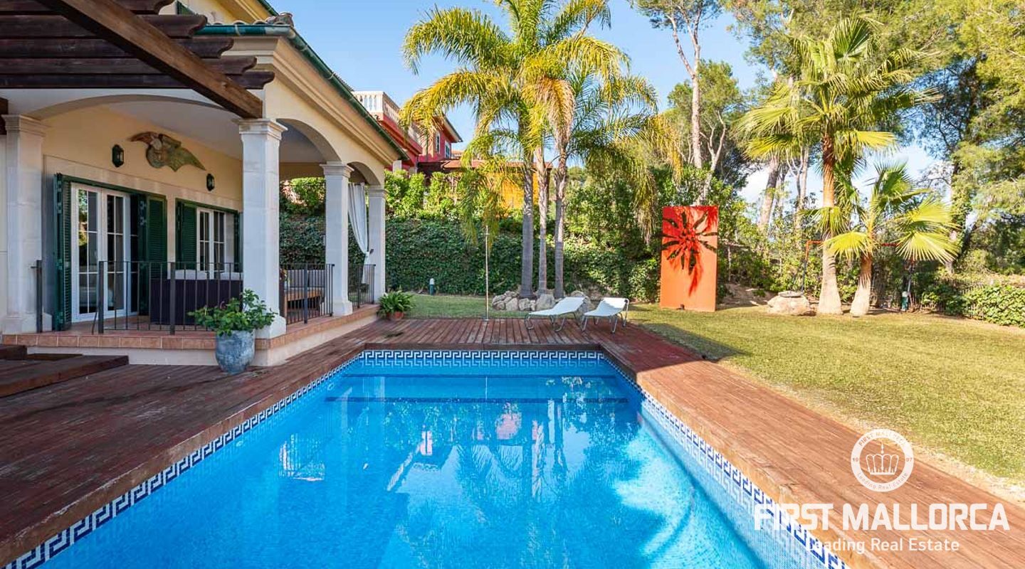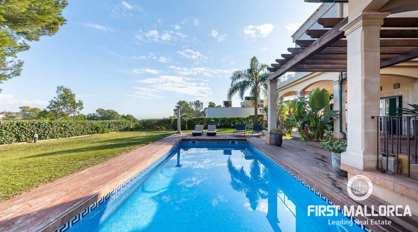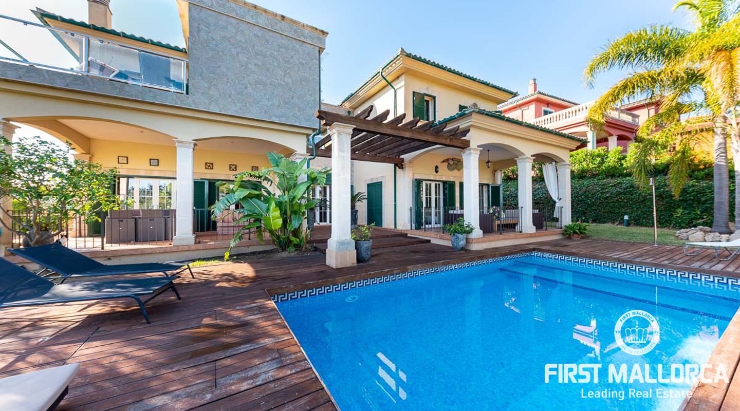 Al entrar en la villa verá un gran pasillo donde se encuentra la sala de estar y una cocina independiente totalmente amueblada y un aseo de invitados. Todas las habitaciones de la primera planta tienen acceso a la hermosa terraza cubierta con piscina, amplio jardín y zona de barbacoa. Al subir a la segunda planta encontrará los cuatro dormitorios, incluyendo el dormitorio principal con vestidor, baño en suite y bañera separada y una terraza.
