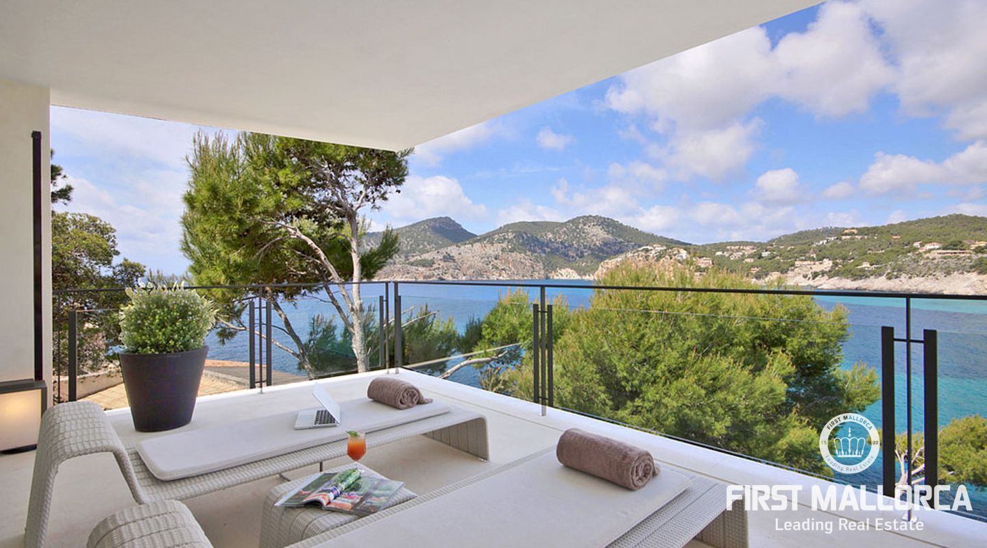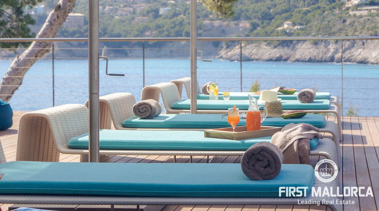 Con vistas a las aguas azul turquesa de Camp de Mar y el mar abierto más allá, enmarcada por los pinos mediterráneos, ofrece lo último en relajación.
