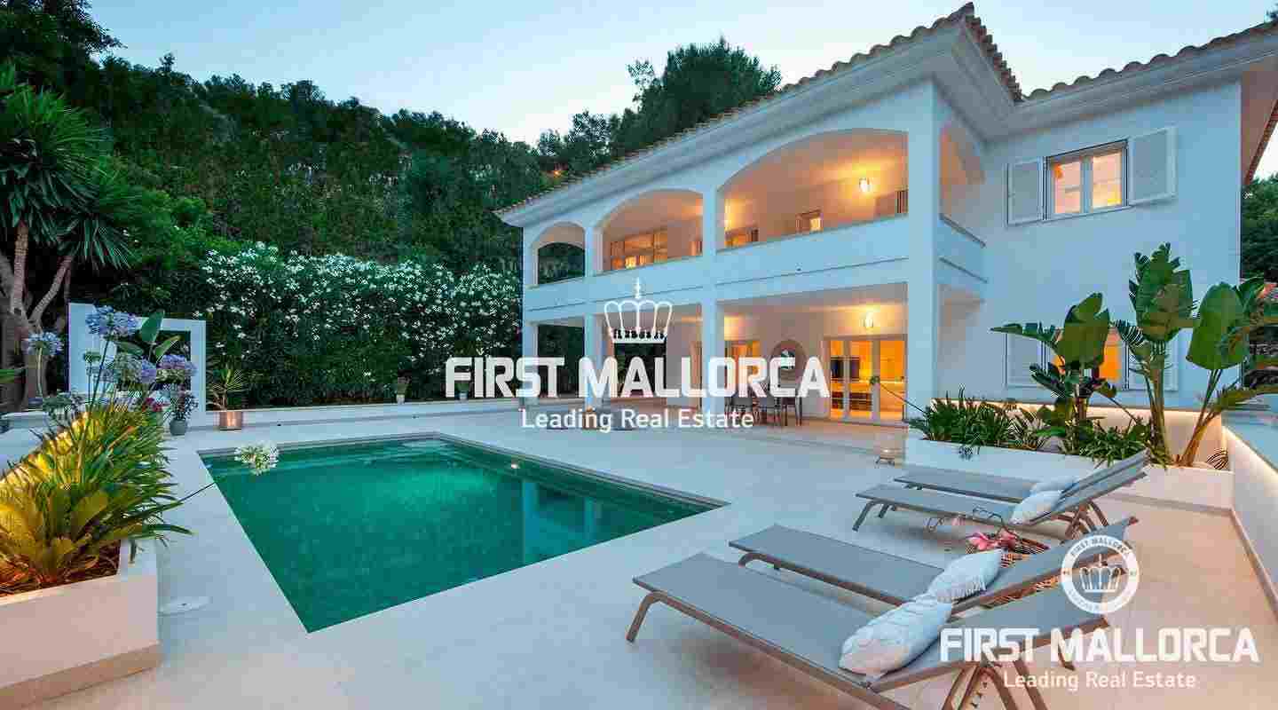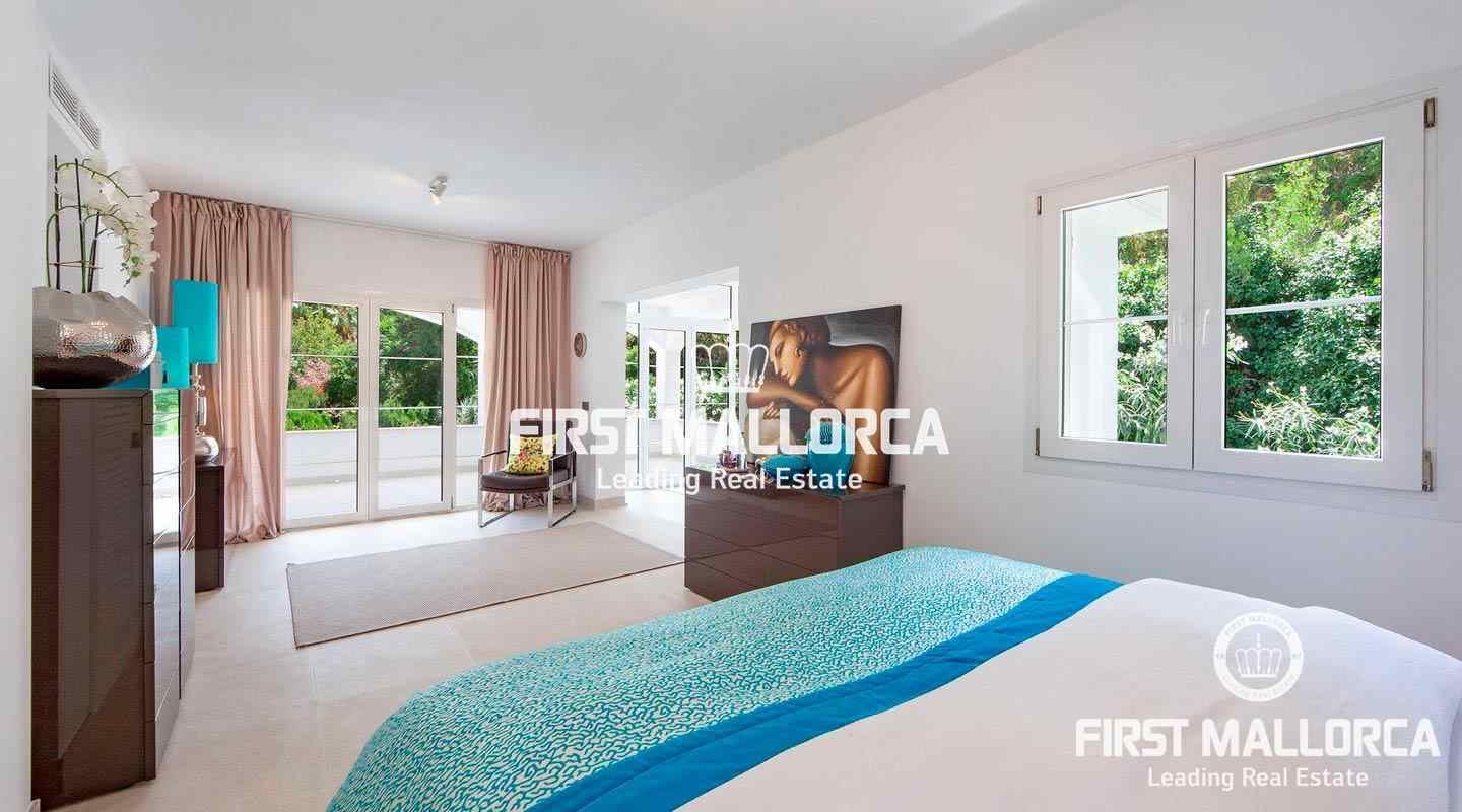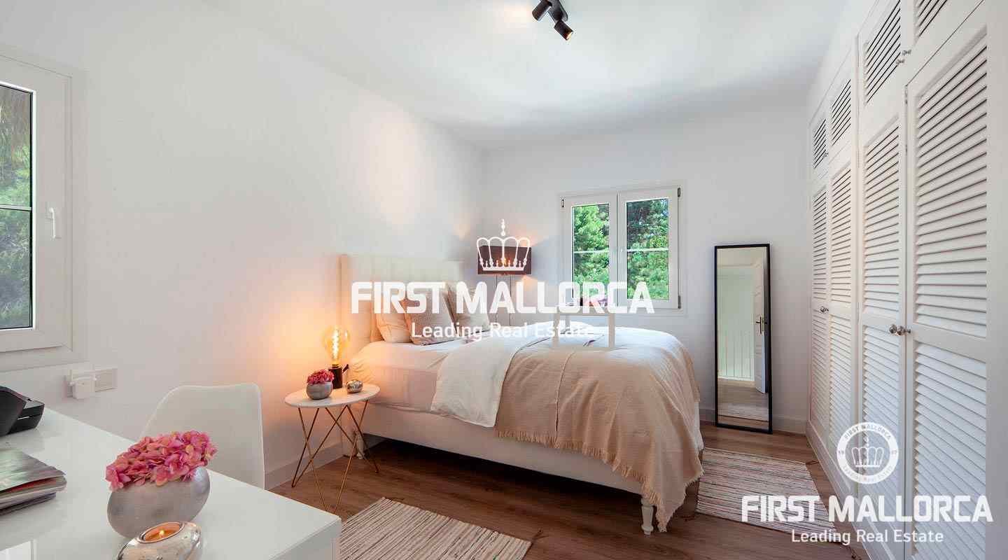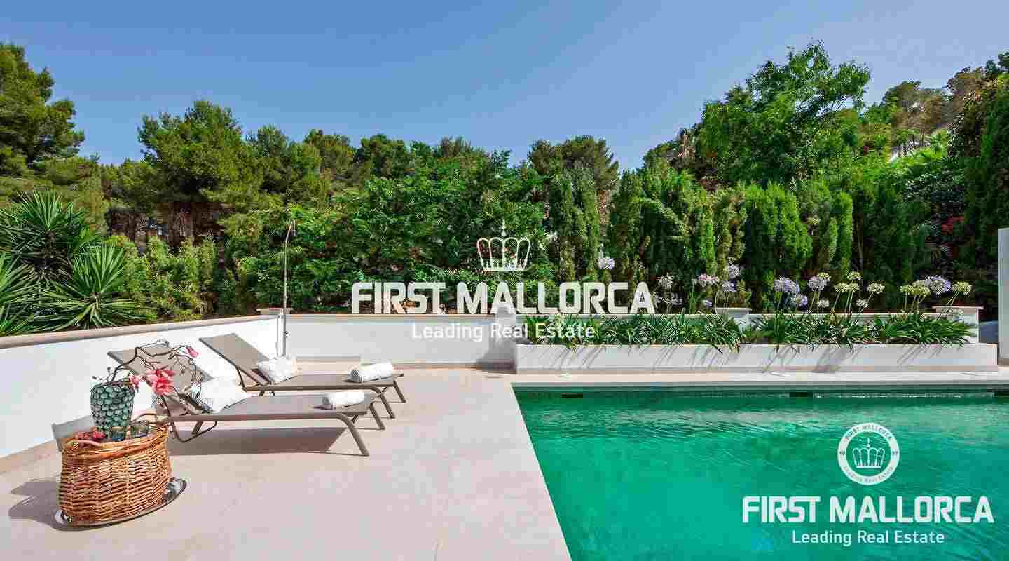 Esta moderna villa recientemente renovada se encuentra en una tranquila zona residencial entre el Puerto de Andratx y Camp de Mar. En total la propiedad con un tamaño de aprox. 266 m² tiene 3 dormitorios y 3 baños. Todos los dormitorios están en el piso superior, el dormitorio principal ofrece un baño en suite y un walk-in closet. Además hay una amplia terraza con piscina privada y vistas al bosque de pinos de enfrente. Se puede llegar a ella a través de la sala de estar, que está adyacente a la cocina de planta abierta. La villa se venderá completamente amueblada y se puede ampliar en 100 m² según sea necesario.