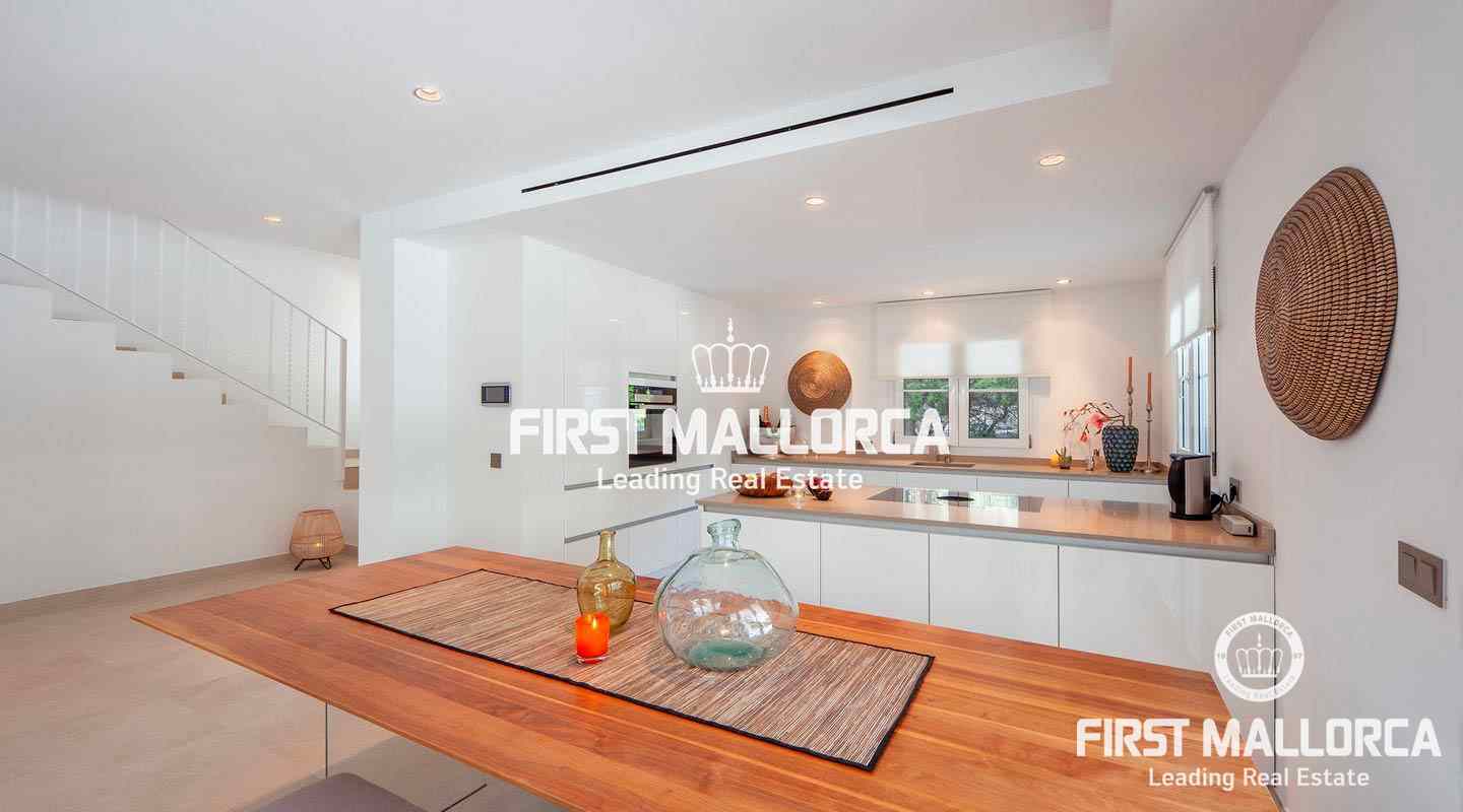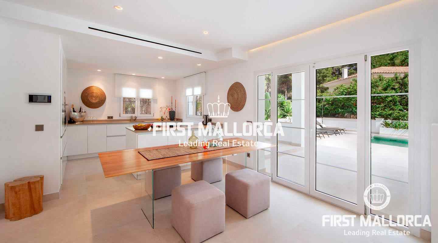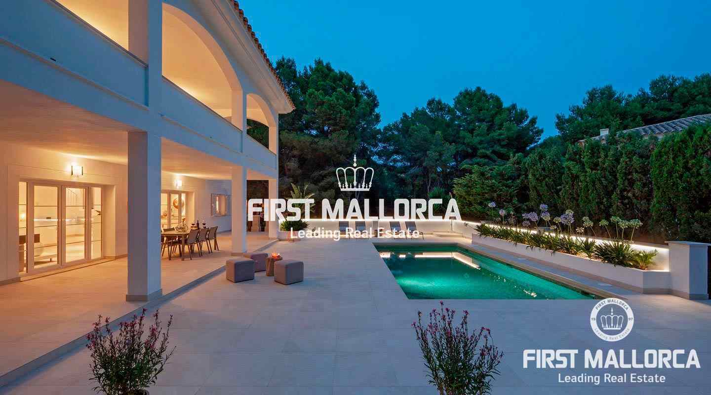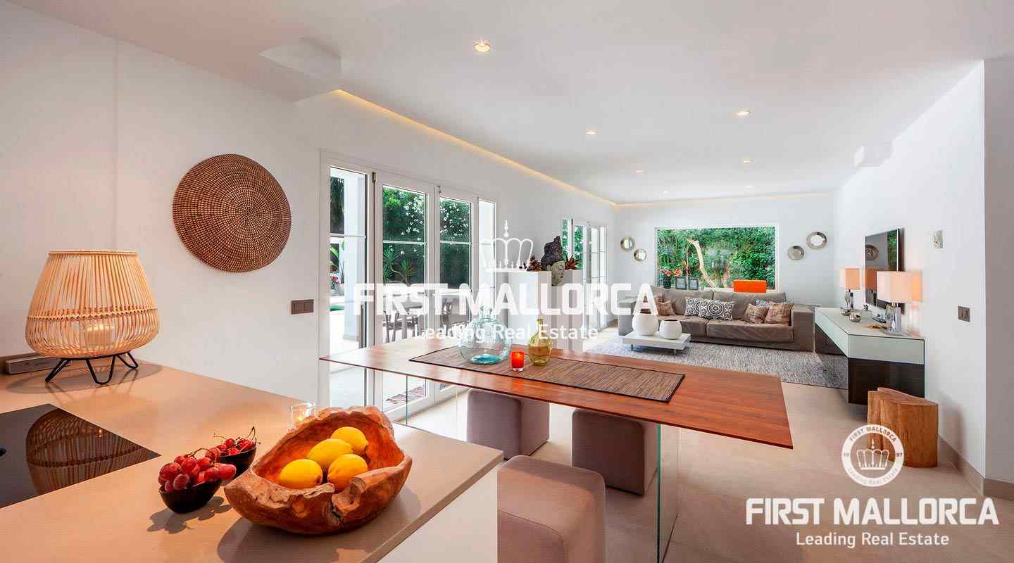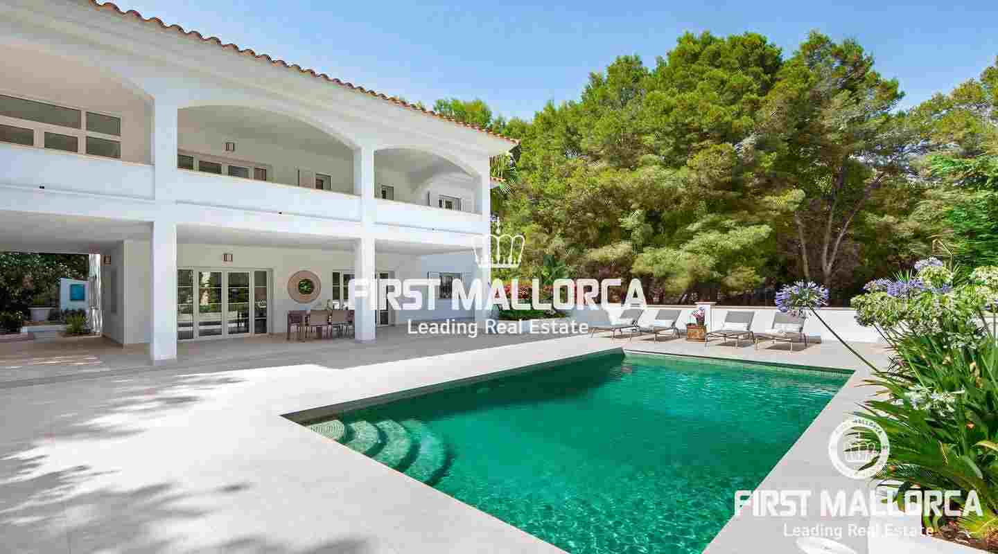 Esta moderna villa recientemente renovada se encuentra en una tranquila zona residencial entre el Puerto de Andratx y Camp de Mar. En total la propiedad con un tamaño de aprox. 266 m² tiene 3 dormitorios y 3 baños. Todos los dormitorios están en el piso superior, el dormitorio principal ofrece un baño en suite y un walk-in closet. Además hay una amplia terraza con piscina privada y vistas al bosque de pinos de enfrente. Se puede llegar a ella a través de la sala de estar, que está adyacente a la cocina de planta abierta. La villa se venderá completamente amueblada y se puede ampliar en 100 m² según sea necesario.