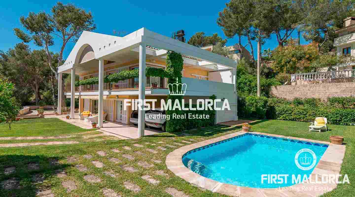 Esta encantadora villa mediterránea con un solar de 728 m² goza de una tranquila ubicación y de hermosas vistas al Puerto Portals.