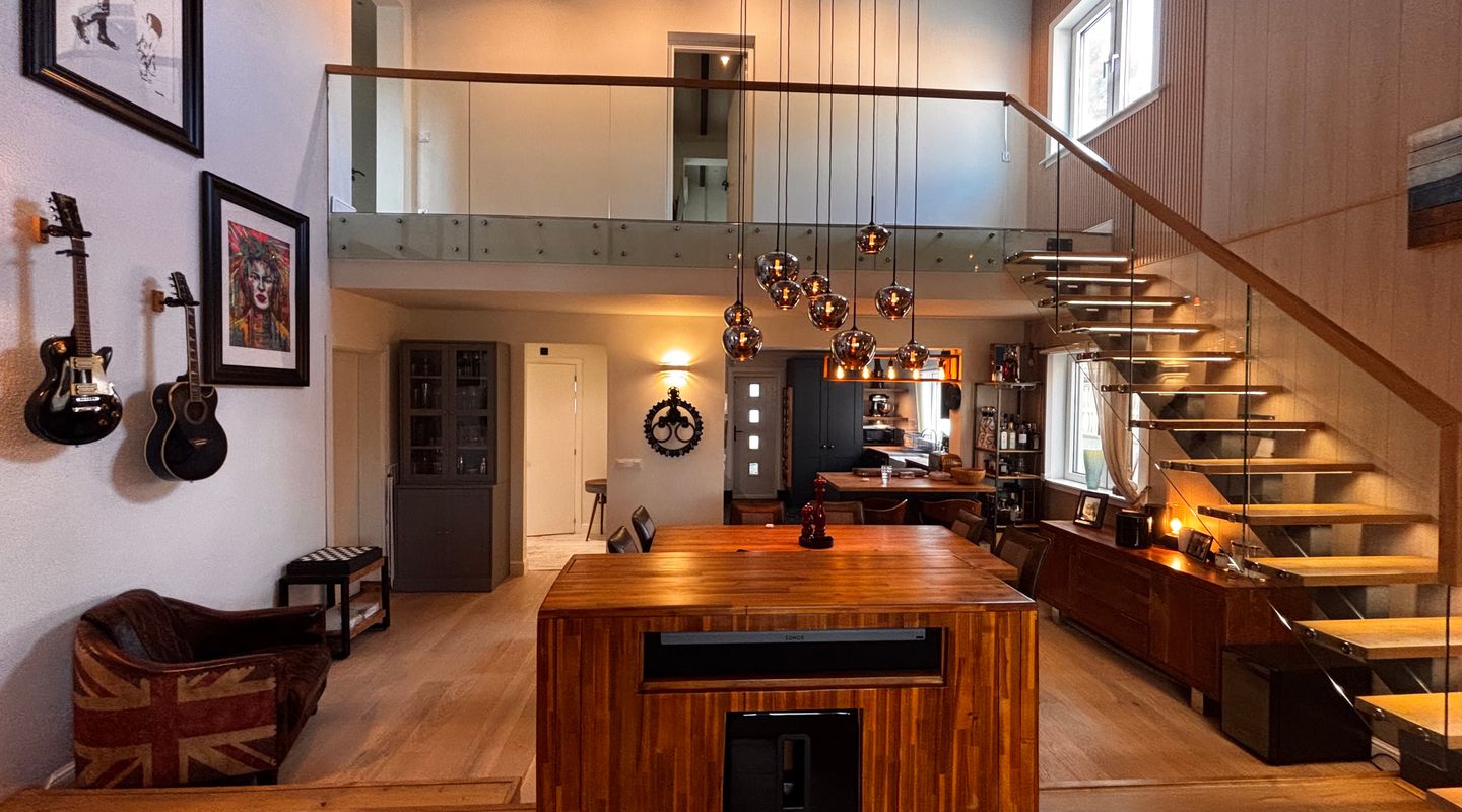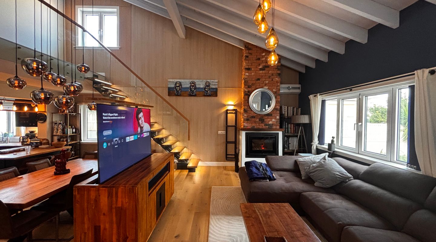 La vivienda está equipada con aire acondicionado, chimenea, ventanas de alto rendimiento energético y acabados personalizados de alta gama, fruto de una renovación realizada con materiales de primera calidad y atención al detalle.