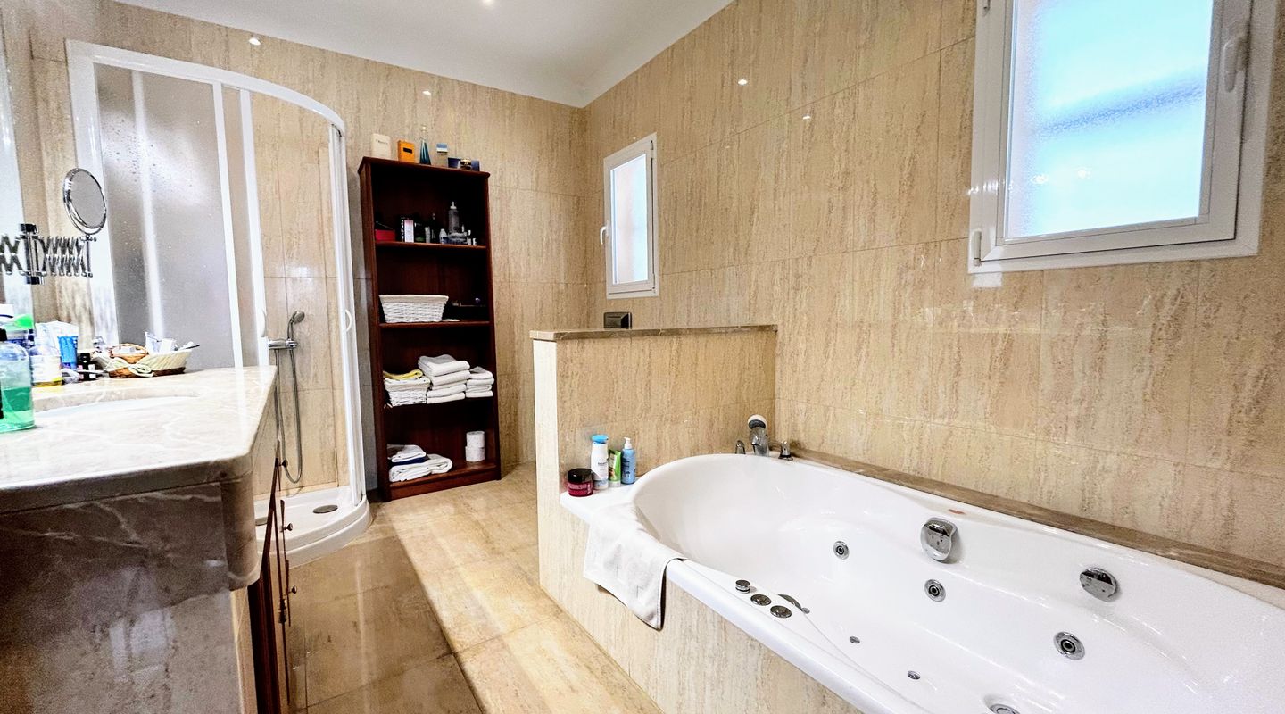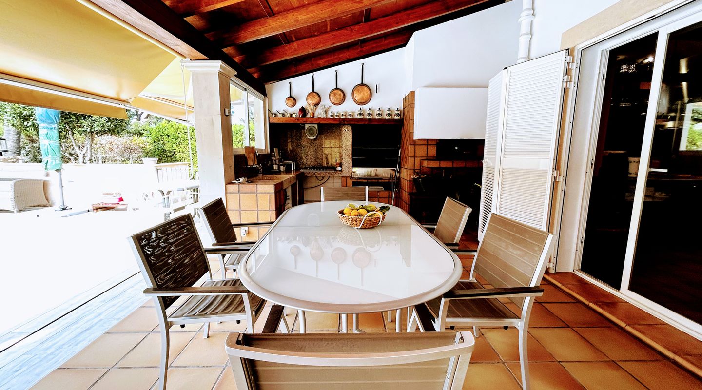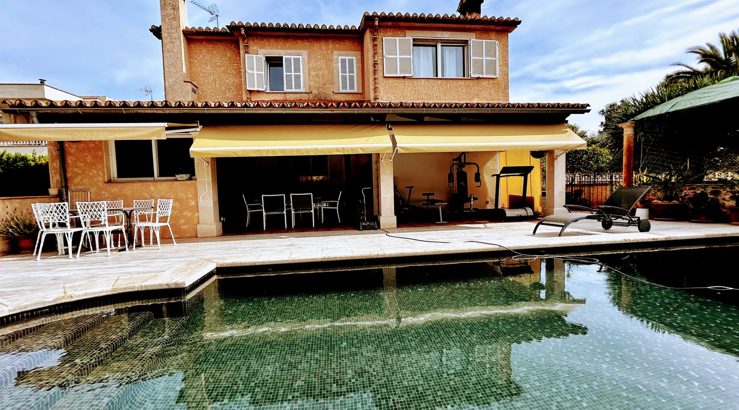 Esta acogedora casa familiar situada a sólo 20 km del centro de Palma y a escasos 700 metros del mar ofrece una mezcla perfecta de comodidad y vida costera. Con 5 dormitorios y 5 baños, la casa ofrece amplio espacio y almacenamiento para una familia numerosa. La primera planta cuenta con un amplio salón/comedor con cocina abierta, que ofrece un ambiente moderno y acogedor. Además, en este nivel hay un despacho/dormitorio con baño privado en suite, un aseo de invitados y 2 trasteros. La planta superior consta de 4 amplios dormitorios, cada uno con su propio cuarto de baño, proporcionando privacidad y comodidad para todos los residentes. La zona exterior de la propiedad ofrece una amplia gama de comodidades para la relajación, el ocio y el entretenimiento: Cocina de verano: Equipado con un horno de piedra mediterránea y barbacoa, perfecto para cocinar al aire libre y experiencias gastronómicas, terraza cubierta con gran comedor familiar, zona de GYM, piscina moderna con cubierta automática, terraza solarium, jardín mediterráneo, adornado con árboles de cítricos y un estanque de peces, se suma al encanto y la tranquilidad de la propiedad. i tiene alguna pregunta o necesita más ayuda con respecto a la propiedad o cualquier otro asunto, no dude en ponerse en contacto con nosotros, y haremos todo lo posible para proporcionarle información y orientación.