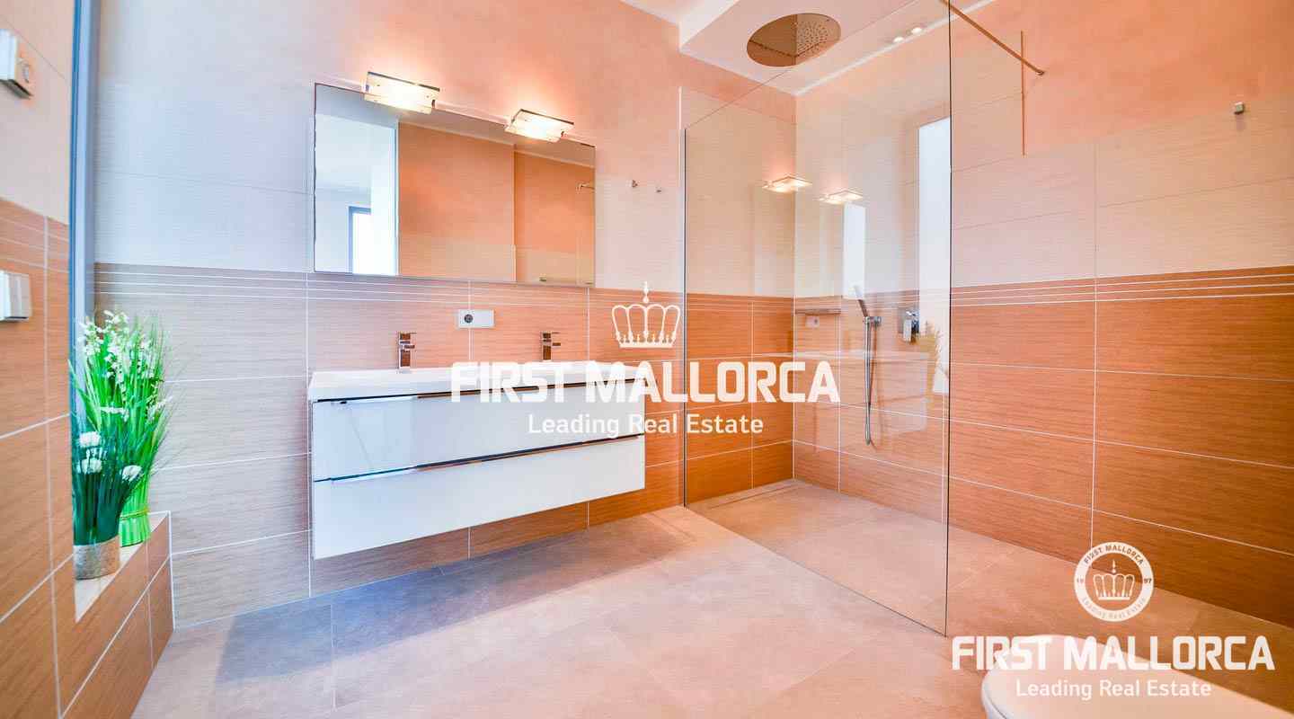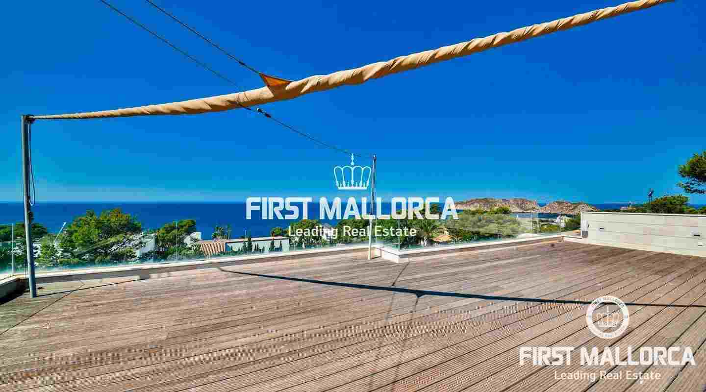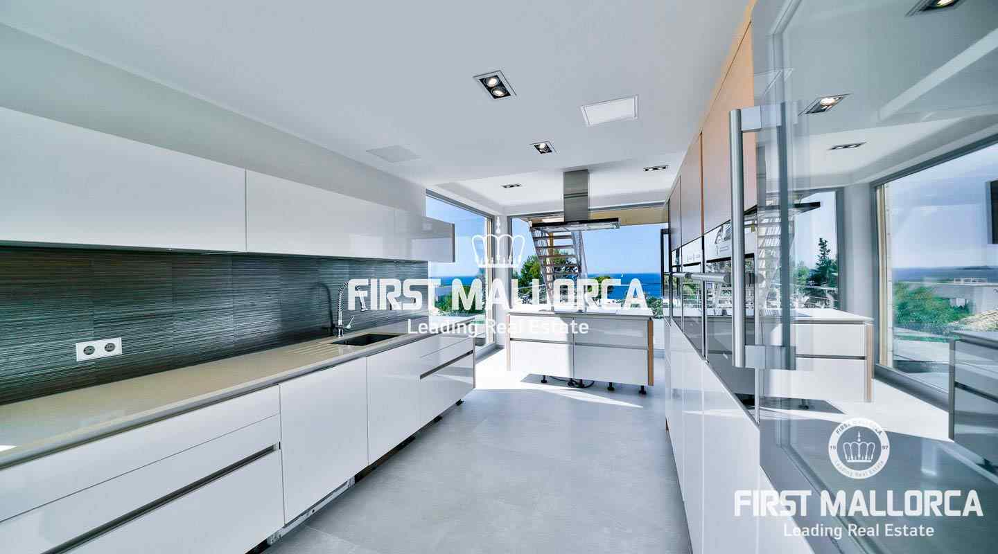 Esta villa luminosa y moderna con vistas al mar tiene un total de 4 dormitorios, cada uno con baño en suite, un aseo, un salón-comedor de planta abierta, una cocina totalmente equipada, un garaje con lavadero y una gran terraza en la azotea.