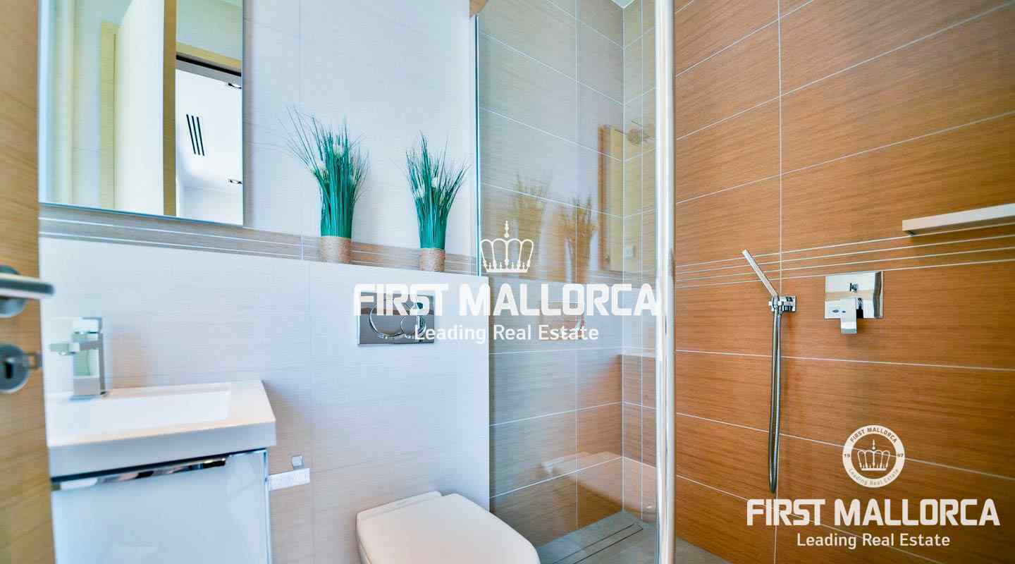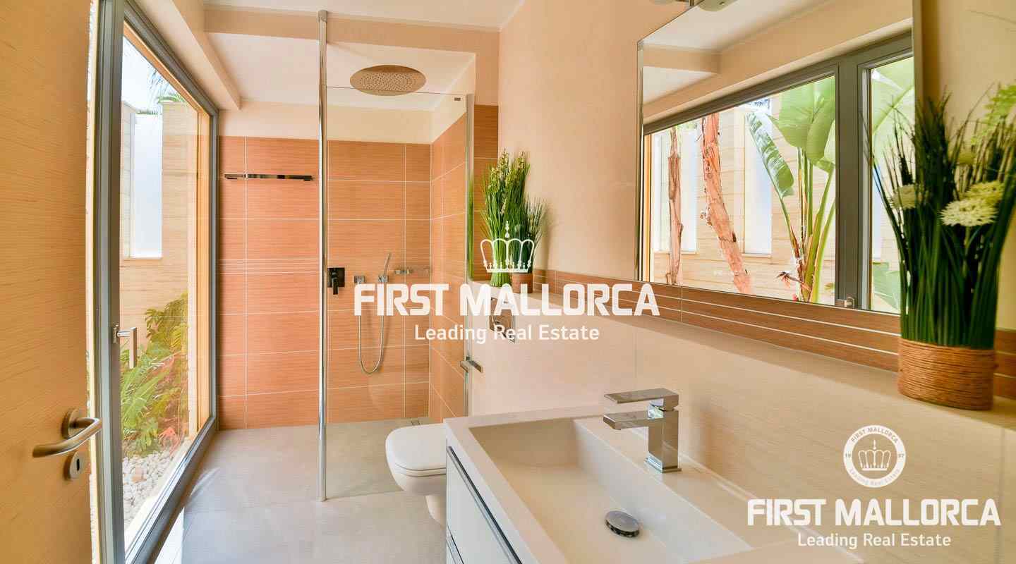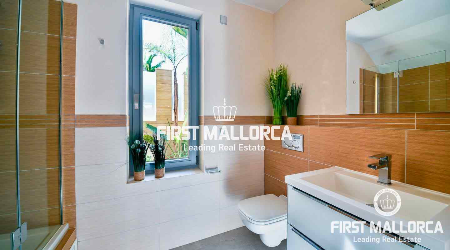Esta villa luminosa y moderna con vistas al mar tiene un total de 4 dormitorios, cada uno con baño en suite, un aseo, un salón-comedor de planta abierta, una cocina totalmente equipada, un garaje con lavadero y una gran terraza en la azotea.