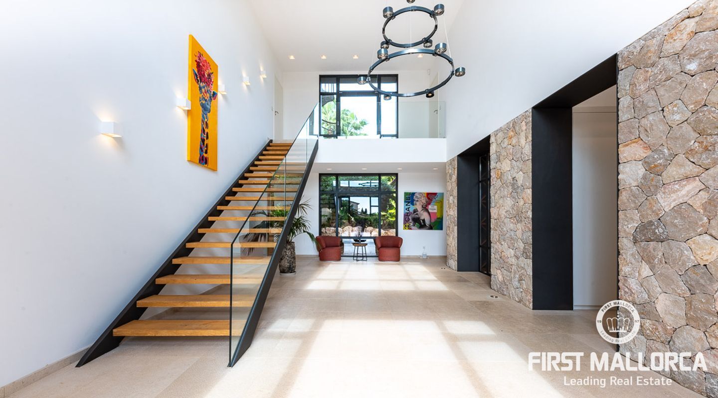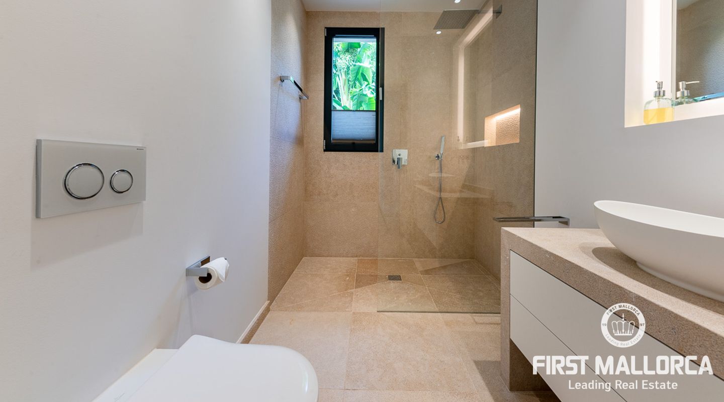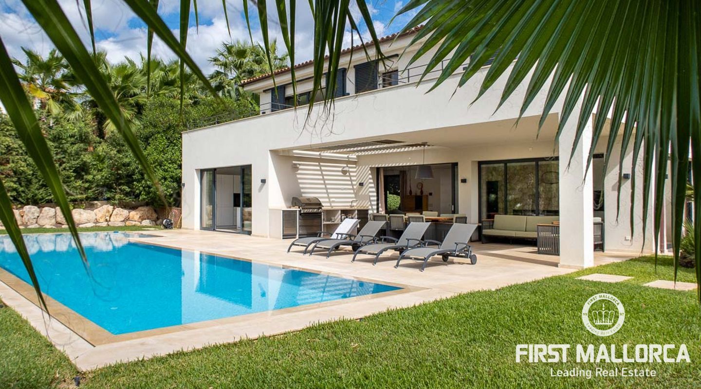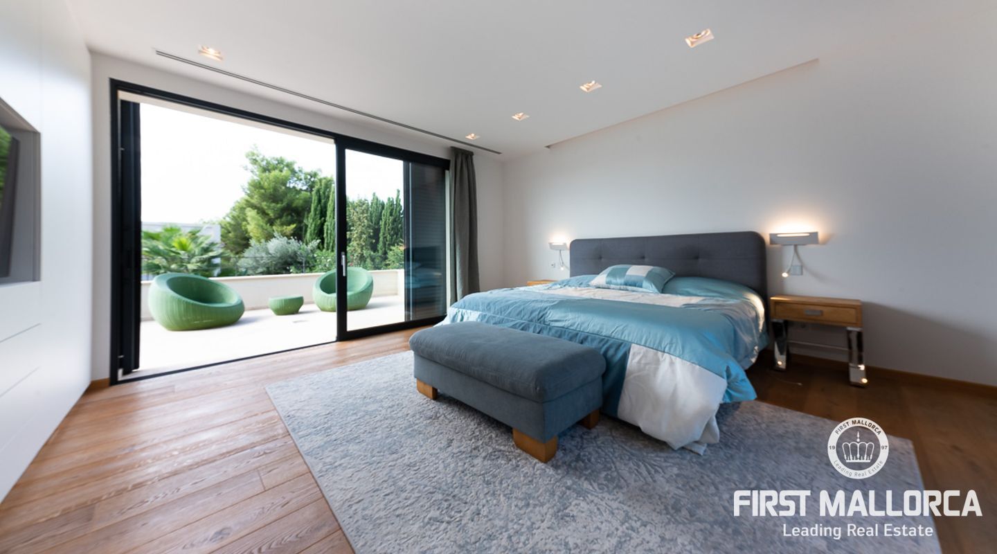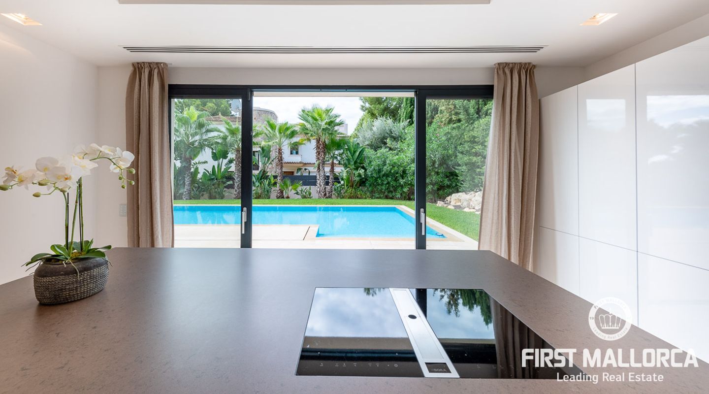 Líneas limpias, características vanguardistas y materiales de alta calidad hacen de esta propiedad de nivel superior un hogar verdaderamente elegante con un toque mediterráneo. Esta villa con una superficie construida de 462 m² disfruta de un diseño de vida de planta abierta con transiciones fluidas y grandes frentes de ventanas, creando un ambiente único. Además de una impresionante zona de entrada con doble altura de techo y una extraordinaria bodega, hay generosas zonas de estar, 4 dormitorios y 5 baños, que ofrecen suficiente espacio para usted y su familia. También hay una habitación independiente con entrada propia, ideal para invitados y amigos. Las características de alta calidad garantizan el confort durante todo el año. La calefacción por suelo radiante, el aire acondicionado conducido y la chimenea proporcionan temperaturas agradables en invierno y las terrazas cubiertas ofrecen sombra durante los calurosos meses de verano. Gracias a su excelente ubicación en el exclusivo suroeste de Mallorca, esta propiedad es una propiedad de inversión estable con un alto potencial y lista para entrar a vivir hoy mismo. Nova Santa Ponsa es una zona residencial de lujo que goza de una ubicación privilegiada con fácil acceso al elegante puerto deportivo de Port Adriano, a varios campos de golf galardonados y a menos de 20 minutos en coche de la capital de la isla, Palma de Mallorca, y de su aeropuerto internacional, que está conectado con vuelos directos a todas las capitales europeas, así como a algunas del extranjero, como Nueva York.