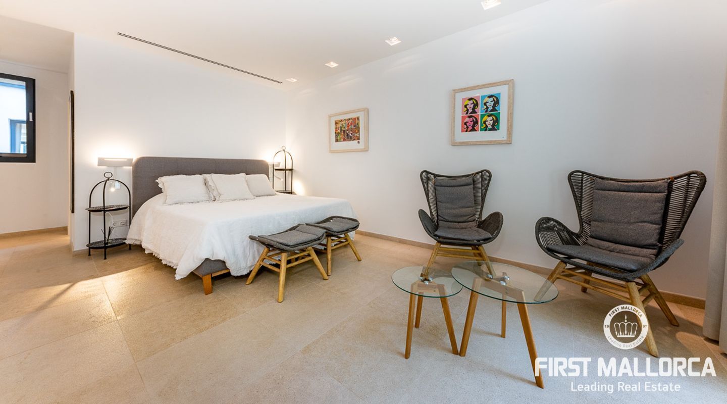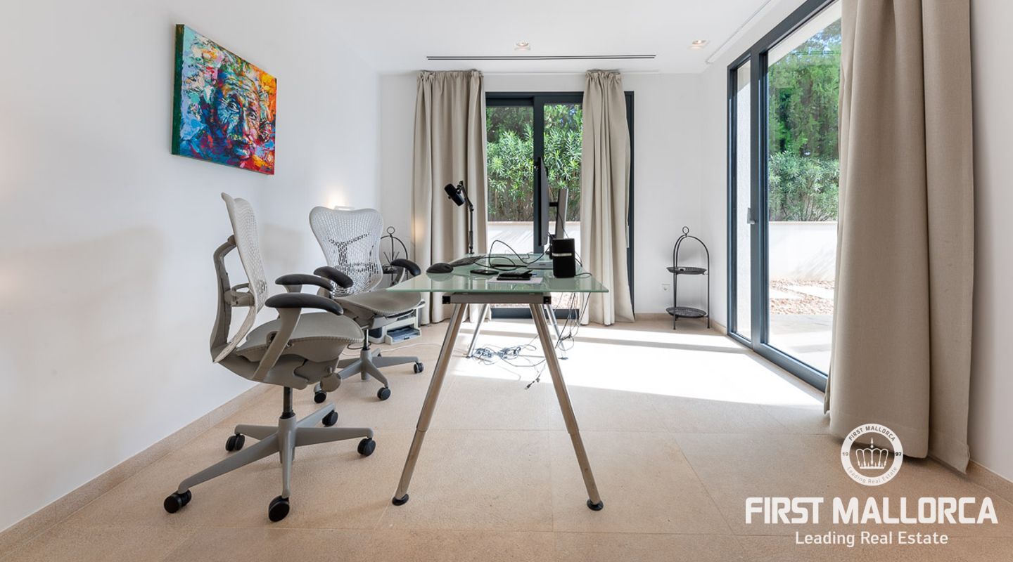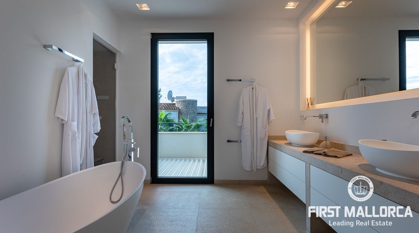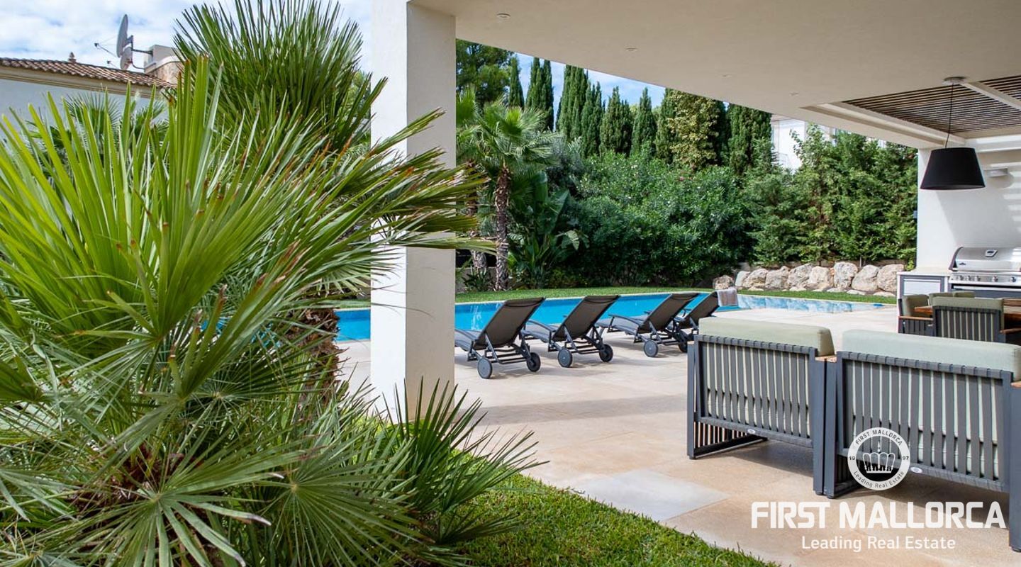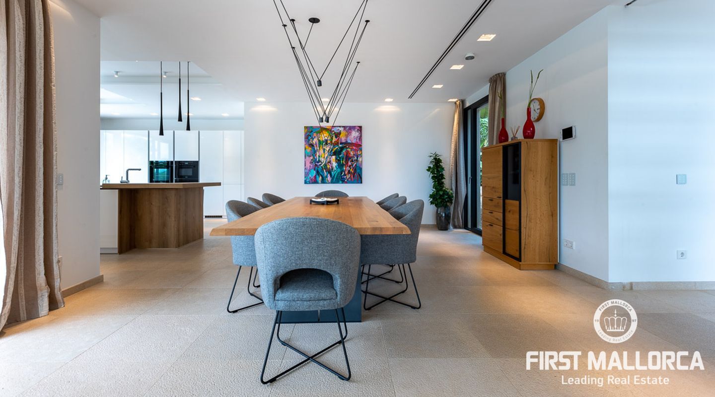 Líneas limpias, características vanguardistas y materiales de alta calidad hacen de esta propiedad de nivel superior un hogar verdaderamente elegante con un toque mediterráneo. Esta villa con una superficie construida de 462 m² disfruta de un diseño de vida de planta abierta con transiciones fluidas y grandes frentes de ventanas, creando un ambiente único. Además de una impresionante zona de entrada con doble altura de techo y una extraordinaria bodega, hay generosas zonas de estar, 4 dormitorios y 5 baños, que ofrecen suficiente espacio para usted y su familia. También hay una habitación independiente con entrada propia, ideal para invitados y amigos. Las características de alta calidad garantizan el confort durante todo el año. La calefacción por suelo radiante, el aire acondicionado conducido y la chimenea proporcionan temperaturas agradables en invierno y las terrazas cubiertas ofrecen sombra durante los calurosos meses de verano. Gracias a su excelente ubicación en el exclusivo suroeste de Mallorca, esta propiedad es una propiedad de inversión estable con un alto potencial y lista para entrar a vivir hoy mismo. Nova Santa Ponsa es una zona residencial de lujo que goza de una ubicación privilegiada con fácil acceso al elegante puerto deportivo de Port Adriano, a varios campos de golf galardonados y a menos de 20 minutos en coche de la capital de la isla, Palma de Mallorca, y de su aeropuerto internacional, que está conectado con vuelos directos a todas las capitales europeas, así como a algunas del extranjero, como Nueva York.