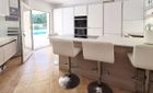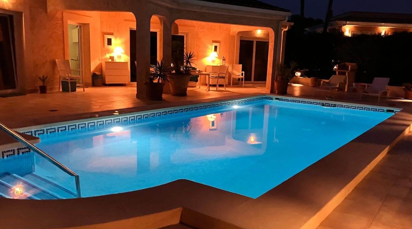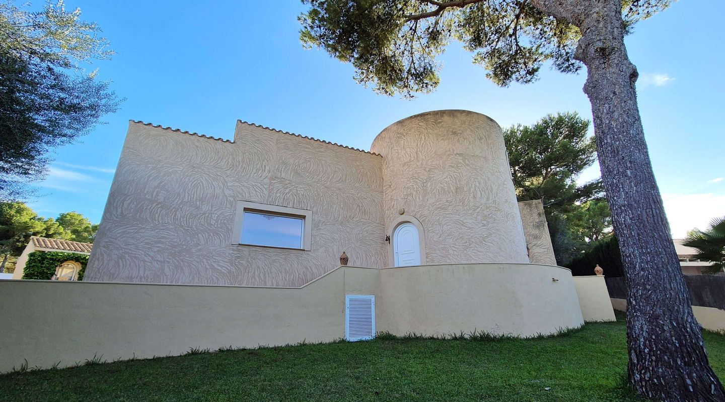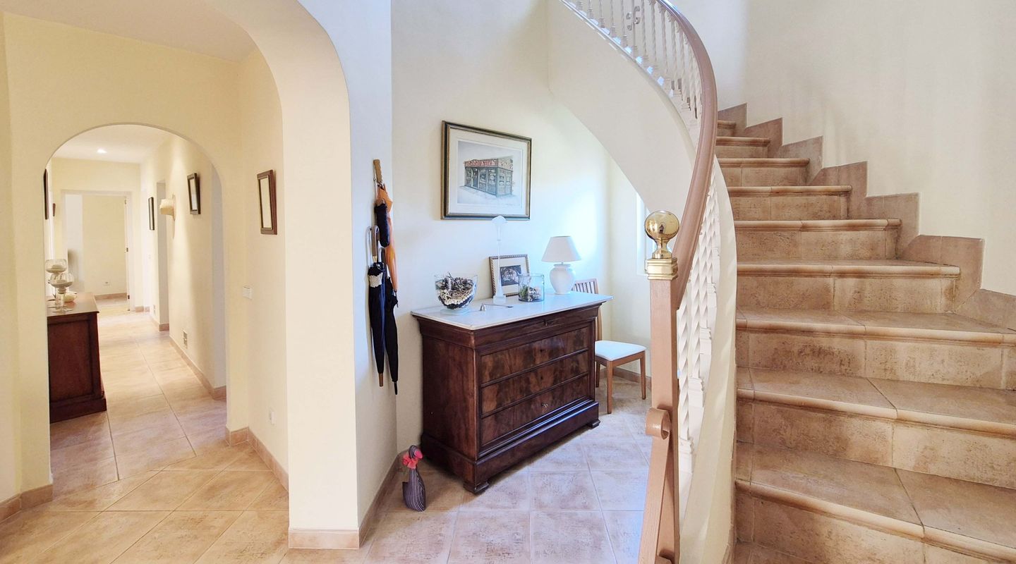 Uno de los elementos más destacados es la planta superior semicircular con acceso a la azotea: un espacio multifuncional ideal como despacho, zona de invitados o rincón privado, con vistas abiertas sobre Santa Ponsa y hasta el Puig de Galatzó. Completan el conjunto una piscina privada, jardines bien cuidados, un garaje doble y trasteros adicionales.