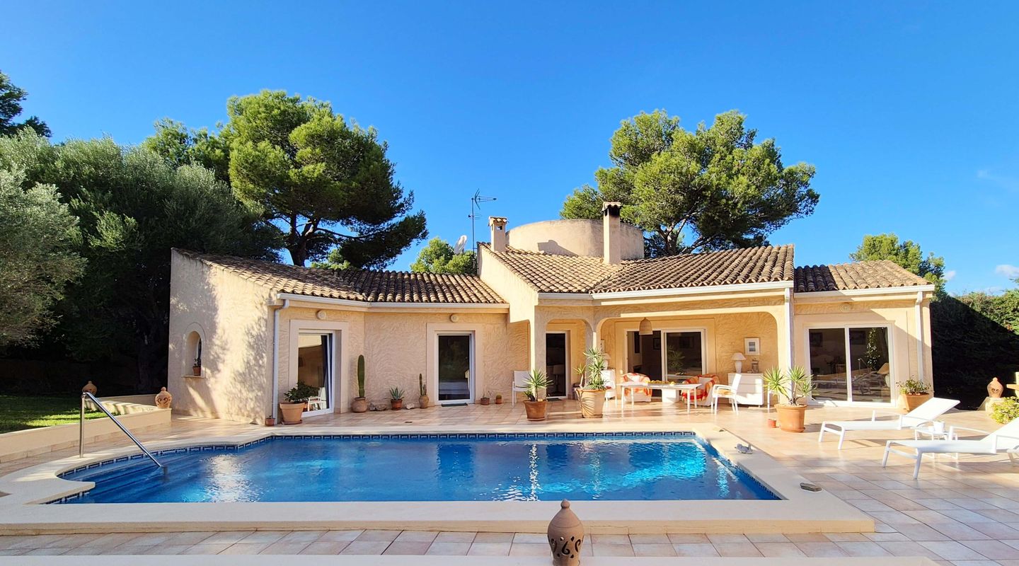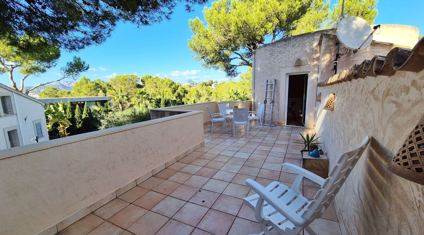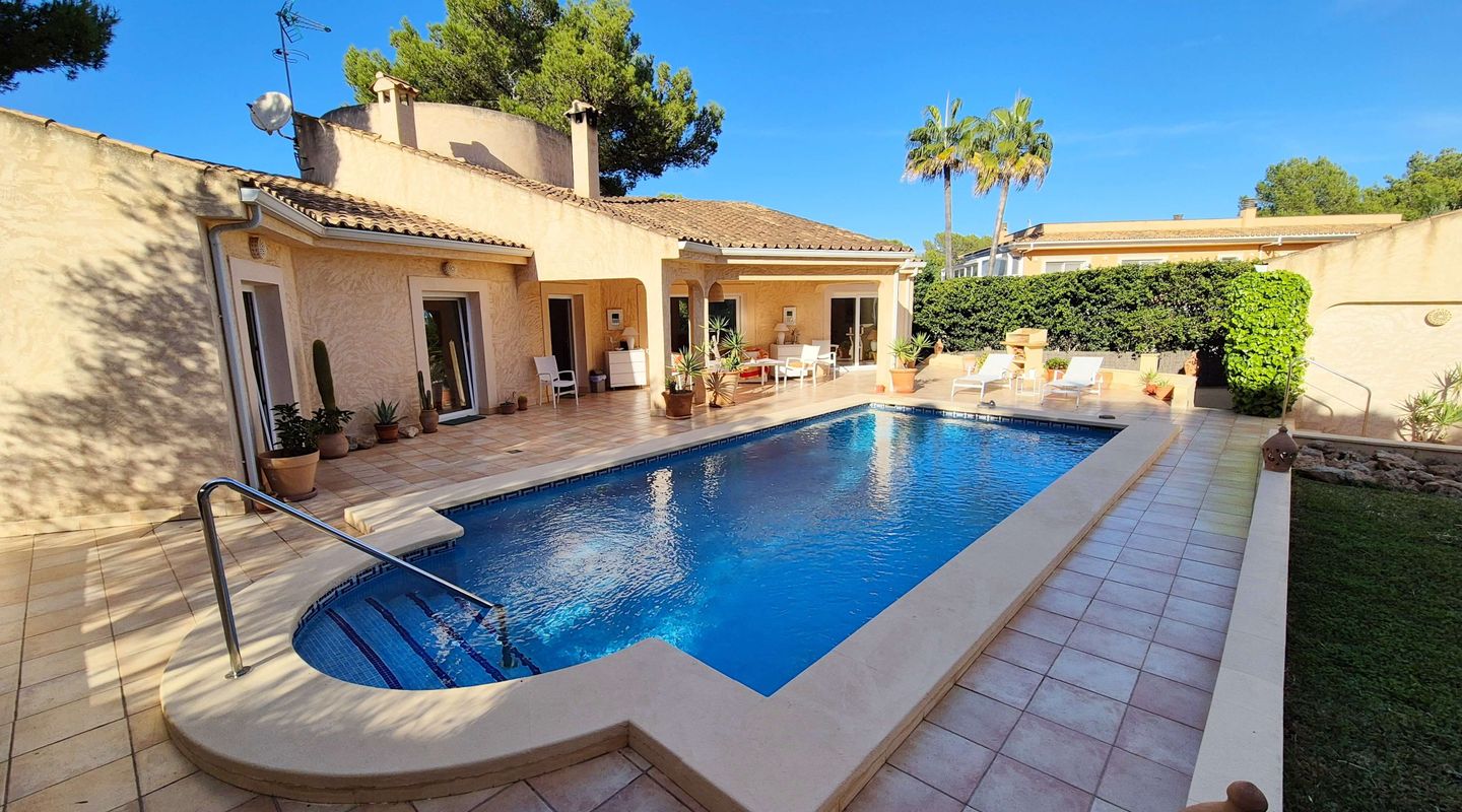 Esta villa independiente se encuentra en una tranquila calle residencial de Santa Ponsa, a pocos minutos del centro y de la costa. La parcela, de aprox. 1.033 m², ofrece un alto grado de privacidad, mientras que los aprox. 216 m² de superficie habitable –ampliados por amplias terrazas cubiertas y descubiertas– crean una combinación ideal entre estilo de vida mediterráneo y distribución funcional.