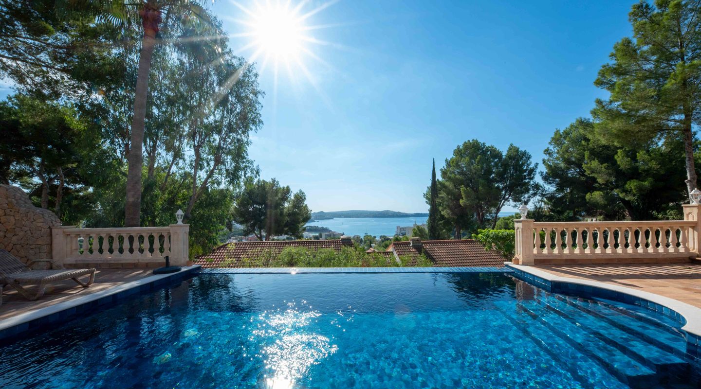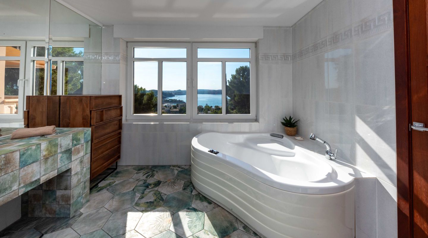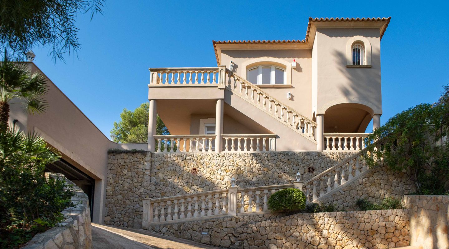 Esta elegante villa mediterránea en la costa suroeste de Mallorca ofrece increíbles vistas y un confort excepcional a solo minutos de la playa. La casa se distribuye en dos plantas con espacios abiertos y luminosos y amplios ventanales que enmarcan impresionantes vistas al mar. El salón-comedor principal se integra a la perfección con las terrazas y la piscina, integrando la vida interior y exterior. La villa cuenta con tres dormitorios con baños en suite, un aseo de cortesía y comodidades modernas, como calefacción por suelo radiante de gas y aire acondicionado integrado, para una comodidad durante todo el año. Lo más destacado es la espaciosa terraza con piscina climatizada de agua salada, perfecta para nadar, relajarse o entretenerse mientras disfruta de vistas panorámicas al Mediterráneo.