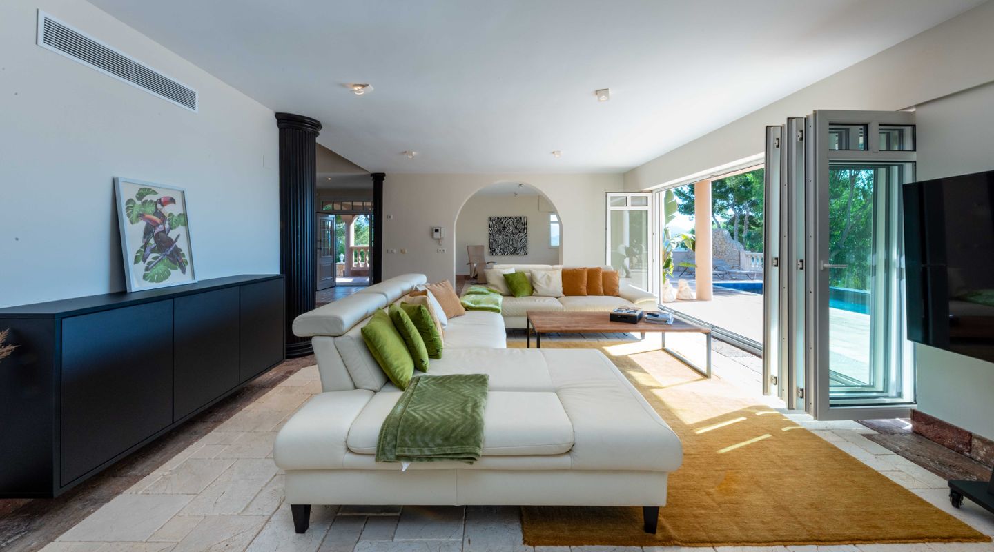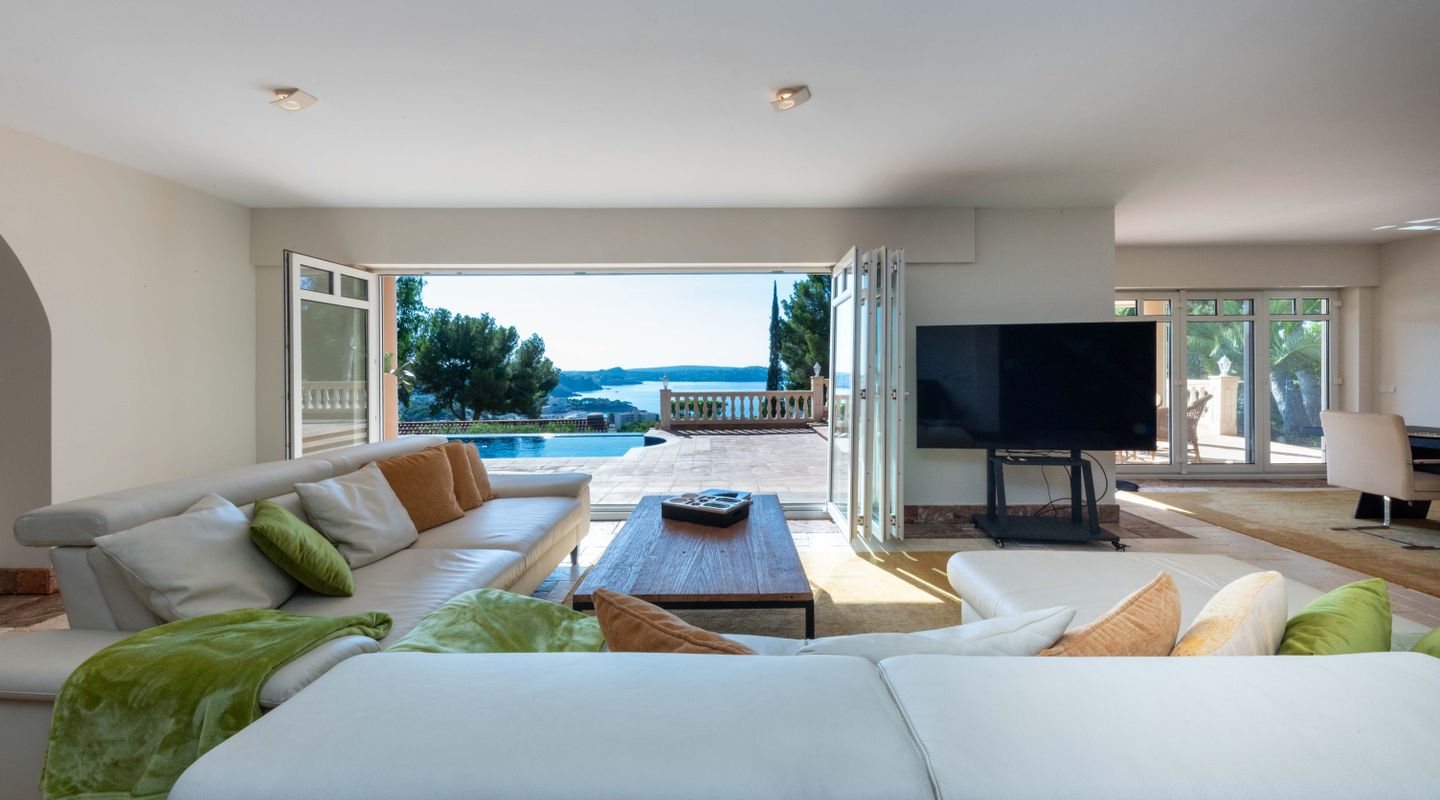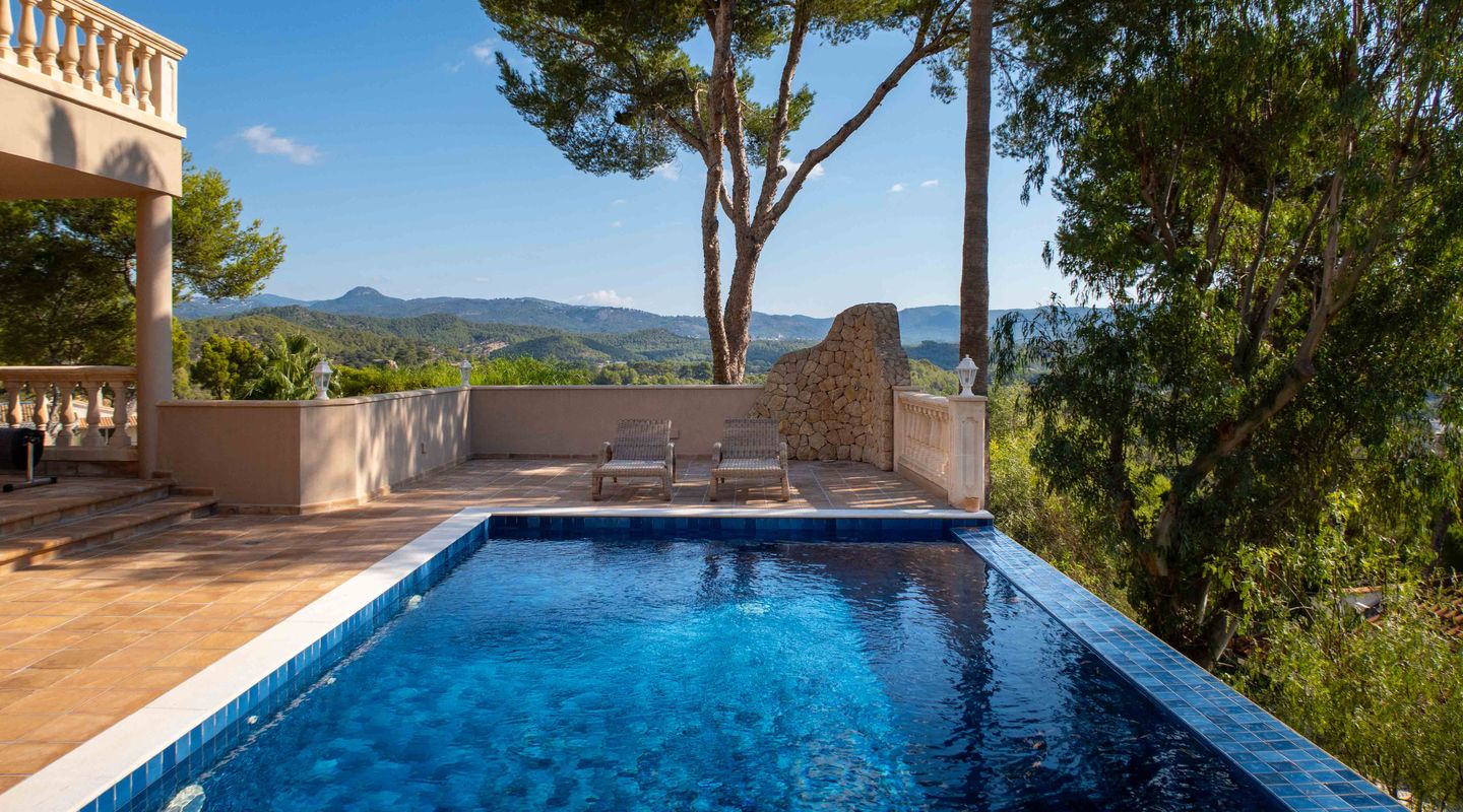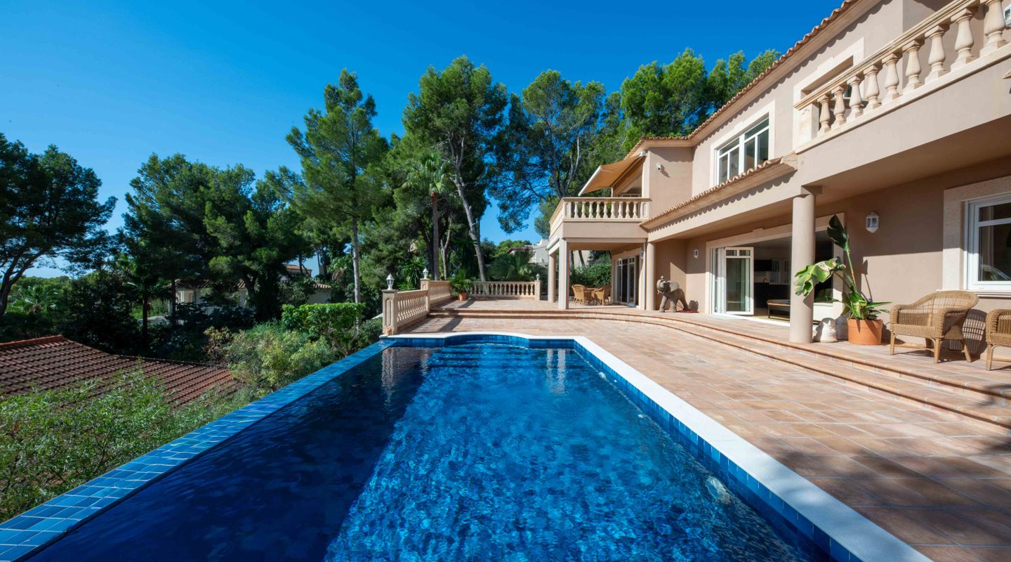 Esta elegante villa mediterránea en la costa suroeste de Mallorca ofrece increíbles vistas y un confort excepcional a solo minutos de la playa. La casa se distribuye en dos plantas con espacios abiertos y luminosos y amplios ventanales que enmarcan impresionantes vistas al mar. El salón-comedor principal se integra a la perfección con las terrazas y la piscina, integrando la vida interior y exterior. La villa cuenta con tres dormitorios con baños en suite, un aseo de cortesía y comodidades modernas, como calefacción por suelo radiante de gas y aire acondicionado integrado, para una comodidad durante todo el año. Lo más destacado es la espaciosa terraza con piscina climatizada de agua salada, perfecta para nadar, relajarse o entretenerse mientras disfruta de vistas panorámicas al Mediterráneo.