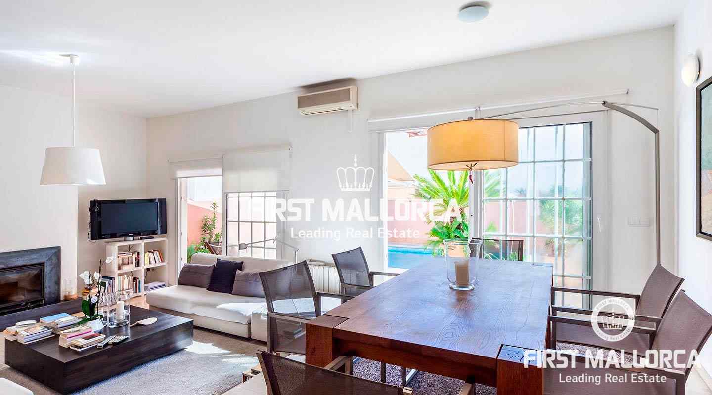 Esta casa en Son Espanyolet es perfecta para familias. Tiene una superficie construida de 241 m² y dispone de una piscina, un garaje, 4 dormitorios muy espaciosos, así como una terraza abierta y una cubierta. Además, la propiedad cuenta con aire acondicionado, calefacción central y ventanas de doble acristalamiento.