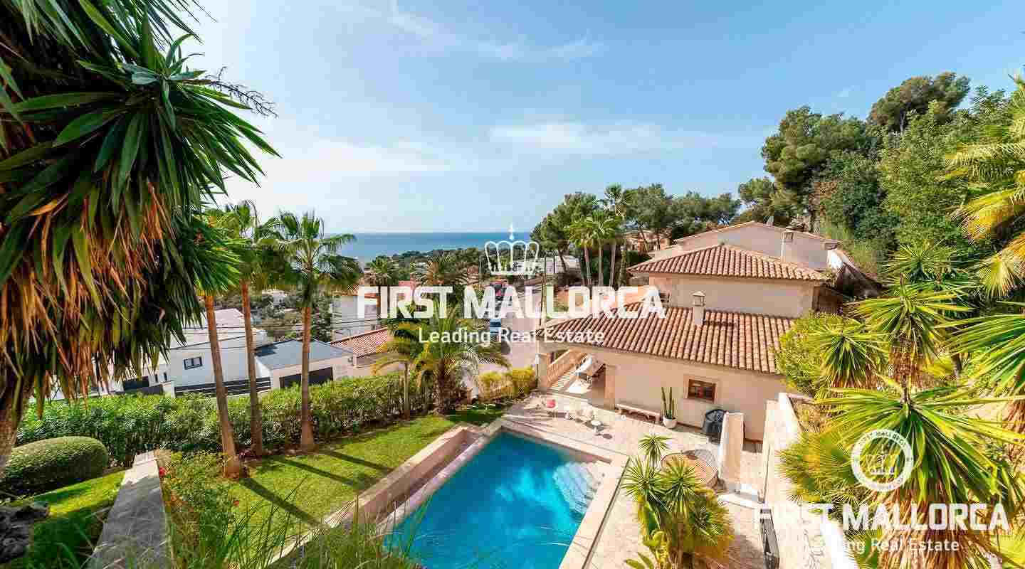 Esta villa de estilo mediterráneo clásico no solo ofrece una hermosa vista al mar de la bahía de Palma y Cabrera, sino que también se encuentra a poca distancia del centro de Portals Nous. La propiedad es muy espaciosa y ofrece una sala de estar, un comedor separado y una cocina-comedor de planta abierta en la zona inferior. Esto se conecta directamente a la terraza principal cubierta. Desde aquí se accede a la piscina, que está rodeada de terrazas y césped. El área exterior ofrece privacidad y tiene vistas al mar desde todas las habitaciones y terrazas de la villa recientemente renovada. En la planta superior hay 4 dormitorios y 3 baños y también espacio suficiente para crear una oficina en casa. Con un garaje para 3 coches, que está conectado a la casa y un ascensor que conecta todos los niveles.