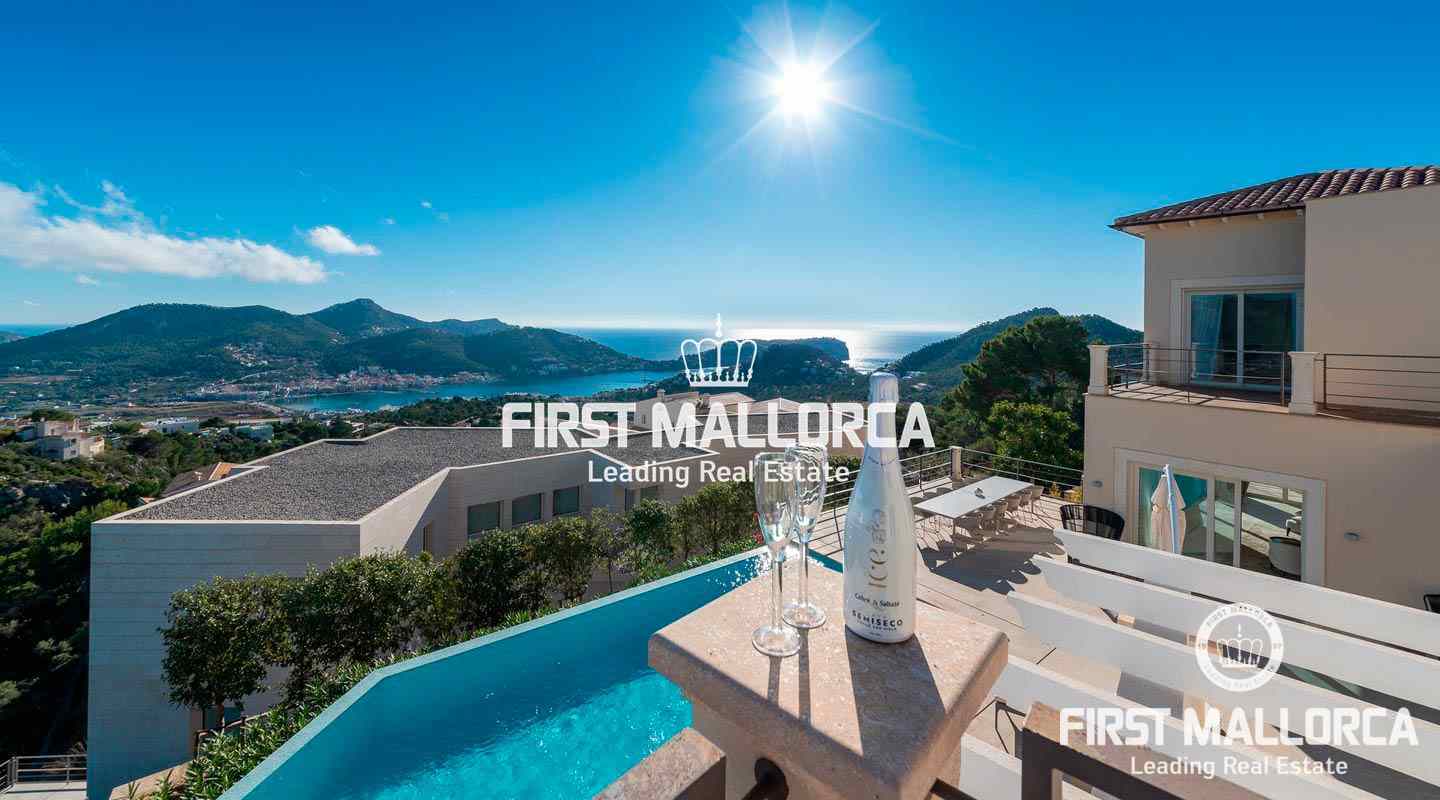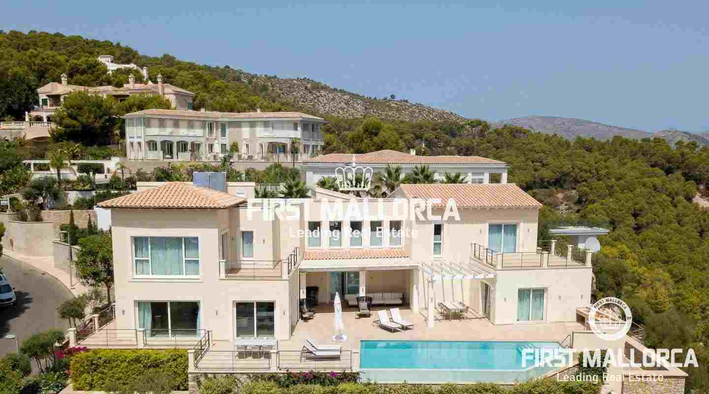 Villa de alta calidad con vistas al mar, construida con los mejores materiales en Montport, Puerto de Andratx. Un sol abundante y un cielo azul le esperan en esta casa espaciosa. 5 dormitorios con baños en suite, garaje, gimnasio y piscina privada. Con aire acondicionado, calefacción por suelo radiante y por toda la casa predominan materiales naturales como vigas de madera y suelos de piedra. Una sensación de relajación inmediata nada más atravesar la puerta. Un refugio ideal en la mágica isla de Mallorca.