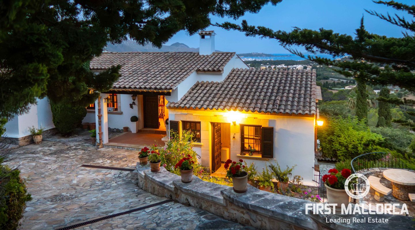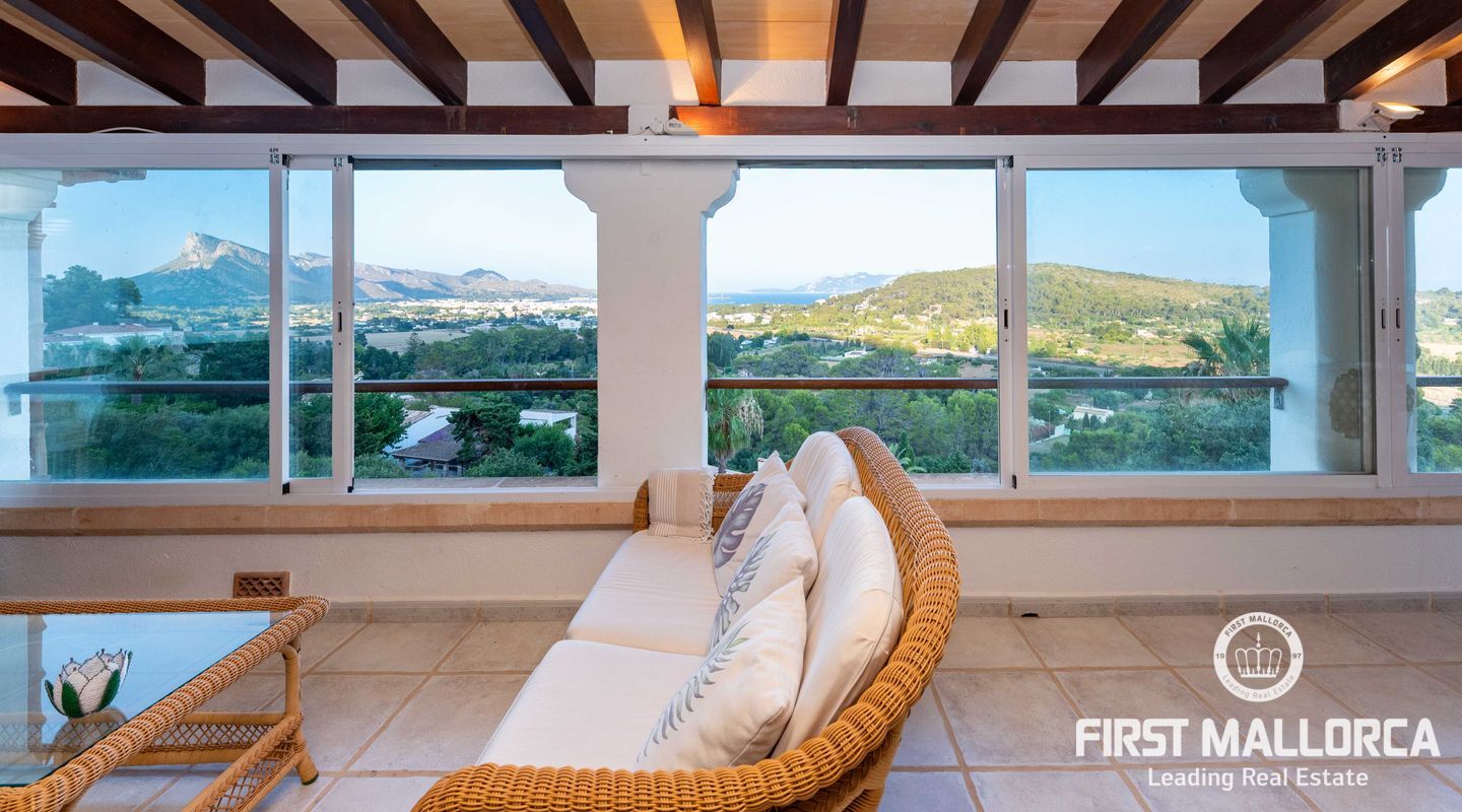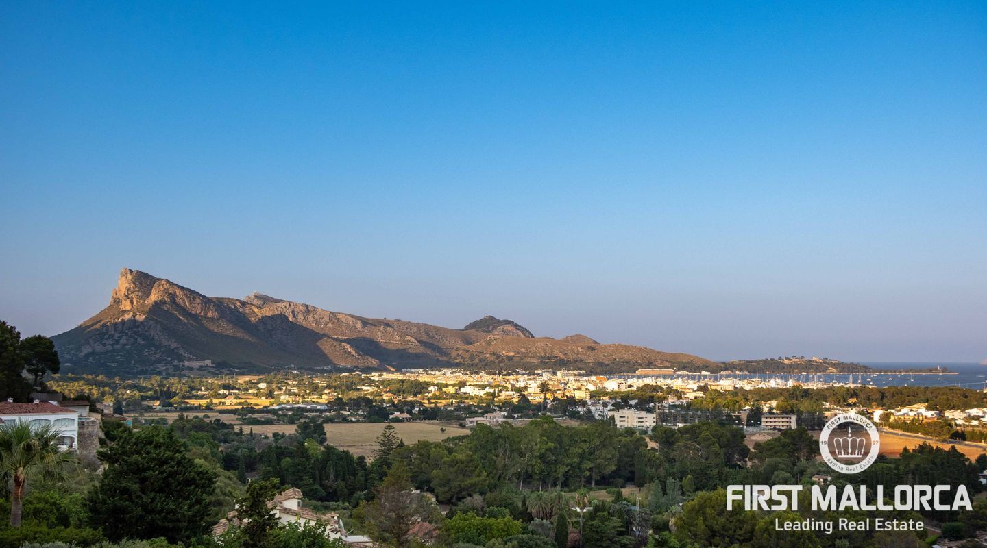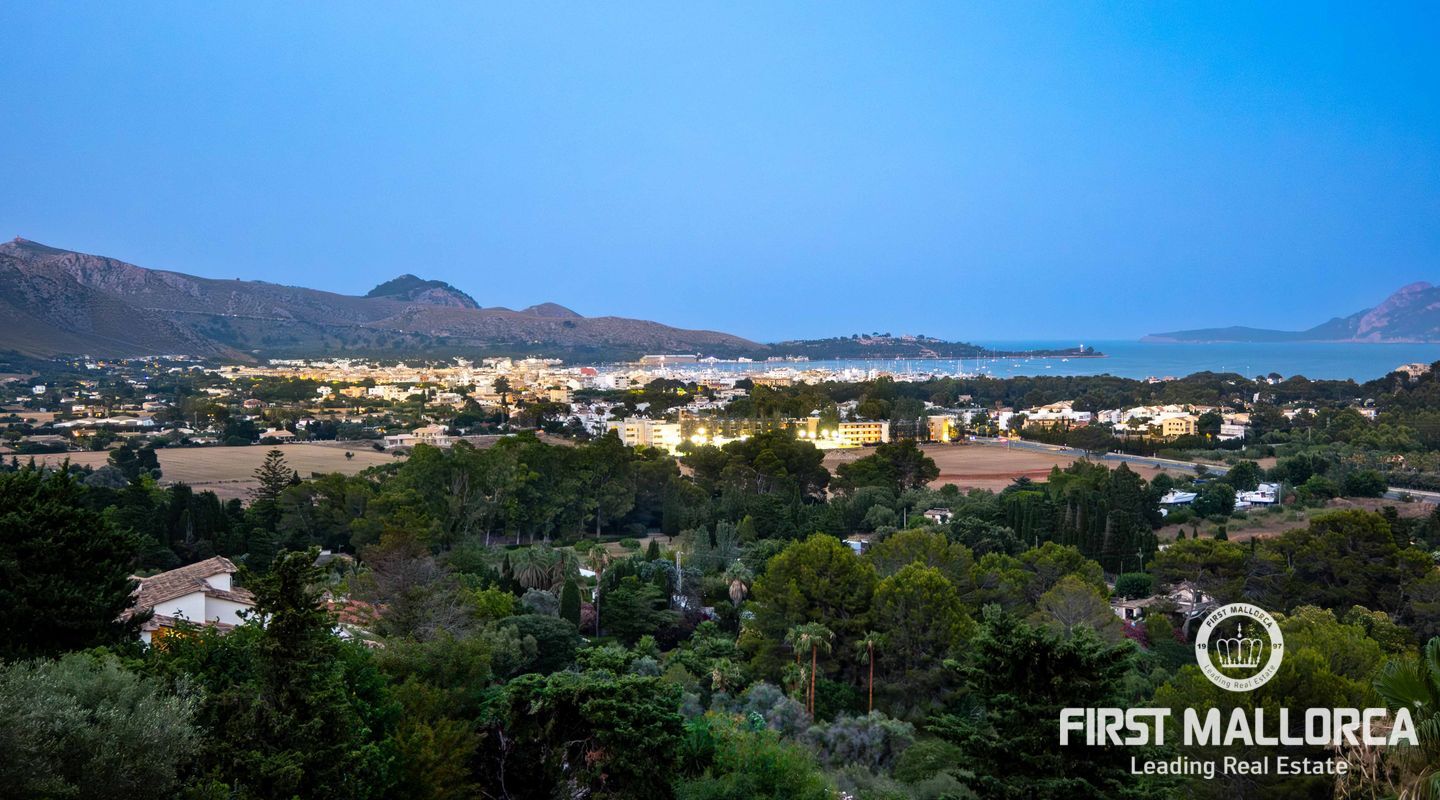 Ubicada en la parte alta de la exclusiva zona residencial de "El Vila" en Puerto Pollensa, esta villa presume de unas vistas espectaculares tanto del entorno rural como de la impresionante bahía de Pollensa, con el mar como telón de fondo. Al entrar, le recibirán espacios amplios y llenos de luz natural. Esta extraordinaria propiedad destaca por sus techos con vigas de madera, elegantes arcos de marés y una cuidada artesanía en cada detalle.