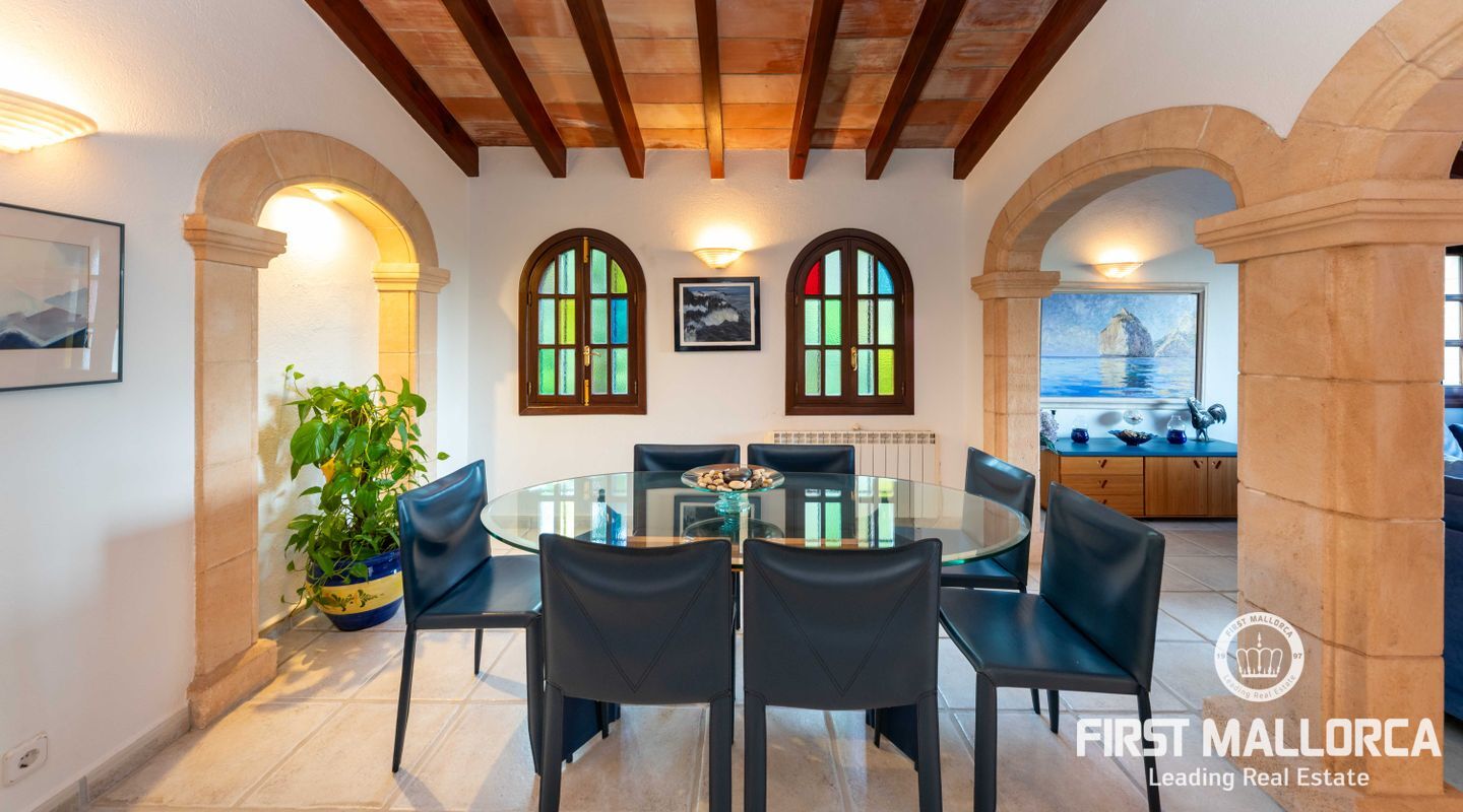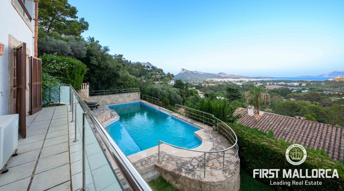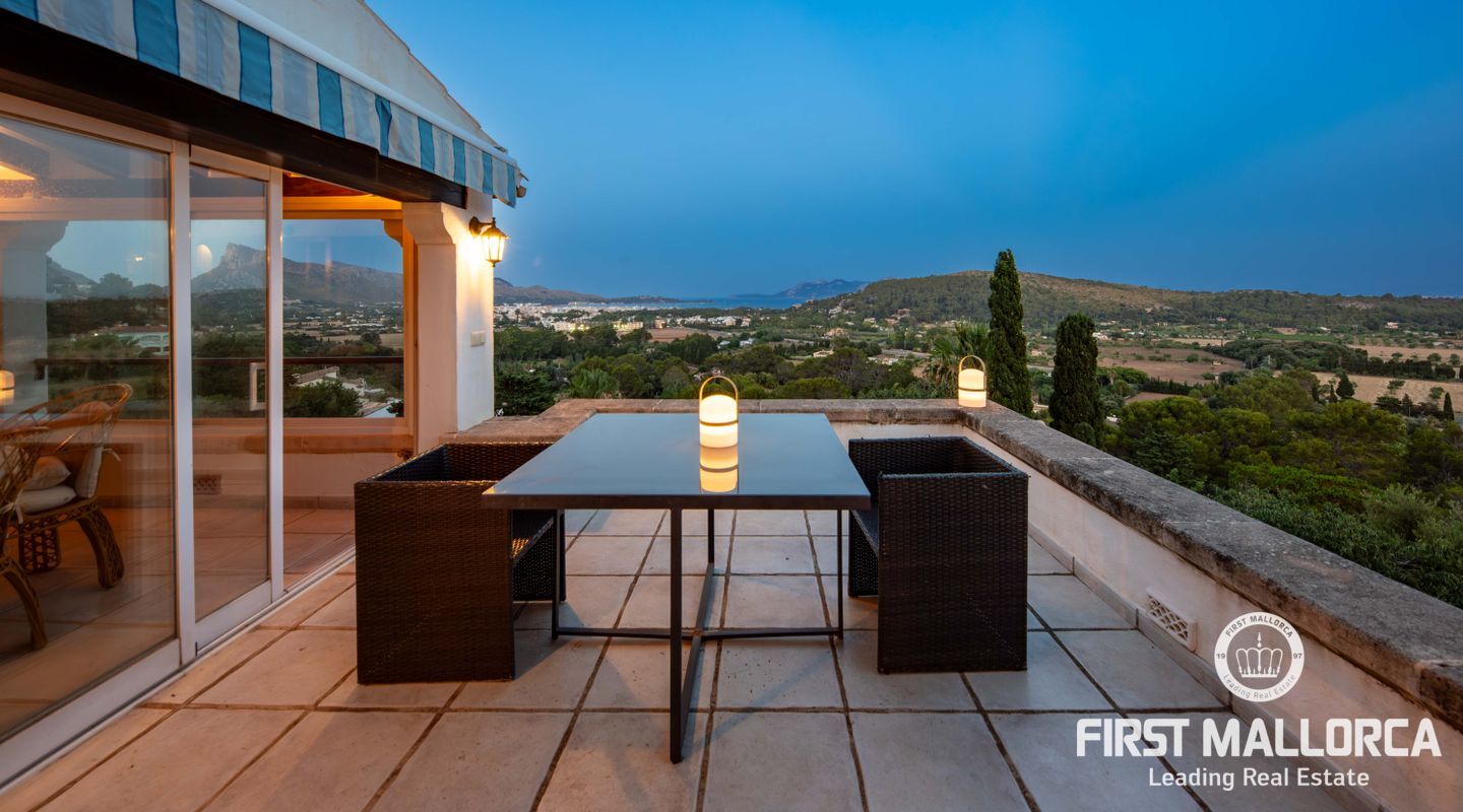 Ubicada en la parte alta de la exclusiva zona residencial de "El Vila" en Puerto Pollensa, esta villa presume de unas vistas espectaculares tanto del entorno rural como de la impresionante bahía de Pollensa, con el mar como telón de fondo. Al entrar, le recibirán espacios amplios y llenos de luz natural. Esta extraordinaria propiedad destaca por sus techos con vigas de madera, elegantes arcos de marés y una cuidada artesanía en cada detalle.