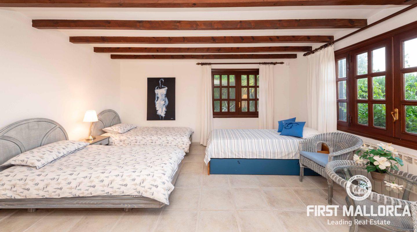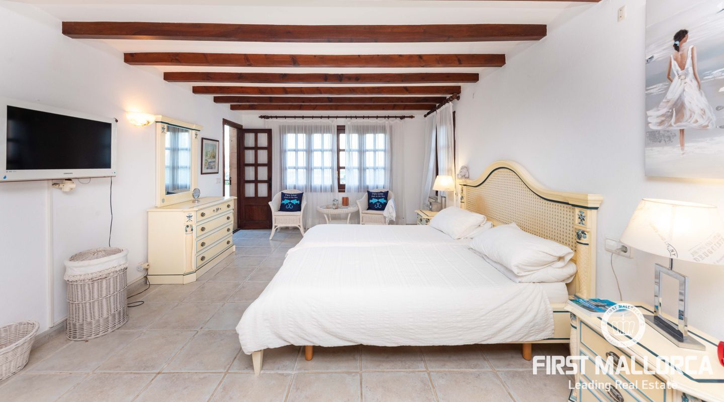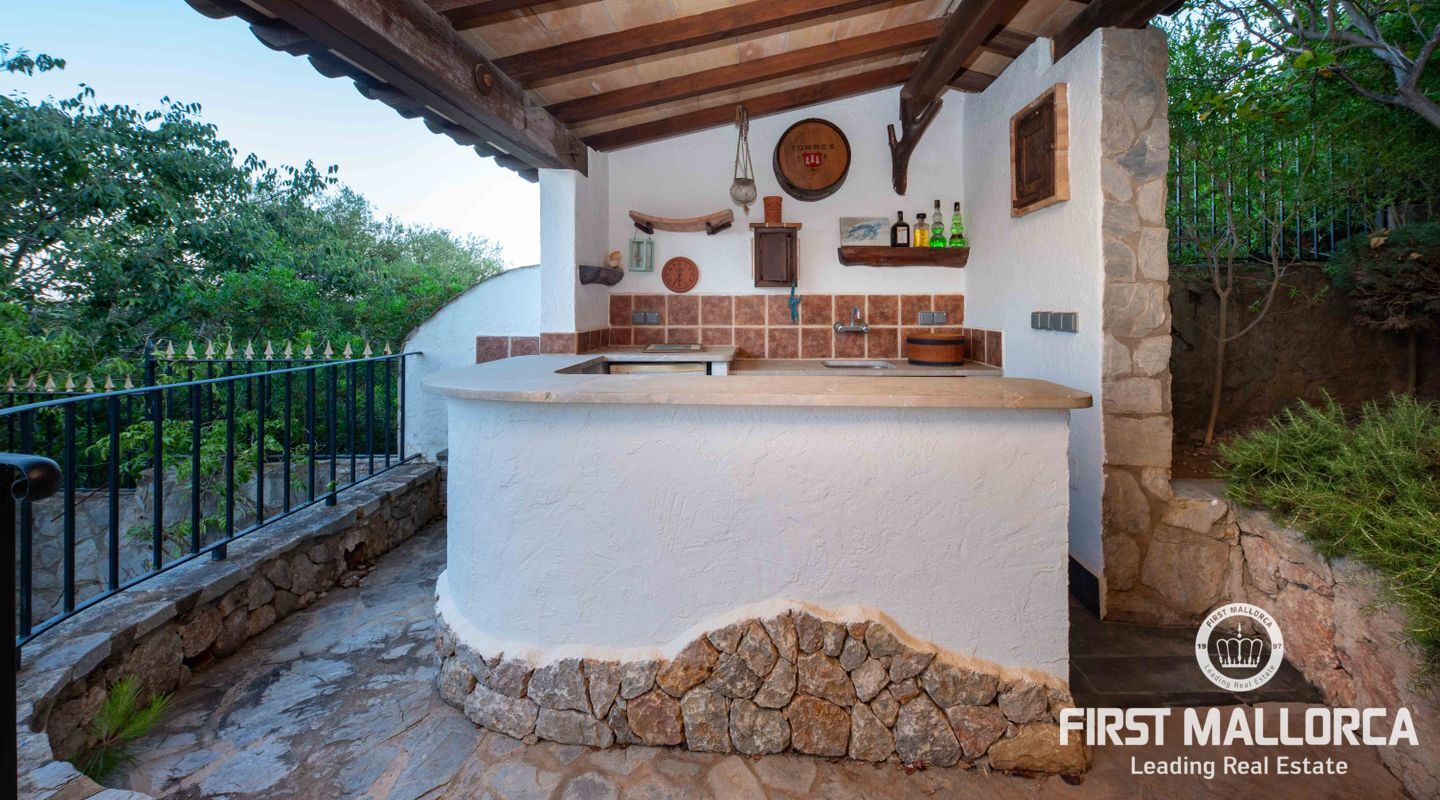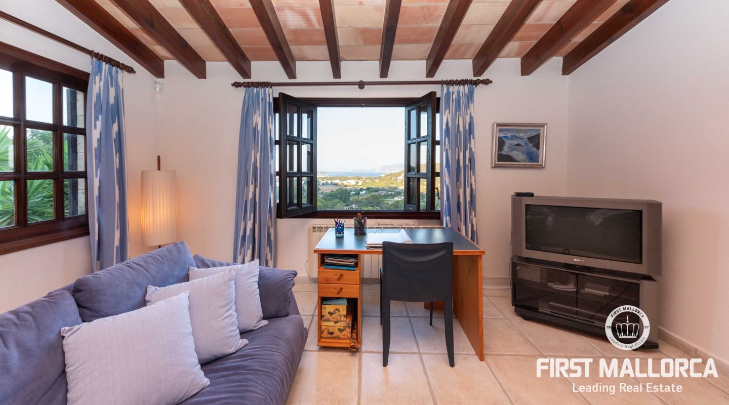 Ubicada en la parte alta de la exclusiva zona residencial de "El Vila" en Puerto Pollensa, esta villa presume de unas vistas espectaculares tanto del entorno rural como de la impresionante bahía de Pollensa, con el mar como telón de fondo. Al entrar, le recibirán espacios amplios y llenos de luz natural. Esta extraordinaria propiedad destaca por sus techos con vigas de madera, elegantes arcos de marés y una cuidada artesanía en cada detalle.