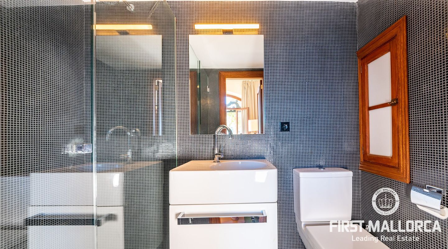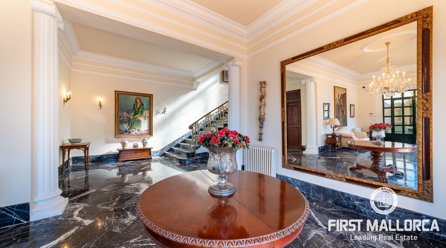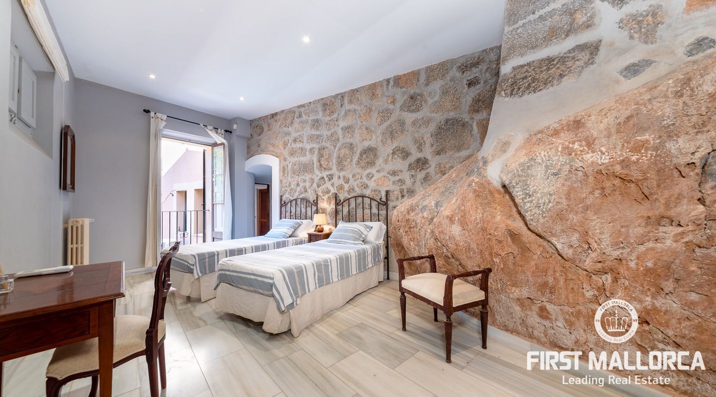 Esta propiedad renovada ofrece las siguientes estancias distribuidas en tres plantas: En la primera planta encontramos un amplio hall de entrada con acceso a una enorme terraza con vistas al mar y una gran vista de la bahía de Puerto de Sóller, tres dormitorios con baños en suite y uno de ellos con vestidor. En la segunda planta se encuentra una sala de estar, una cocina completa, un comedor, tres habitaciones más y dos baños. En la planta superior hay una habitación en la torre que actualmente se utiliza como oficina. Desde aquí también se puede disfrutar de una vista de ensueño del mar y el puerto. La piscina privada con cocina de verano y un baño completo se encuentra detrás de la casa. Numerosas terrazas parcialmente cubiertas invitan a relajarse. El equipamiento incluye calefacción central de gasoil, aire acondicionado f / c, suelos parcialmente de mármol, sistema de alarma, etc. Incluye un garaje doble. También es importante mencionar los dos locales comerciales en la planta baja que se alquilan.