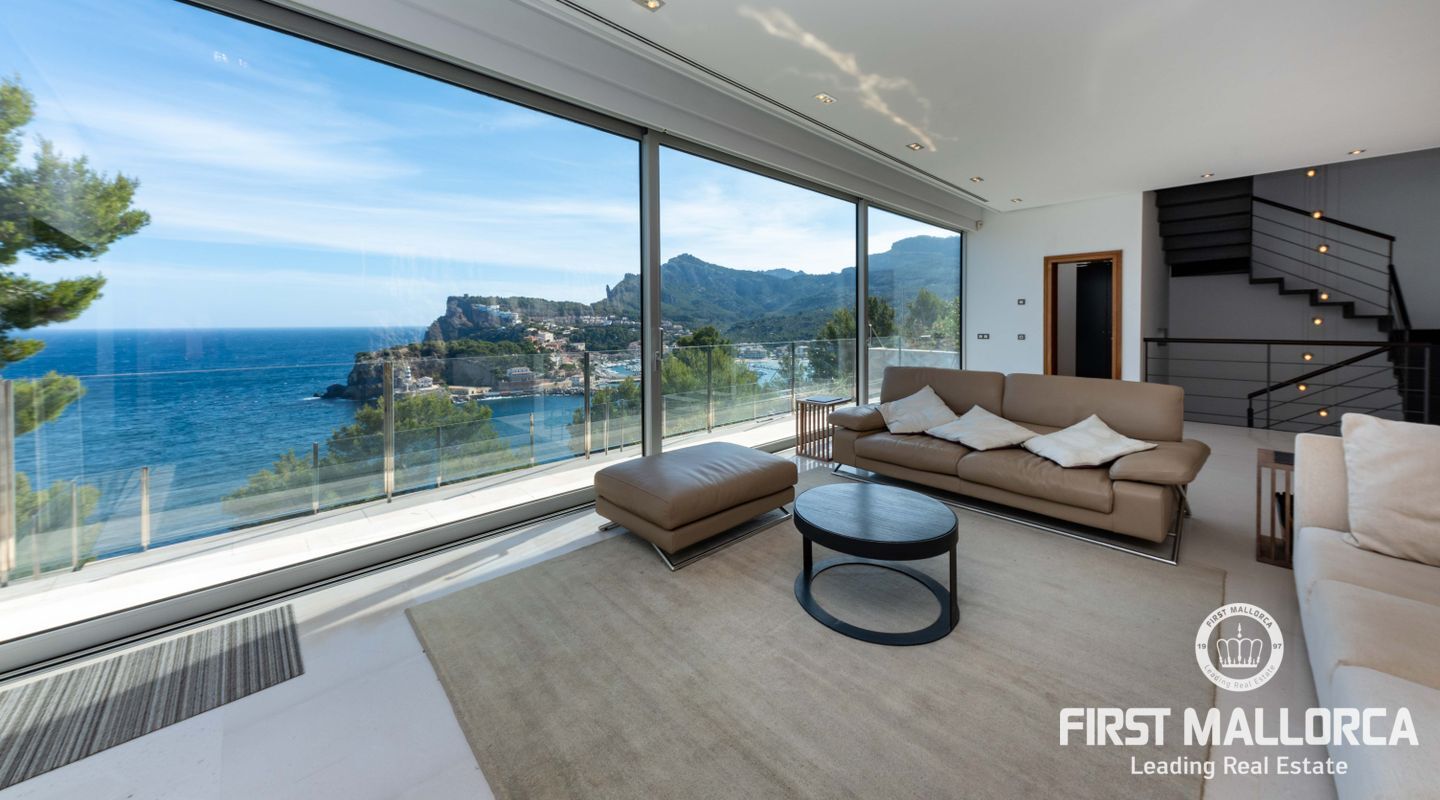 Moderna villa con impresionantes vistas al puerto y al mar en Puerto de Sóller en la costa oeste de Mallorca.