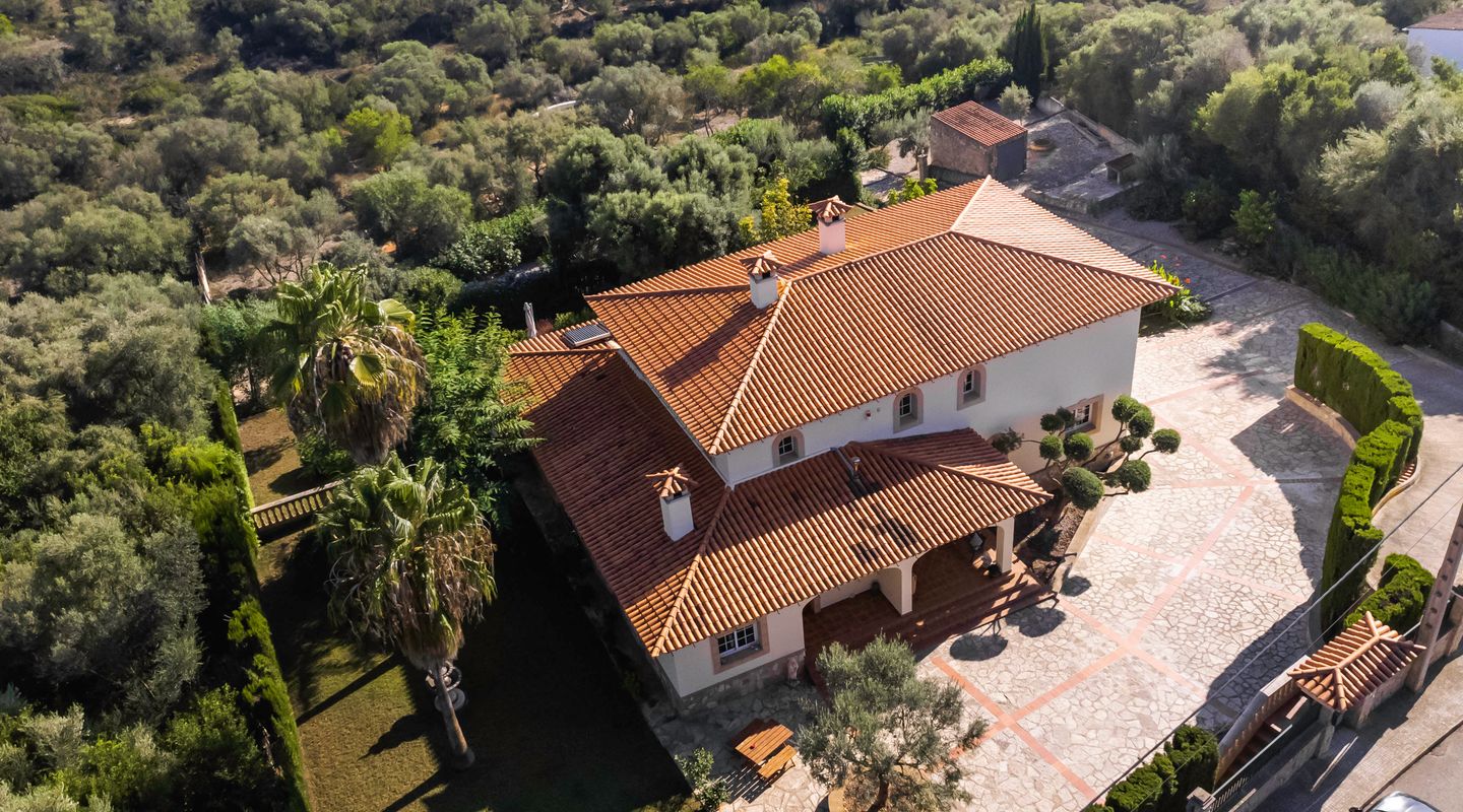 Esta villa mediterránea construida en piedra natural combina tres niveles de confort lujoso y vistas panorámicas despejadas sobre el paisaje de S’Aranjassa. Situada en una parcela de 7.661 m² con 550 m² de superficie construida, se presenta como una residencia de ensueño en Mallorca.