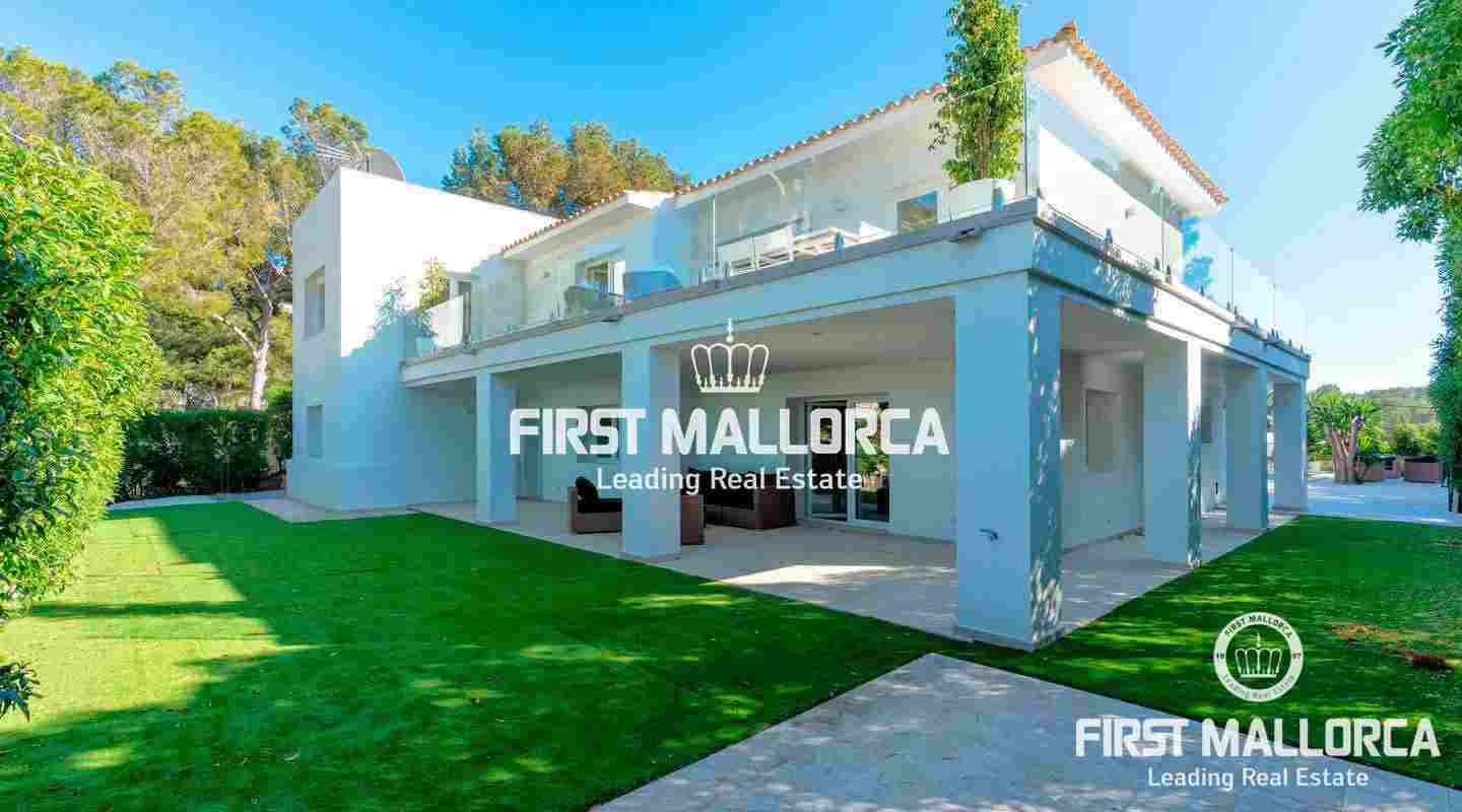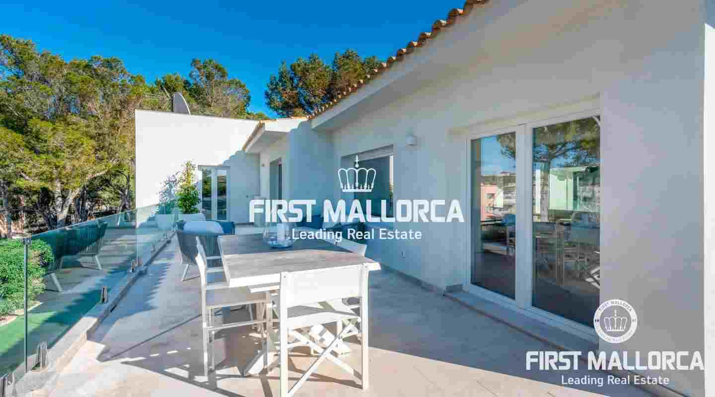 Esta moderna villa recientemente finalizada, con vistas al mar, se encuentra en una tranquila calle residencial, a poca distancia de las playas de arena en Santa Ponsa. En la superficie construida de 258 m², la vivienda dispone de un salón-comedor, una cocina equipada de alta calidad, 4 dormitorios, 3 baños y un aseo. El dormitorio principal también tiene su propio vestidor.