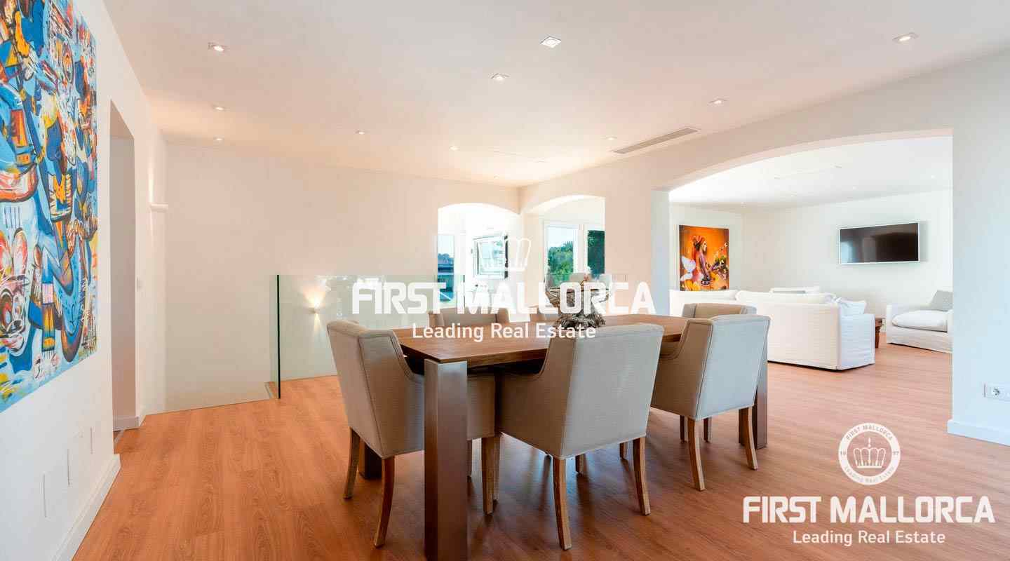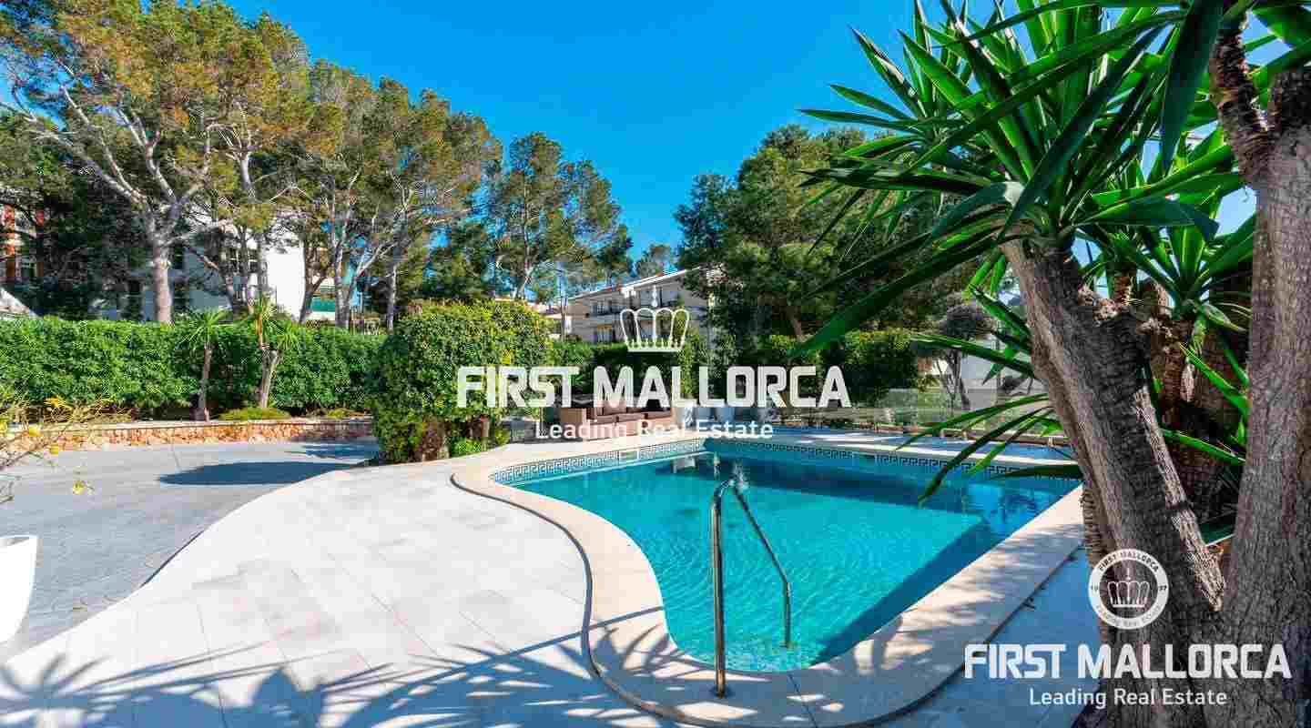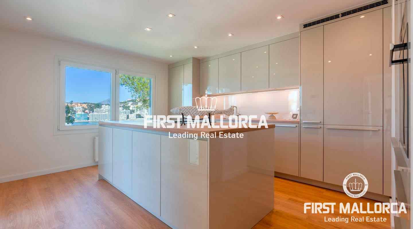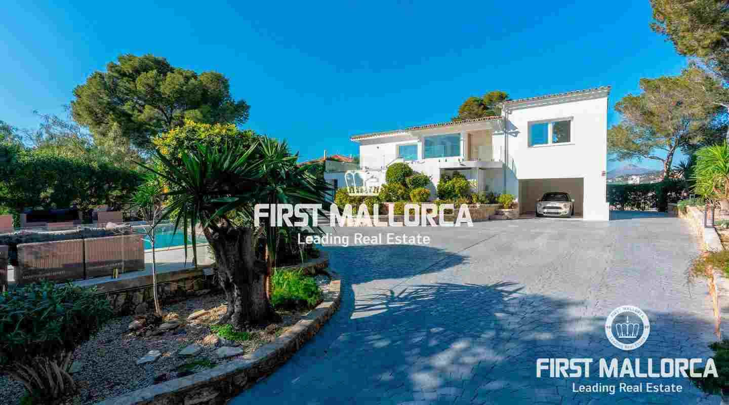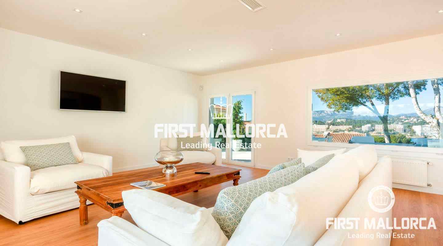 La encantadora propiedad de estilo clásico goza de un interiorismo bañado en luz además de preciosos atardeceres e impresionantes vistas a la bahía de Santa Ponsa desde el nivel principal. El exterior ofrece una gran piscina y varias terrazas que invitan a tomar el sol durante todo el día.