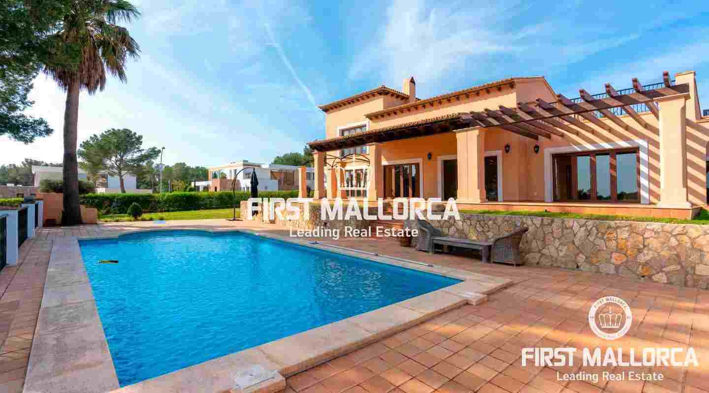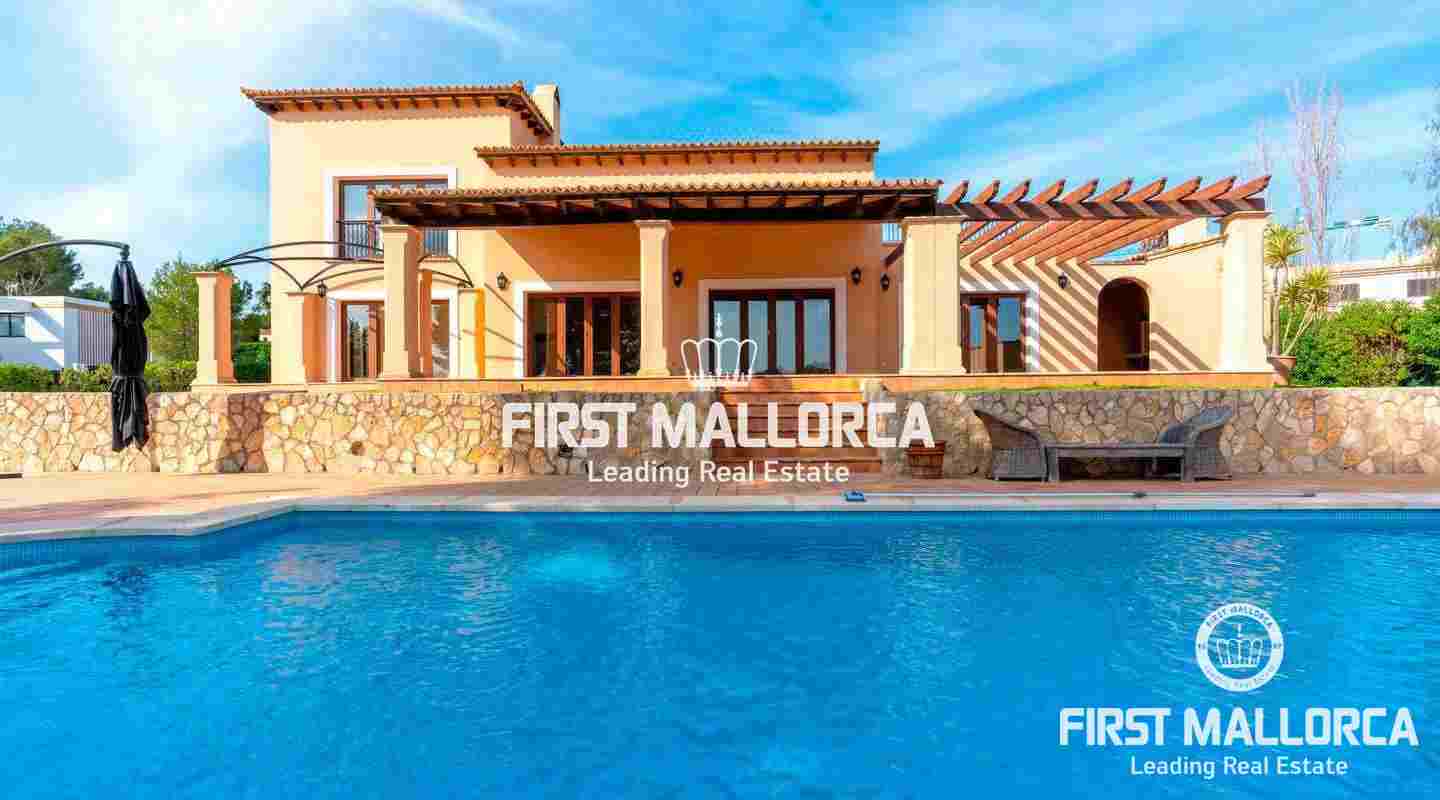 Esta villa de estilo finca, con un solar de 3.048 m², se encuentra en Santa Ponsa, cerca del campo de golf, escuelas internacionales y el exclusivo Port Adriano.