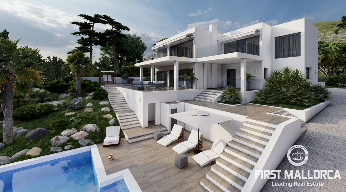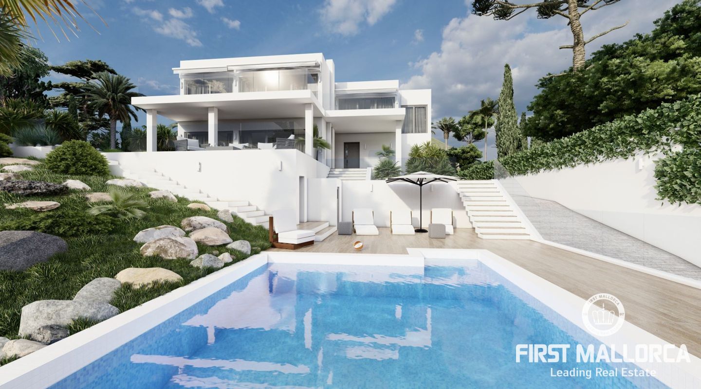 Villa que tiene un proyecto para ser completamente renovada al más alto nivel y con inmejorables vistas al mar y a la bahía de Santa Ponsa y a tan solo 10 minutos andando de la playa. La villa está construida en una parcela alta asentada en las colinas de Nova Santa Ponsa, orientada al oeste para beneficiarse de unas mágicas puestas de sol. Será muy espaciosa en su interior y construida solo con los mejores materiales del mercado hasta esta fecha. Hay etapas antes de poder vivir en la propiedad y tener la llave en mano sin embargo el precio es el total con proyecto , licencia y construcción. El diseño es tener un plan abierto en el nivel inferior con un dormitorio de invitados en suite, cocina mirando hacia el mar y un gran salón. Una hermosa escalera de cristal característica que le lleva hasta 3 dormitorios más en suite teniendo la habitación principal con su propia terraza privada y vistas panorámicas. Habrá calefacción por suelo radiante y aire acondicionado central caliente y frío, así como una piscina de infinita.