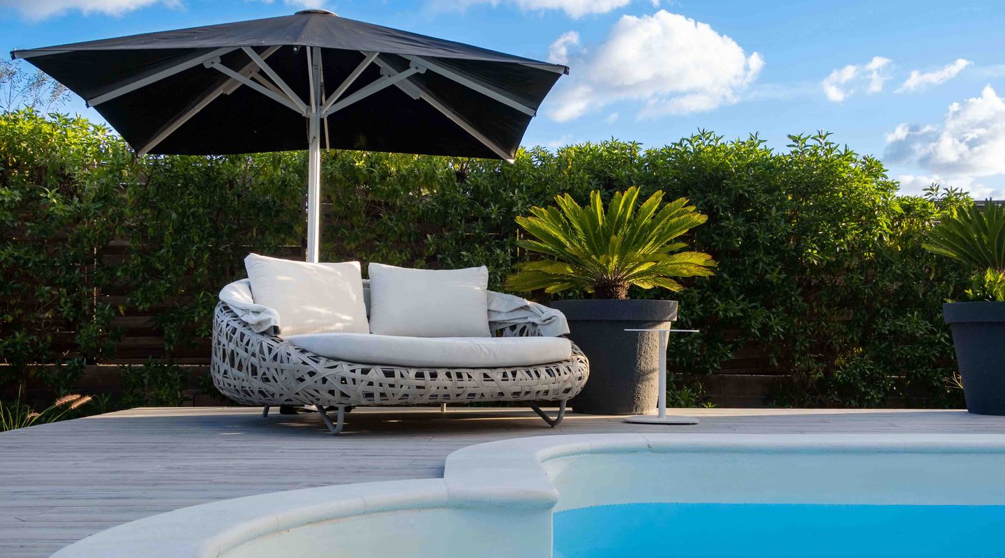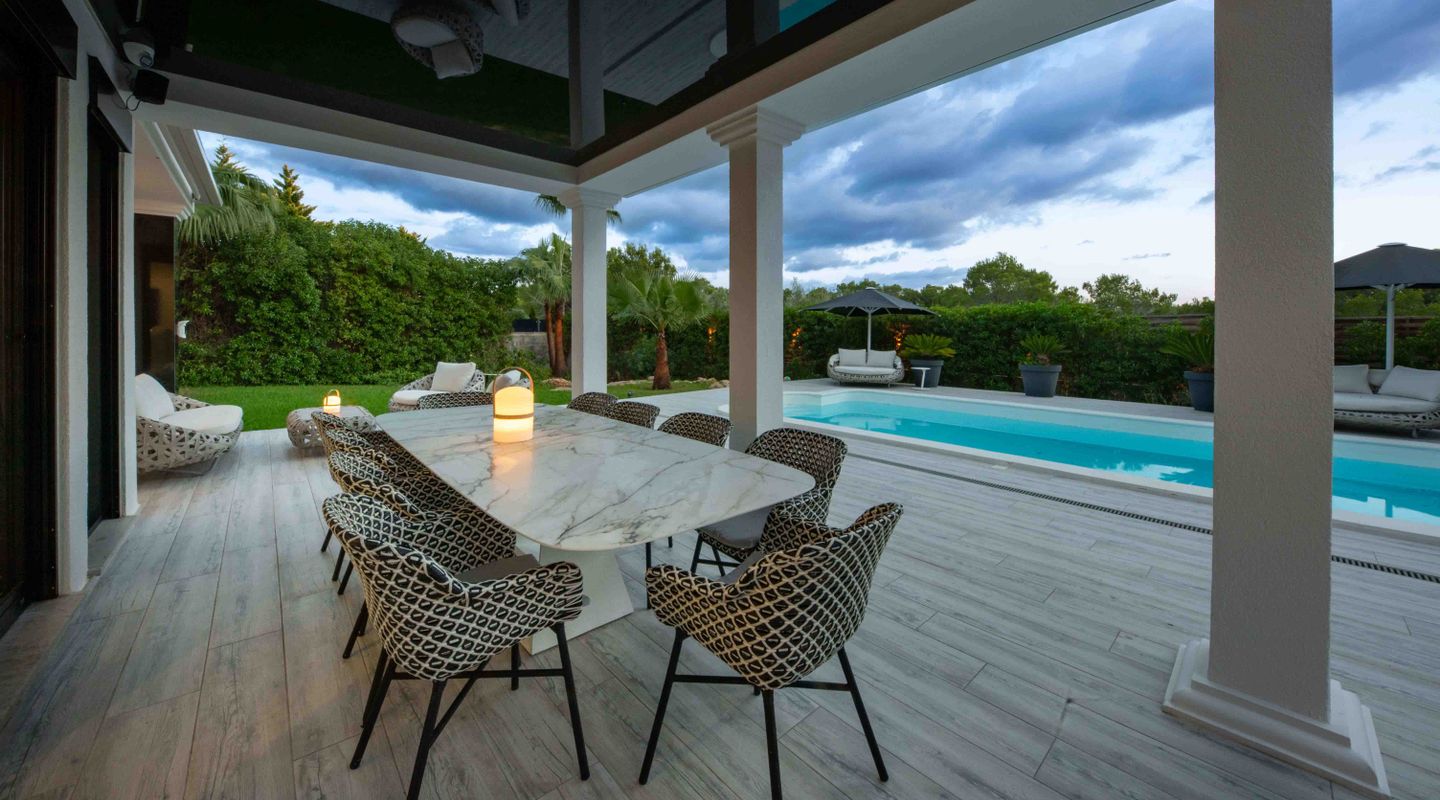 La extensa zona exterior es un oasis de relajación: una gran piscina, una amplia terraza y un jardín meticulosamente diseñado proporcionan el entorno perfecto para el ocio y el entretenimiento al aire libre.