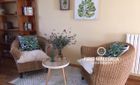 Distribuida en dos niveles, la villa de 240 m² cuenta con un luminoso salón con chimenea, comedor, zona de estudio o lectura con acceso a terrazas orientadas al oeste, y una cocina totalmente equipada con acceso a un huerto. Dispone de cuatro amplios dormitorios, incluyendo una suite principal con baño en suite y balcón.