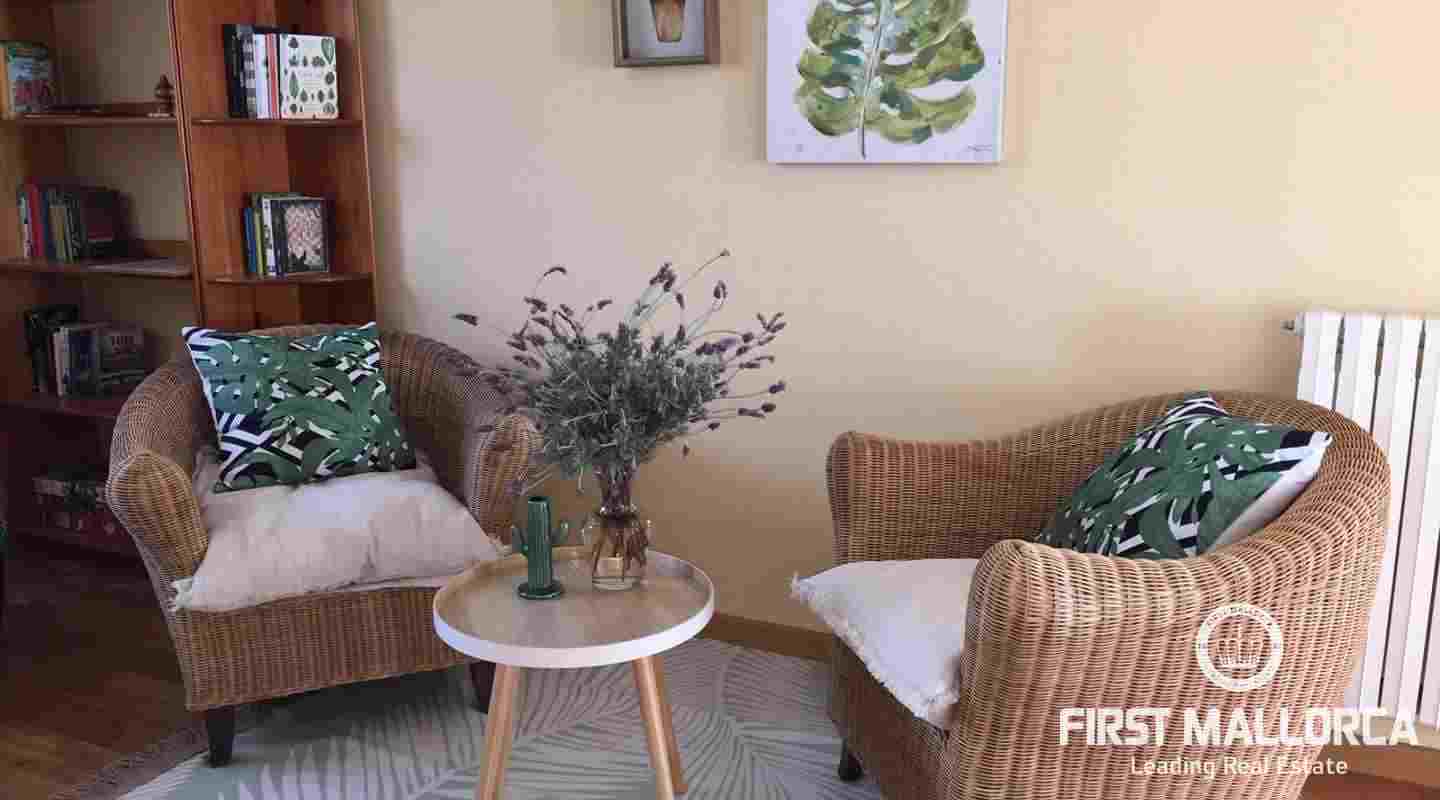 Esta villa de estilo mediterráneo combina el encanto atemporal con la comodidad moderna, capturando atardeceres y luz natural durante todo el día: un refugio ideal o inversión en el campo de Mallorca.